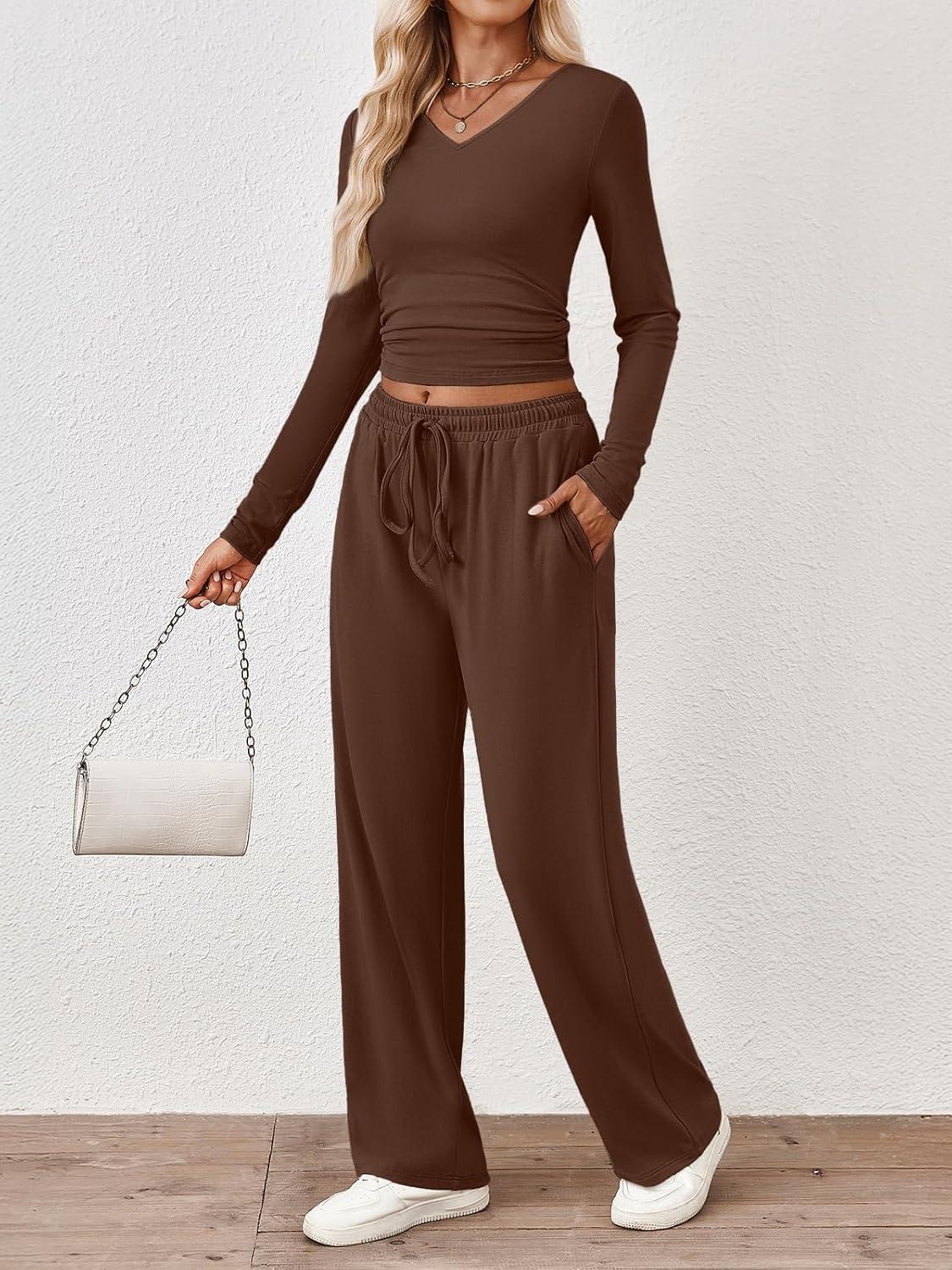Trendy Queen 2 Piece Lounge Sets for Women Fall Outfits 2025 Fashion Two Piece Sweatsuits Business Casual Outfits Clothes(Cocoa)