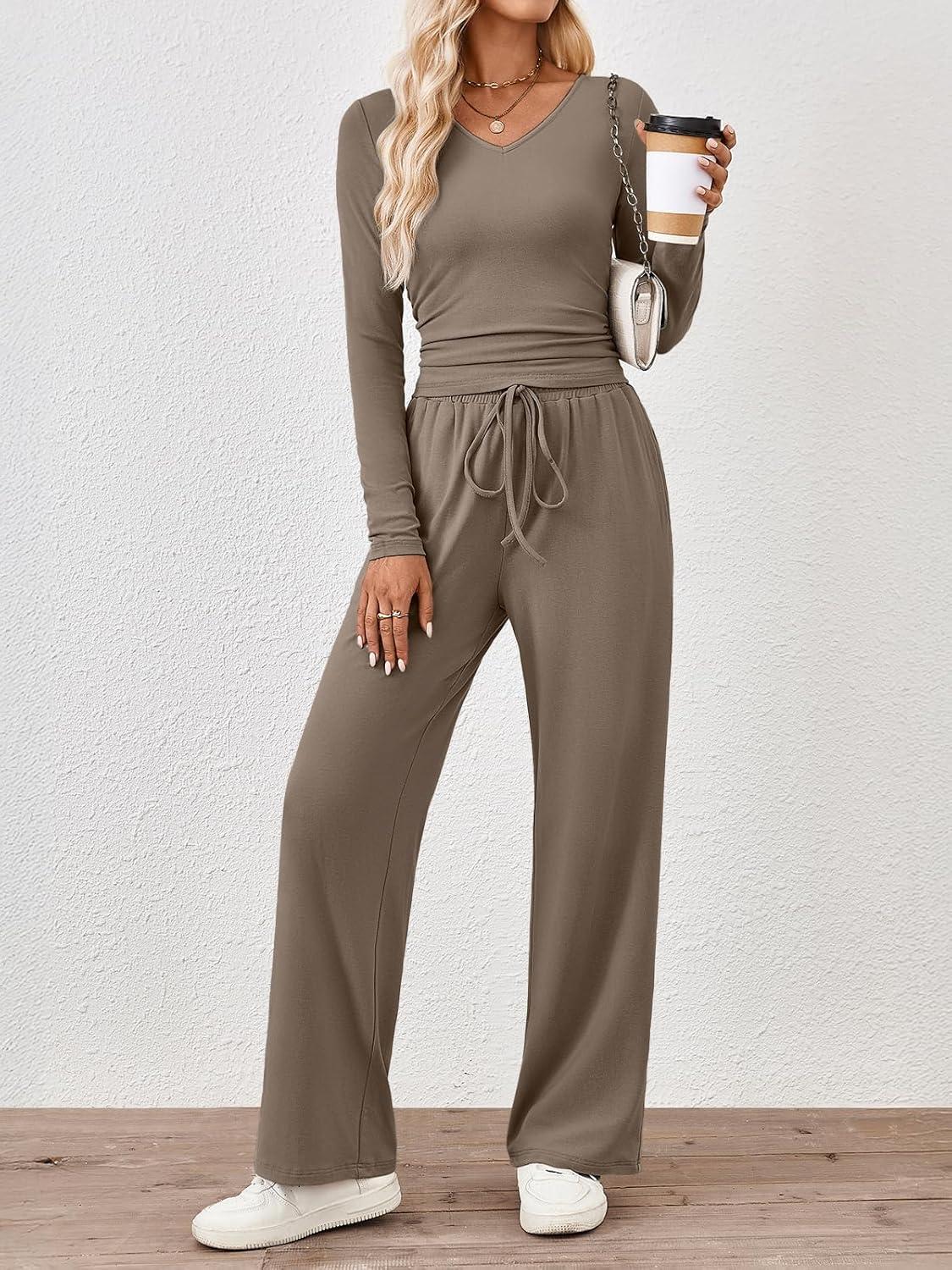 Trendy Queen 2 Piece Lounge Sets for Women Fall Outfits 2025 Fashion Two Piece Sweatsuits Business Casual Outfits Clothes(Mocha)