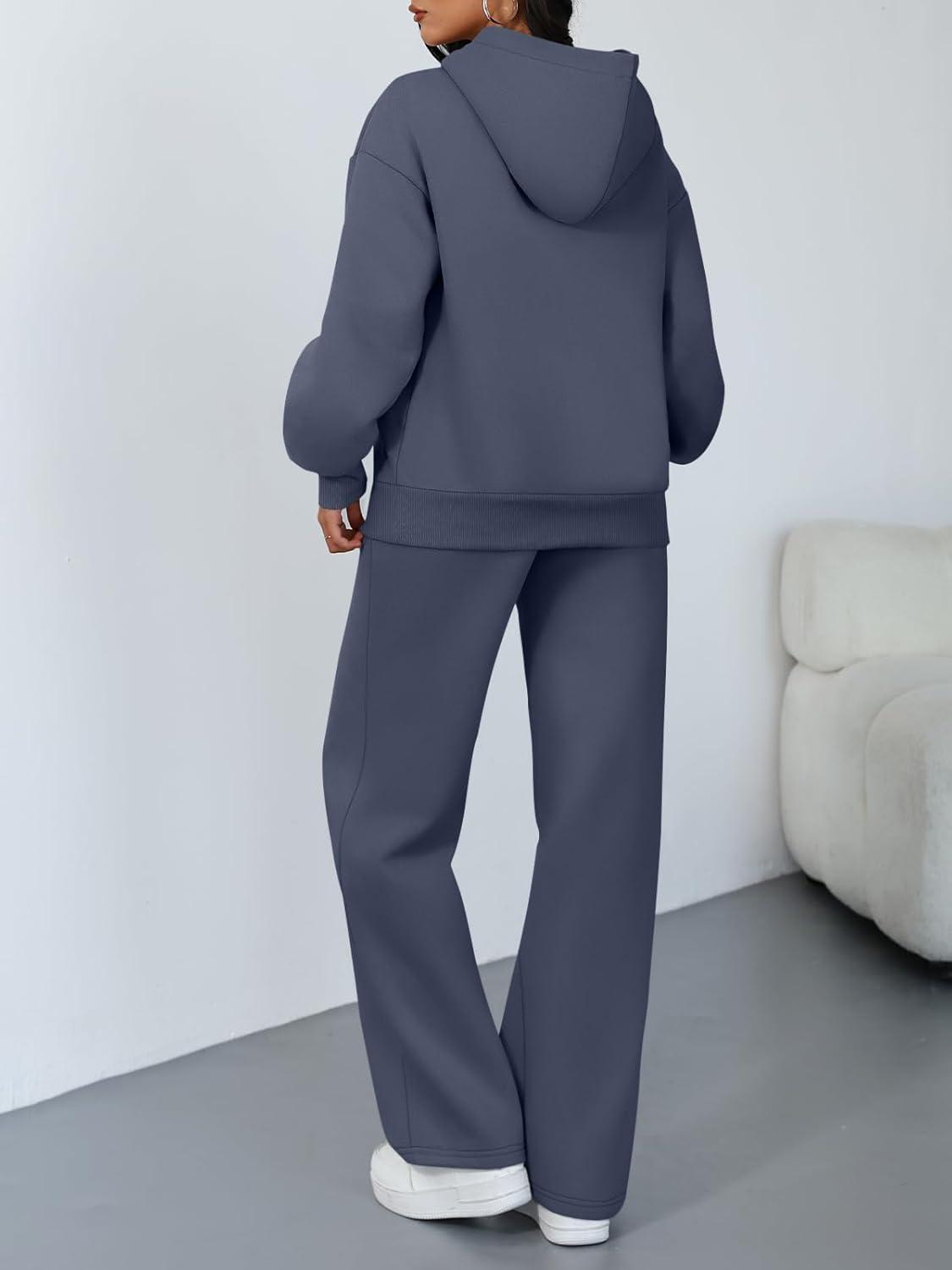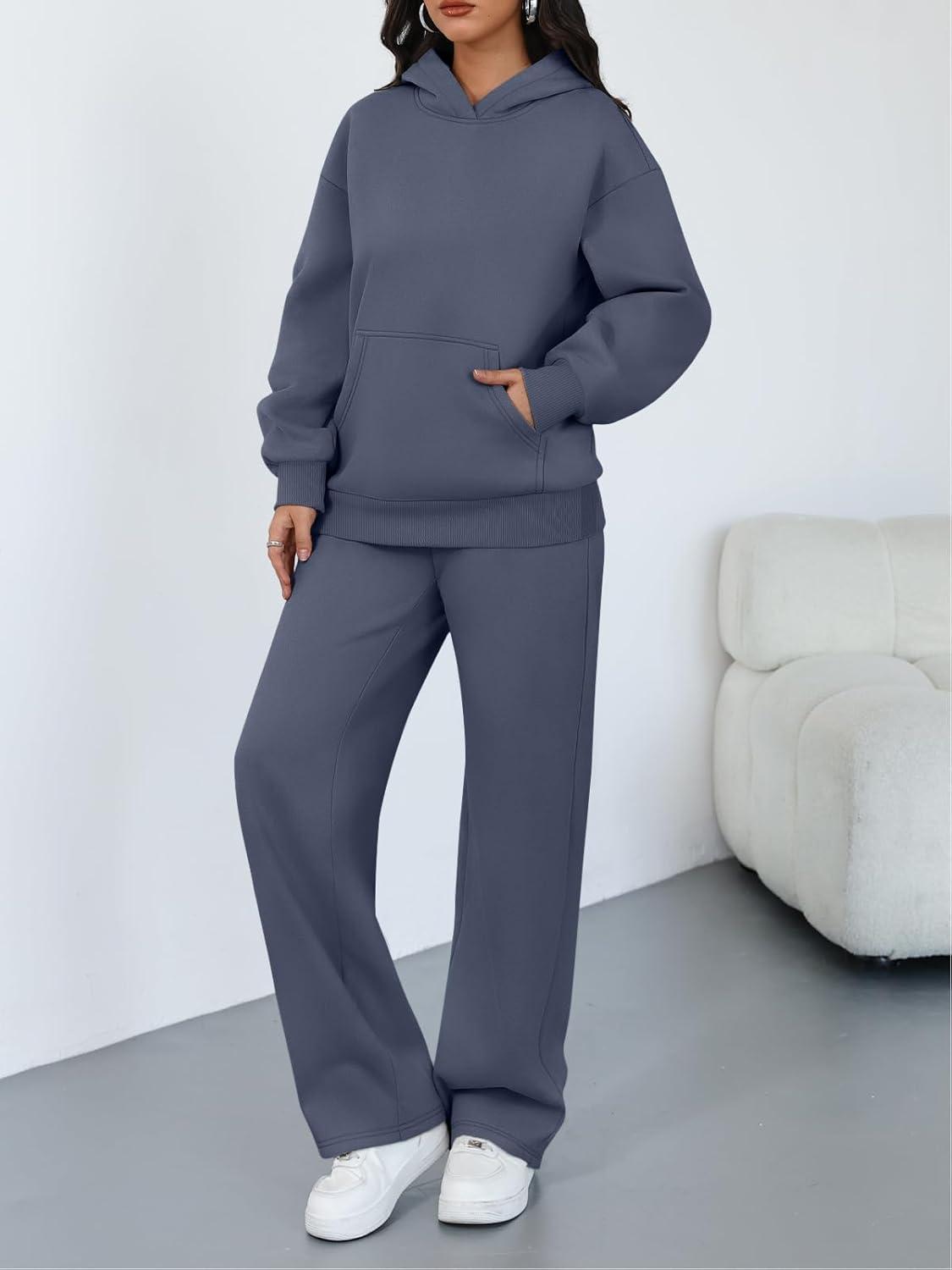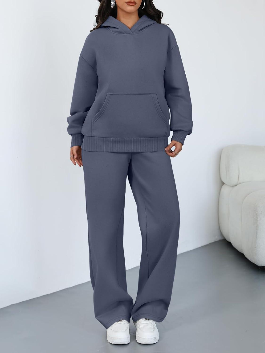 Trendy Queen 2 Piece Lounge Sweat Sets Plus Size Fall Fashion Matching Sweatsuits Wide Leg Pants Travel Outfit Winter Clothes(Dustyblue)