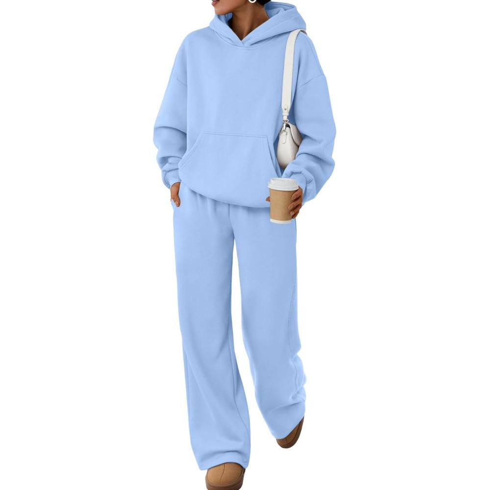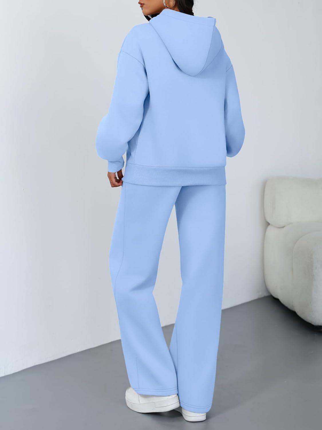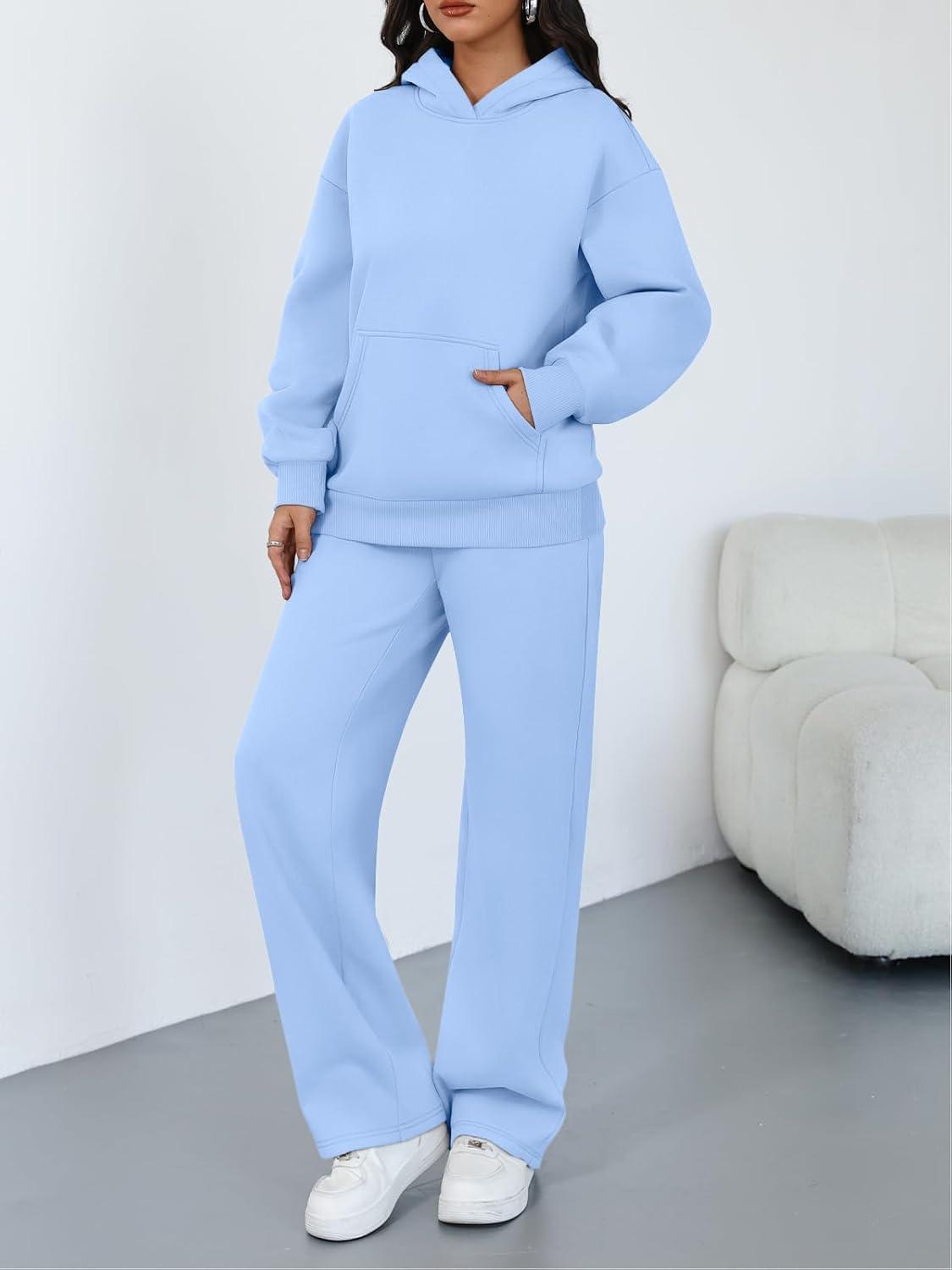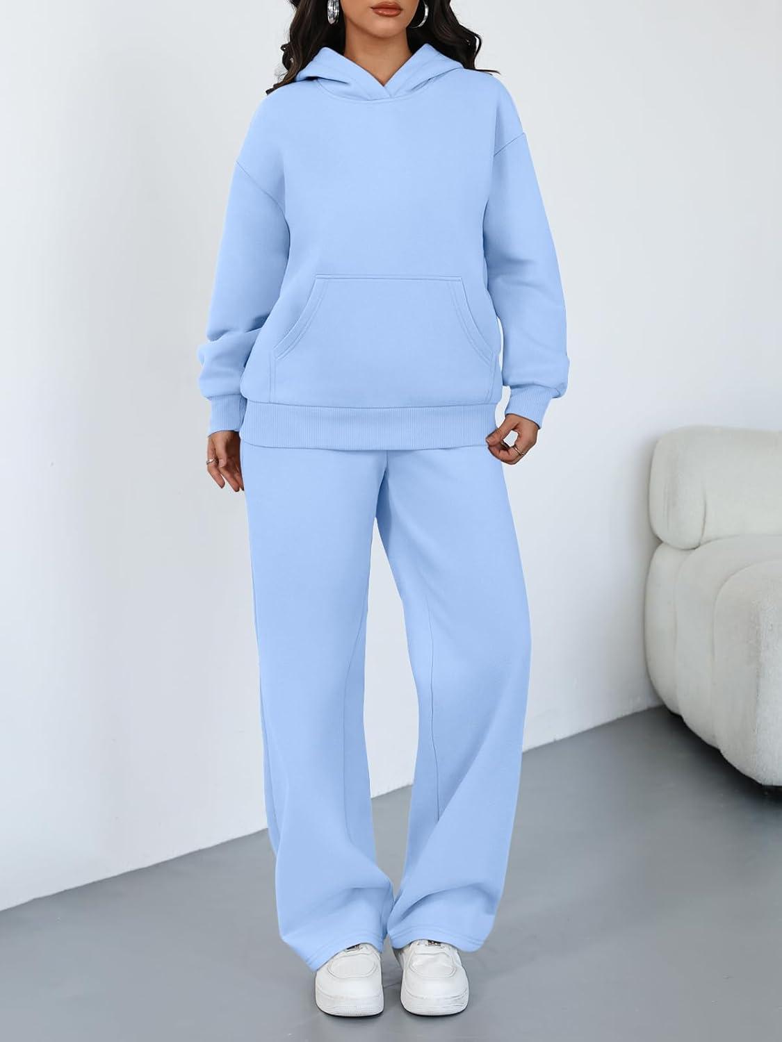 Trendy Queen 2 Piece Lounge Sweat Sets Plus Size Fall Fashion Matching Sweatsuits Wide Leg Pants Travel Outfit Winter Clothes(Lightblue)