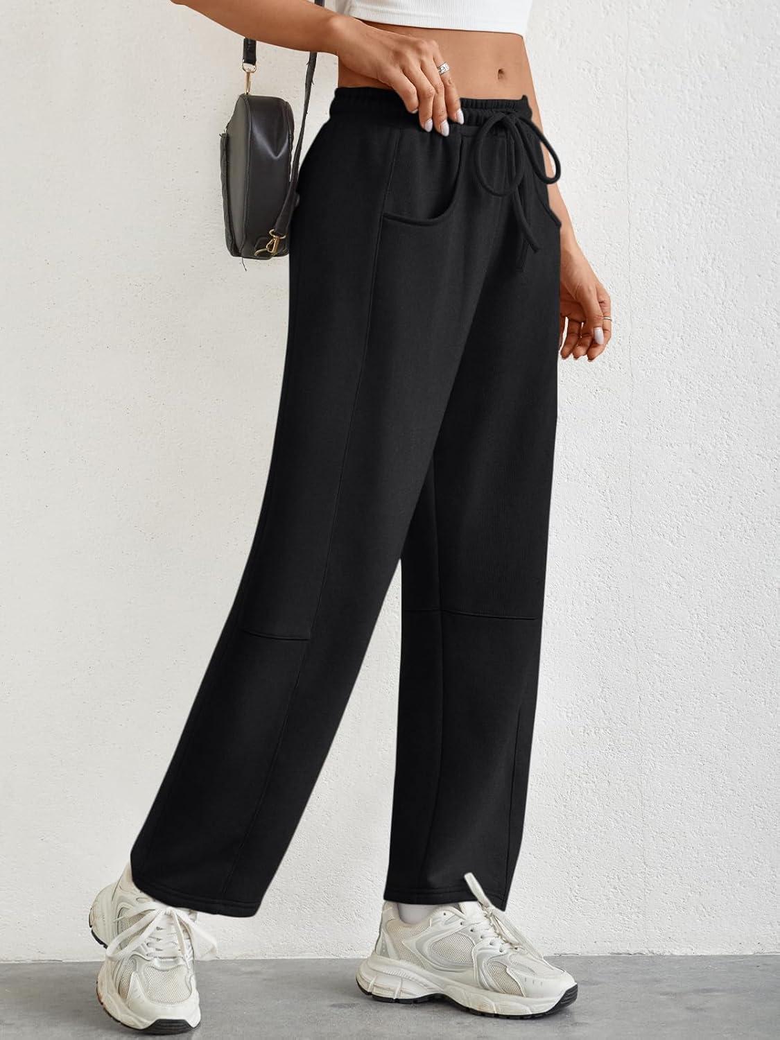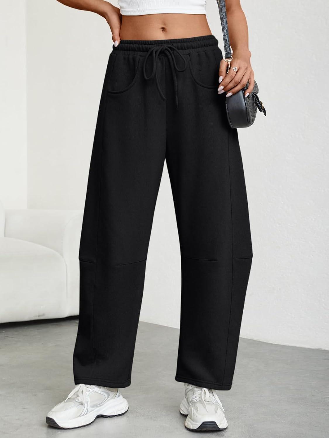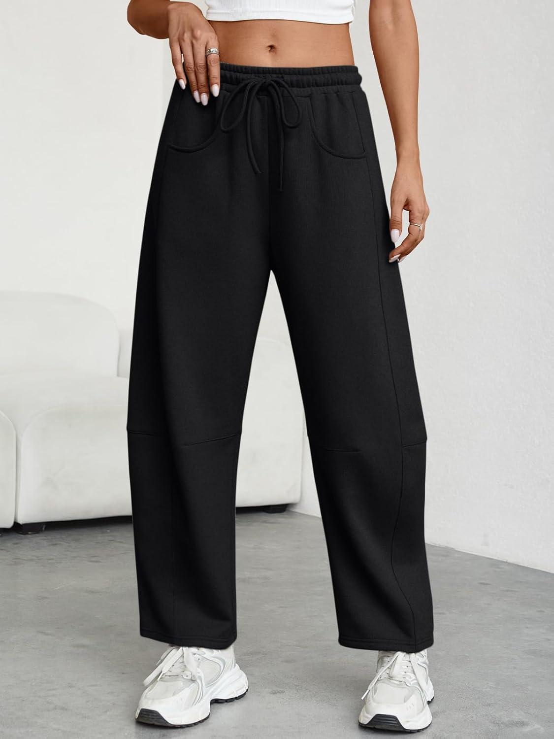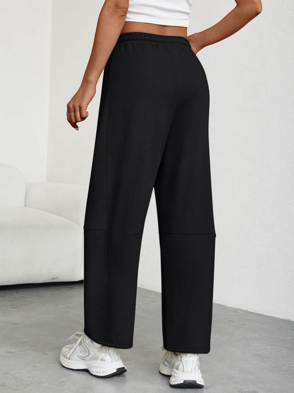 Trendy Queen Barrel Sweatpants Womens Wide Leg Pants Baggy Palazzo Lounge Comfy Flowy Pants Teen Girls Fall Clothes Outfits(Black)