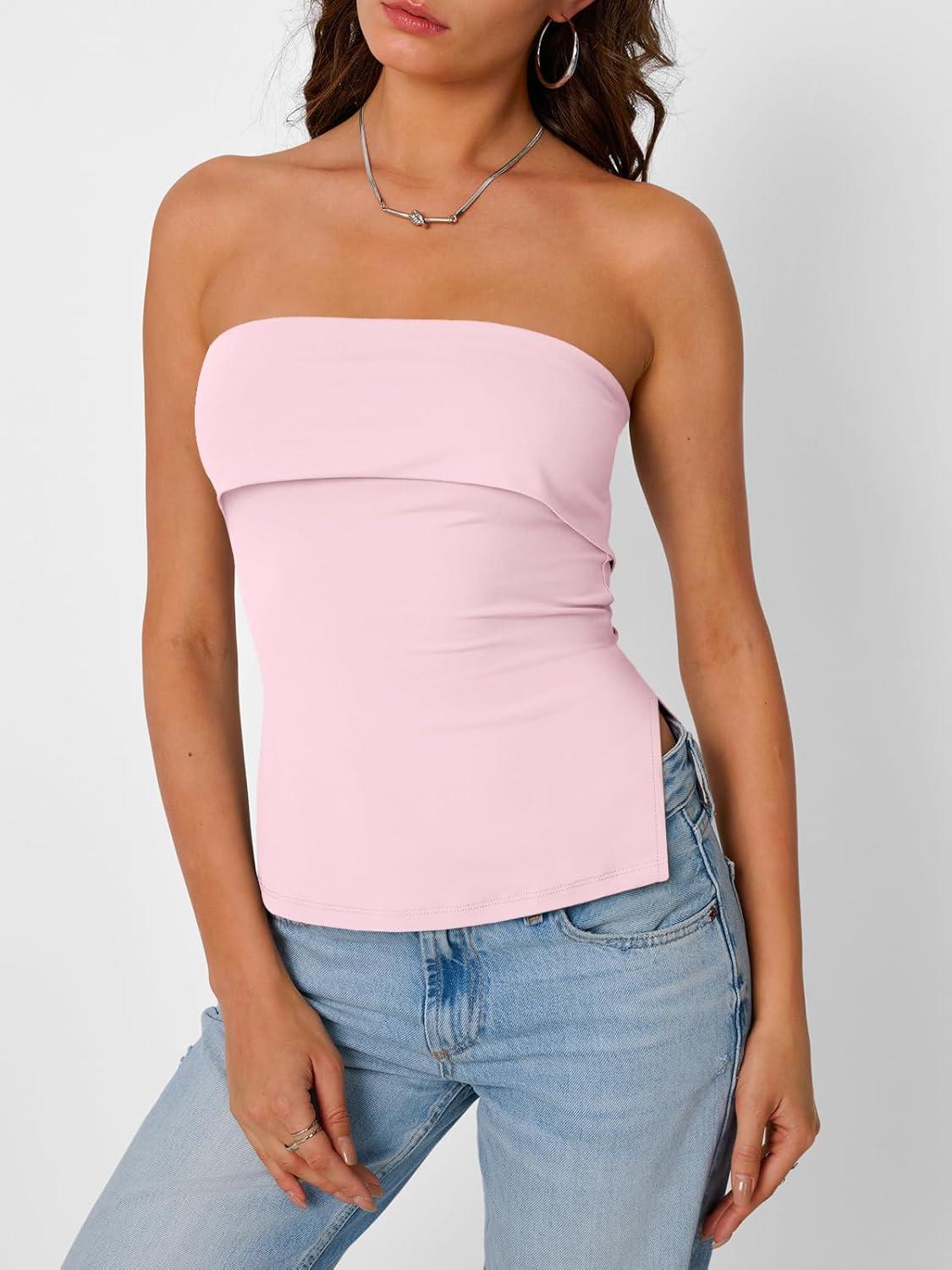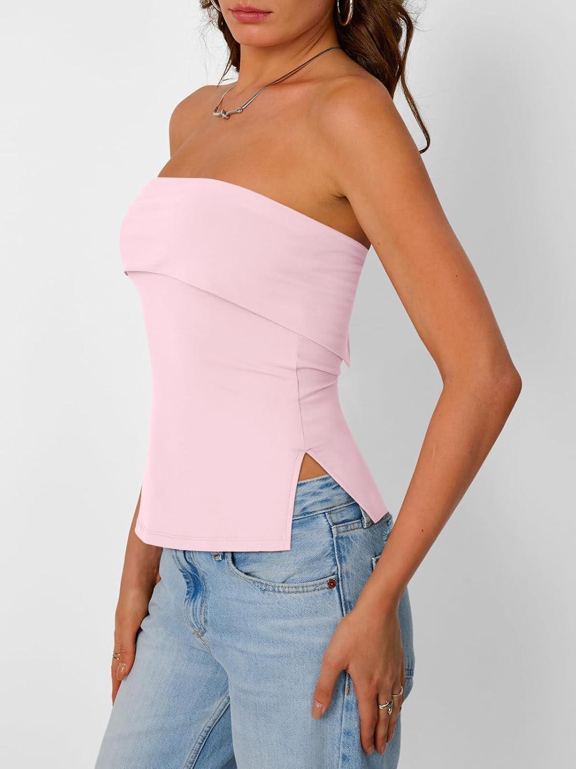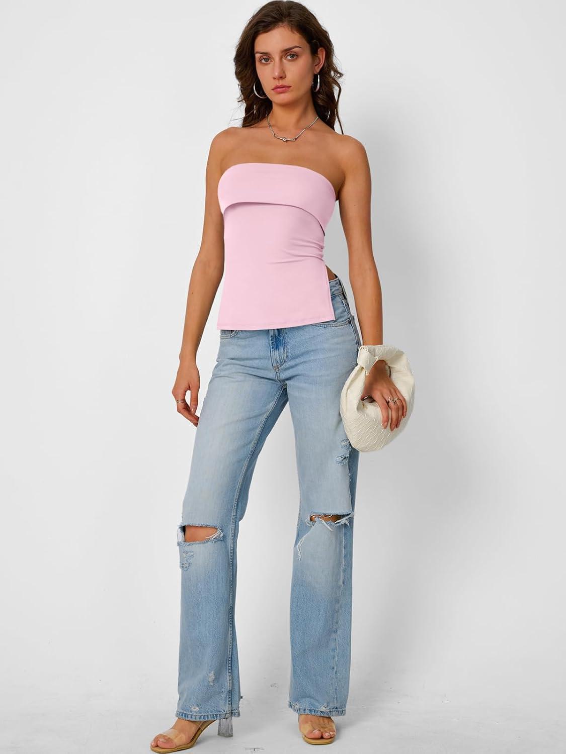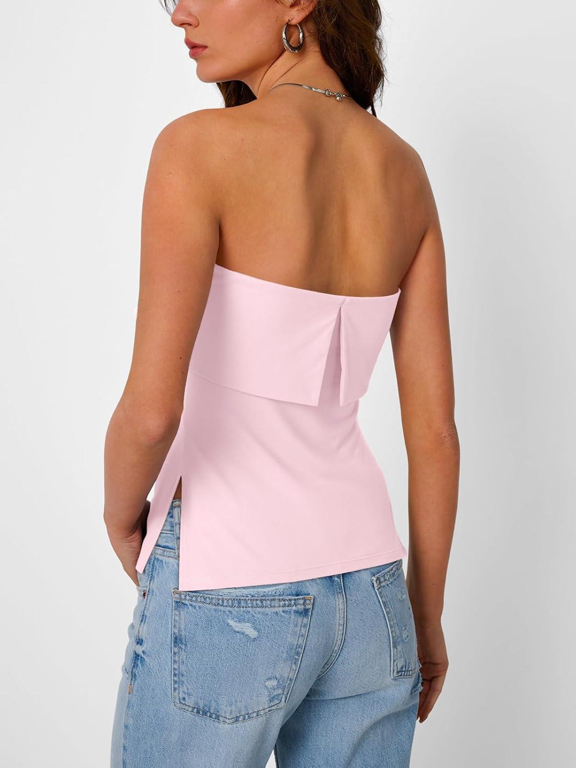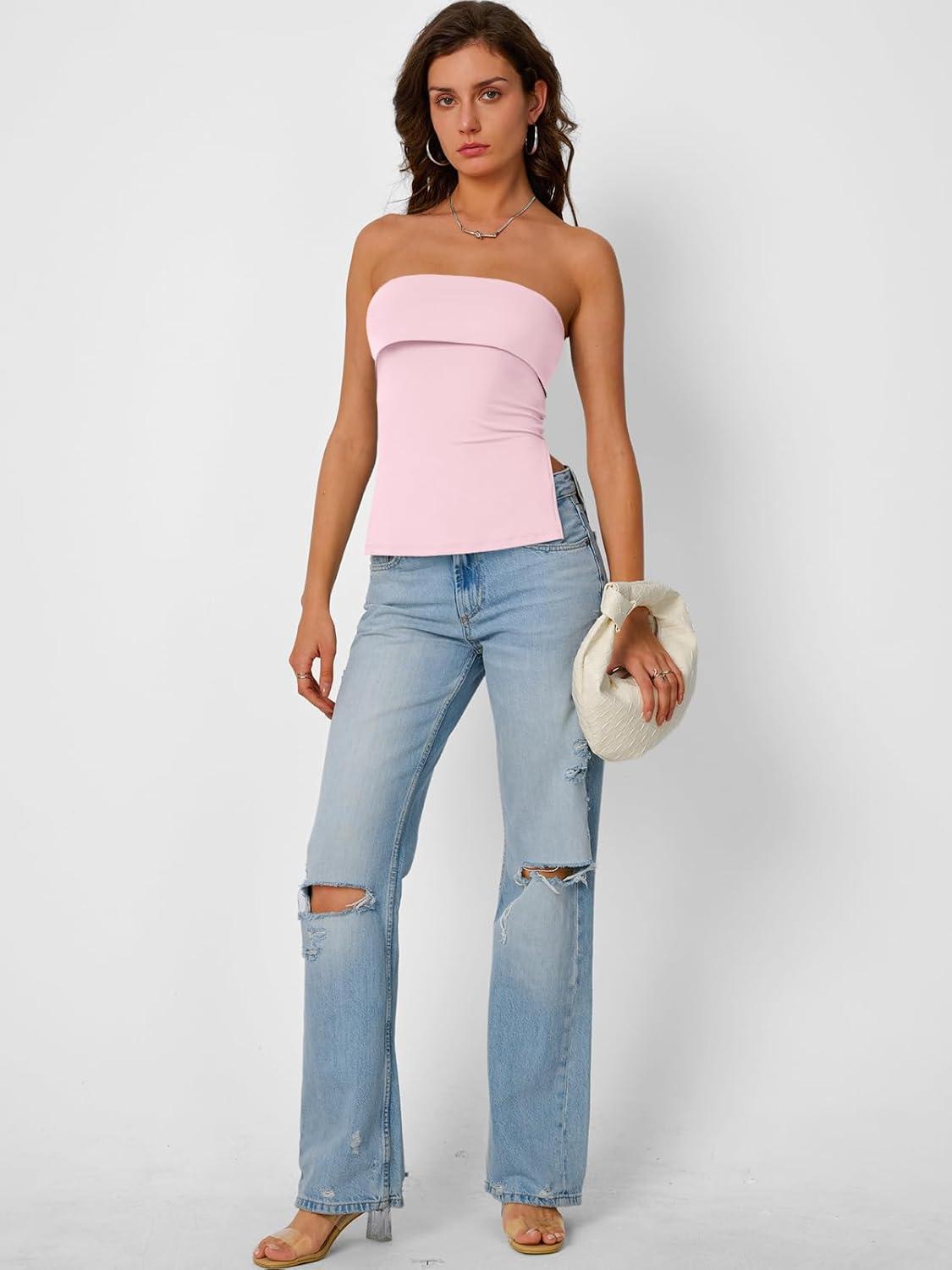 Trendy Queen Going Out Tops for Women Summer Spring Tube Tops Cute Off The Shoulder Backless Corset Teen Girls Y2k Clothes(Lightpink)
