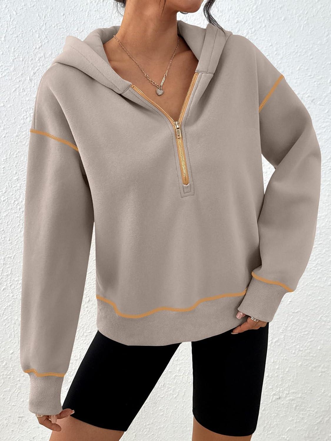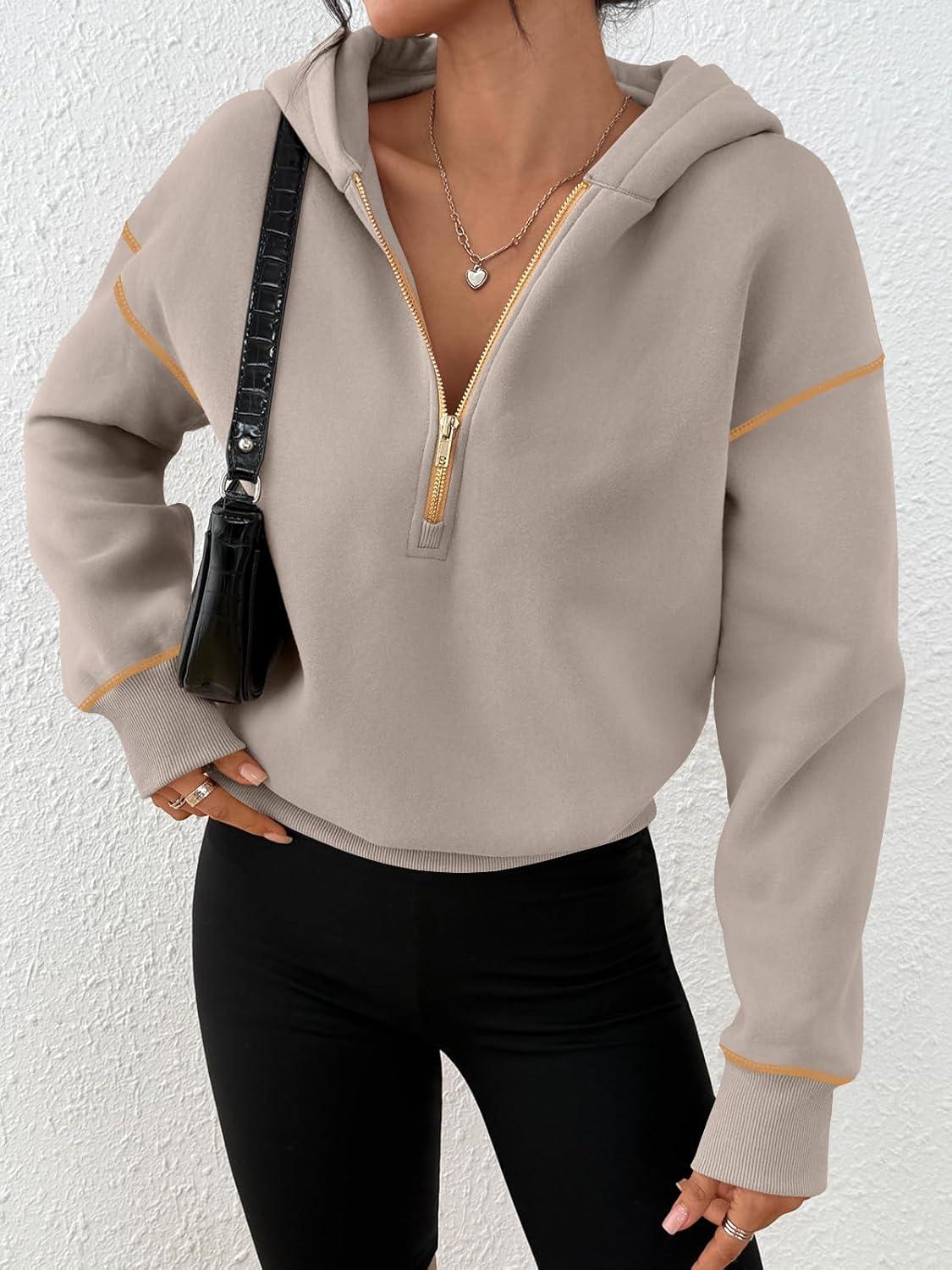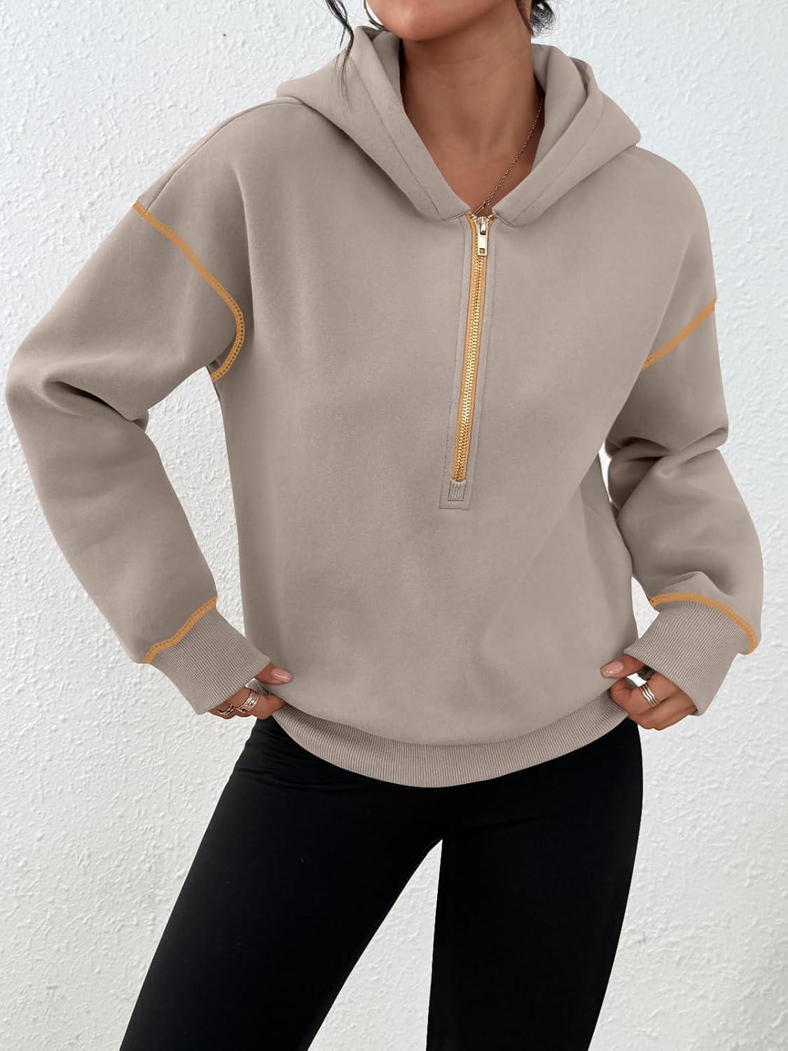 Trendy Queen Half Zip Pullover Cropped Hoodies for Women Y2k Cute Sweatshirts Jackets Fall Fashion 2025 Outfits Clothing(Coffee Grey)