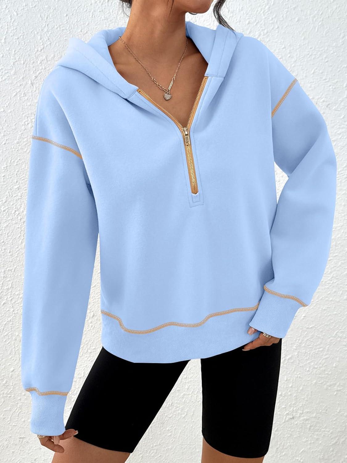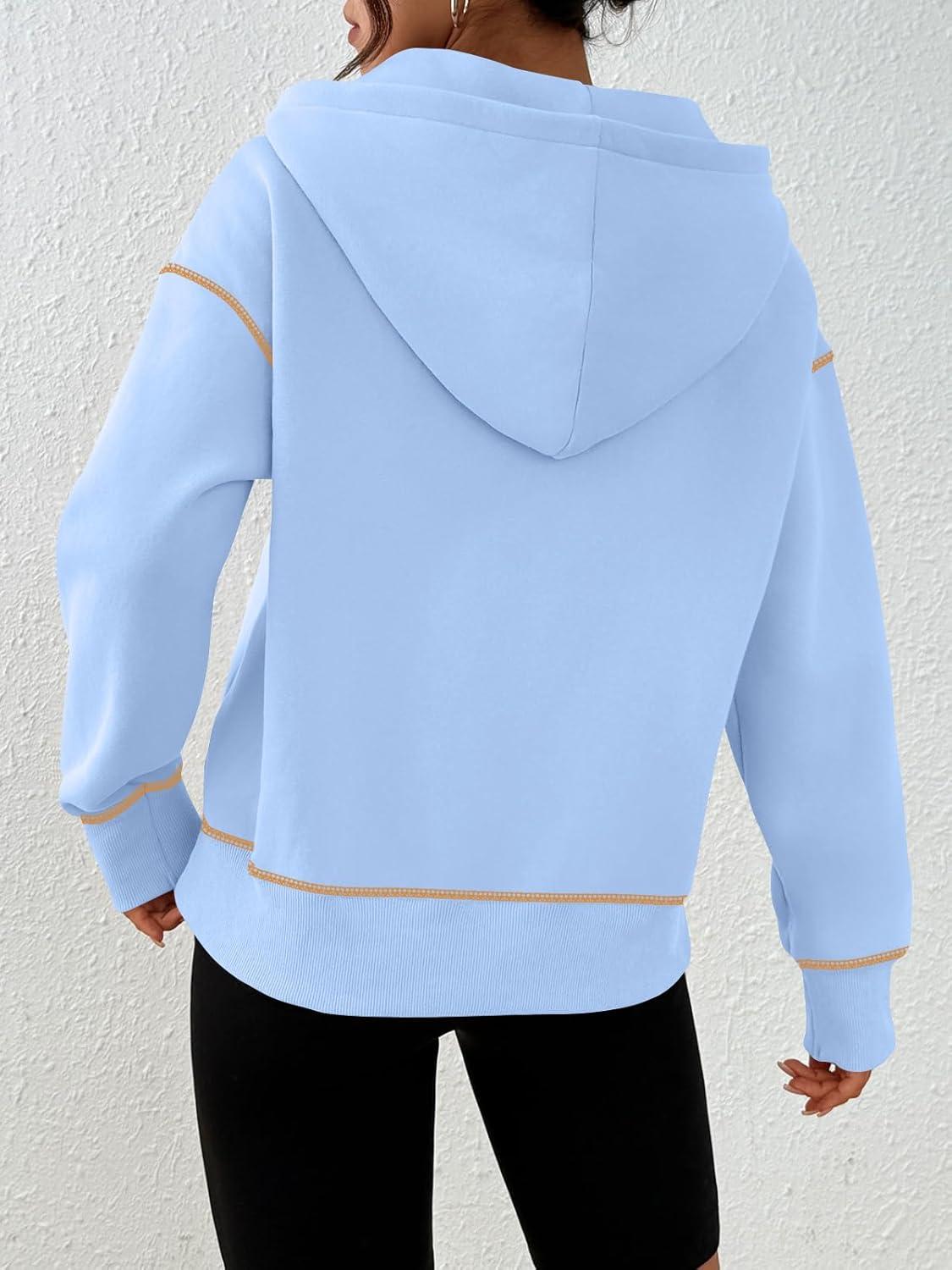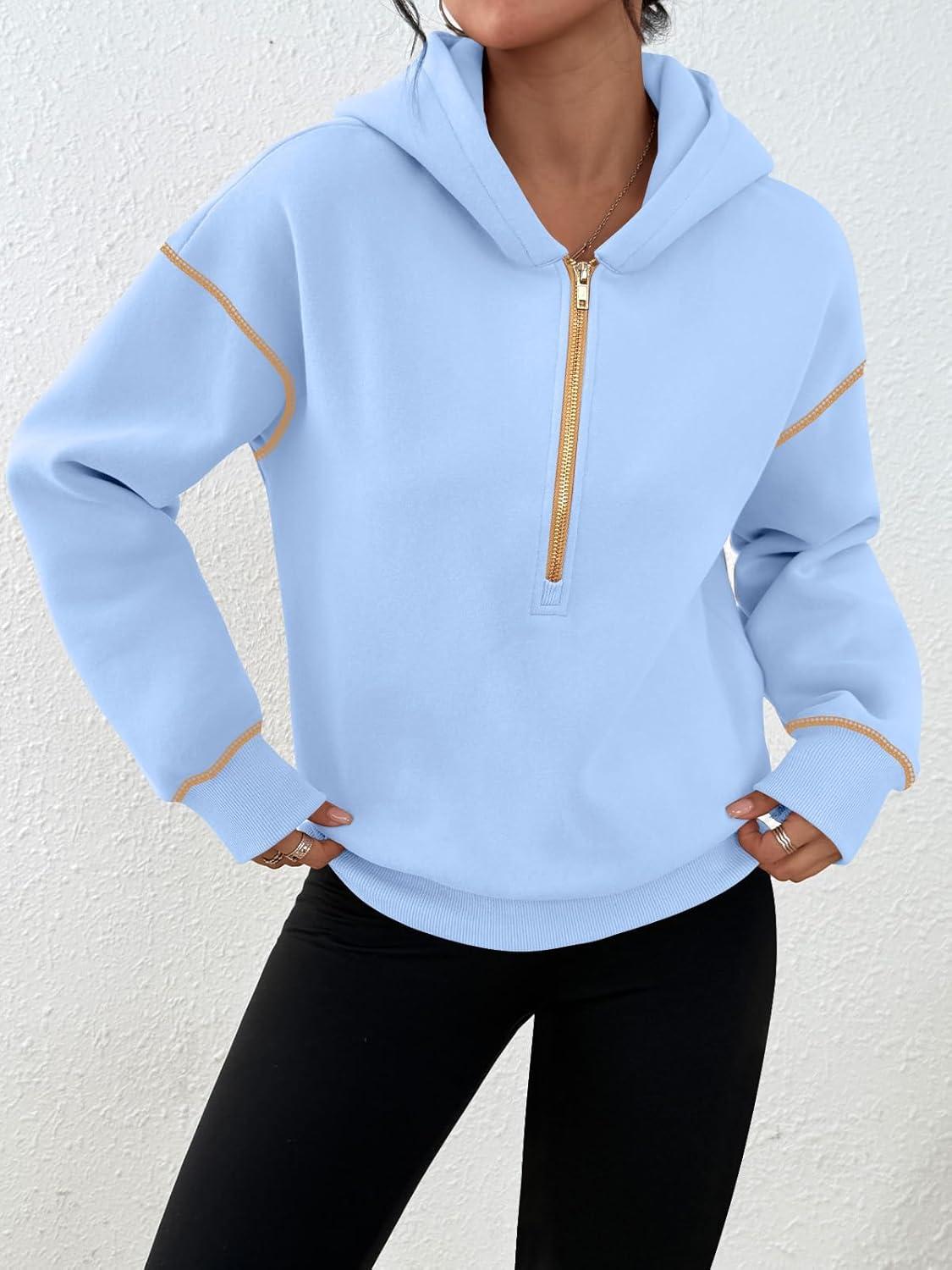 Trendy Queen Half Zip Pullover Cropped Hoodies for Women Y2k Cute Sweatshirts Jackets Fall Fashion 2025 Outfits Clothing(Sky Blue)