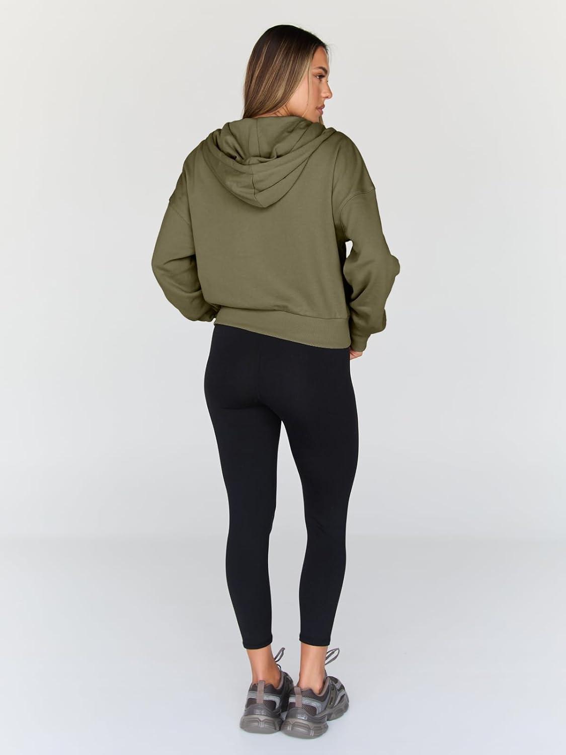 Trendy Queen Hoodies for Women Full Zip Up Cropped Sweatshirts Jackets Casual Comfy Gym Tops Fall Outfits Winter Clothes 2025(Armygreen)