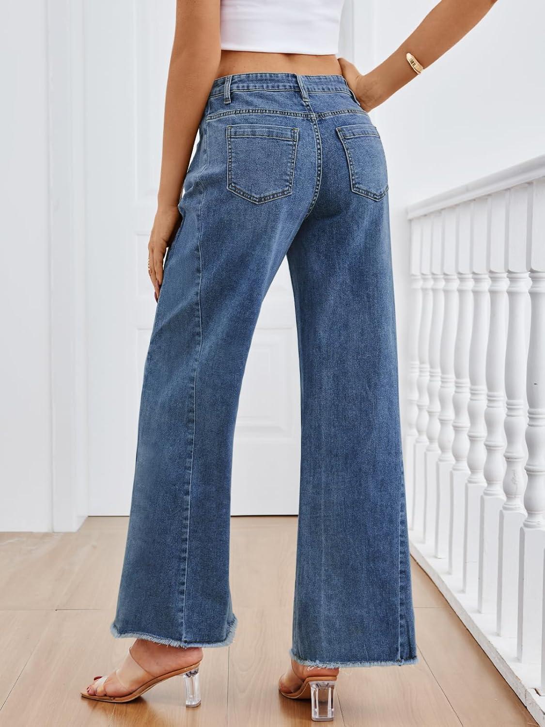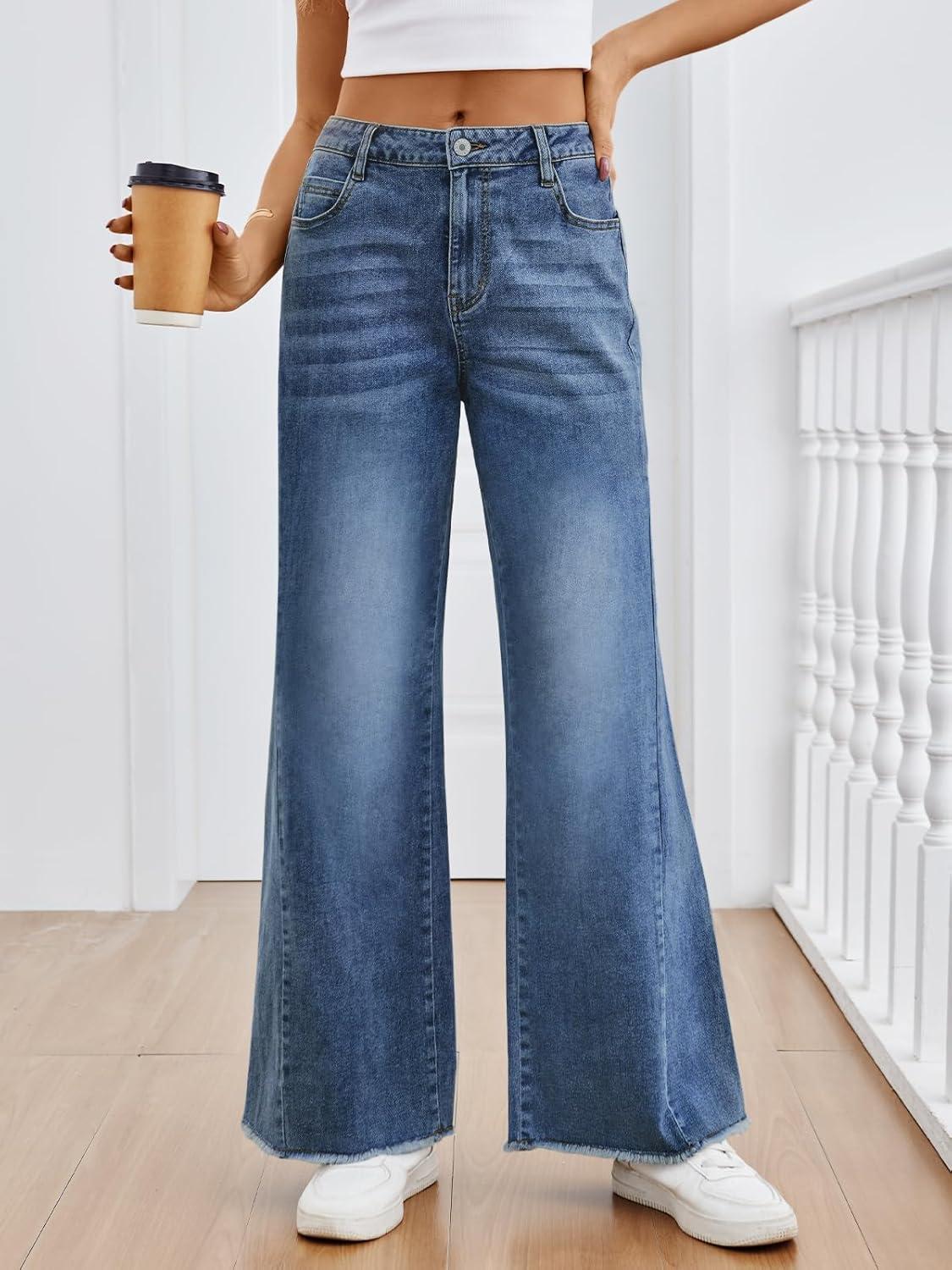 Trendy Queen Jeans for Women High Waisted Wide Straight Leg Stretchy Baggy Jeans Fashion Loose Denim Pants Fall 2025(Blue)