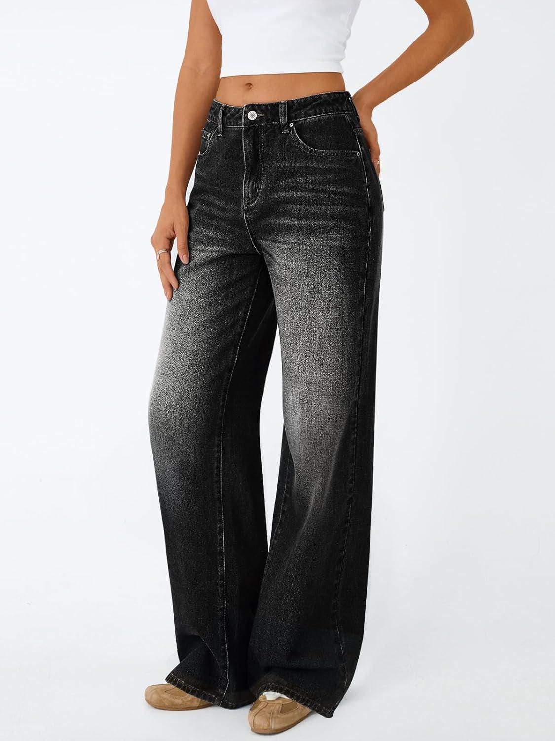 Trendy Queen Jeans for Women Wide Straight Leg High Waisted Stretchy Baggy Jeans Fashion Loose Denim Pants Fall 2025(Black)