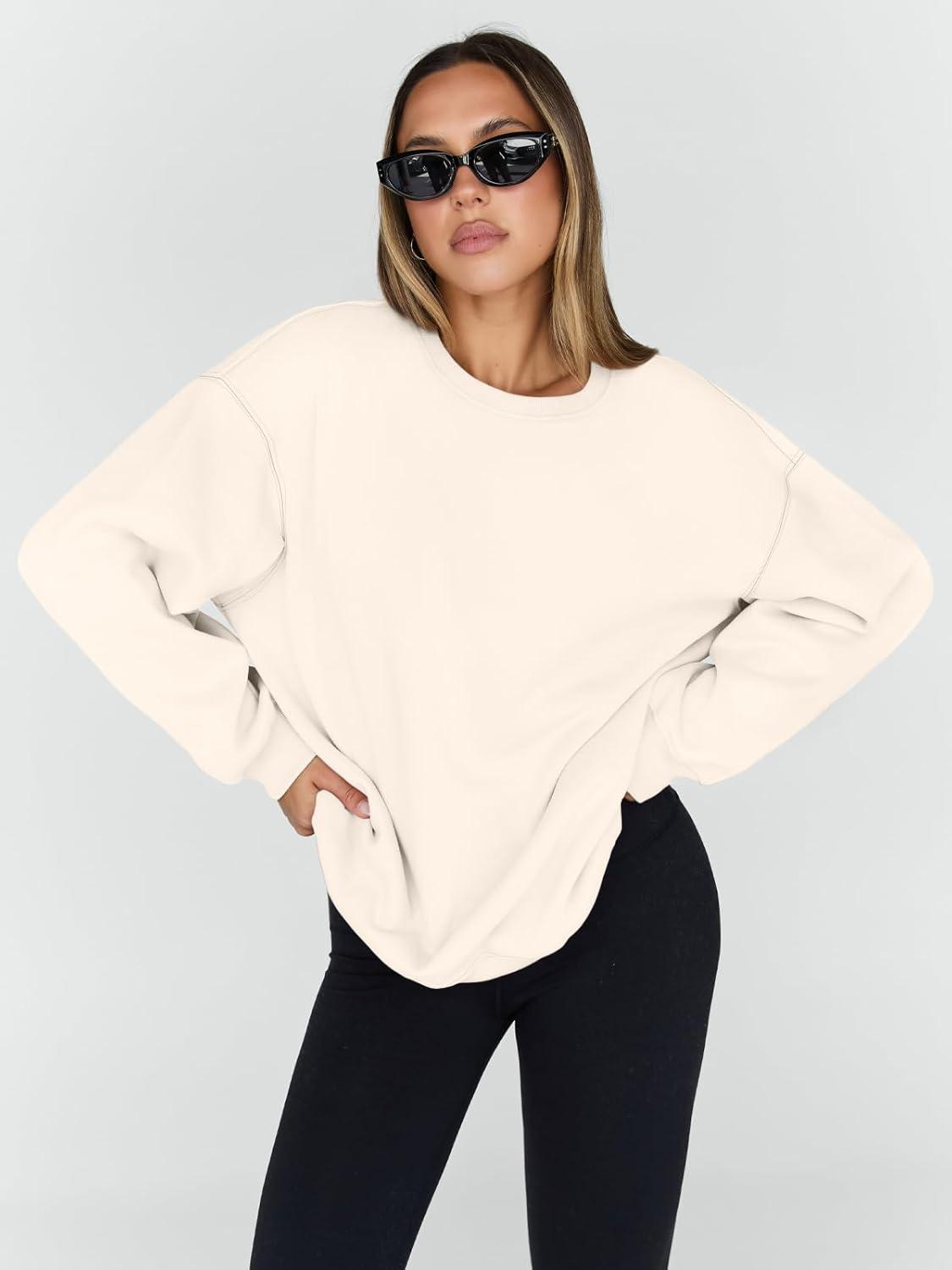 Trendy Queen Sweatshirts for Women Hoodies Oversized Crewneck Tops Sweaters Comfy Fall Winter Outfits Clothes 2025 Fashion(Apricot)