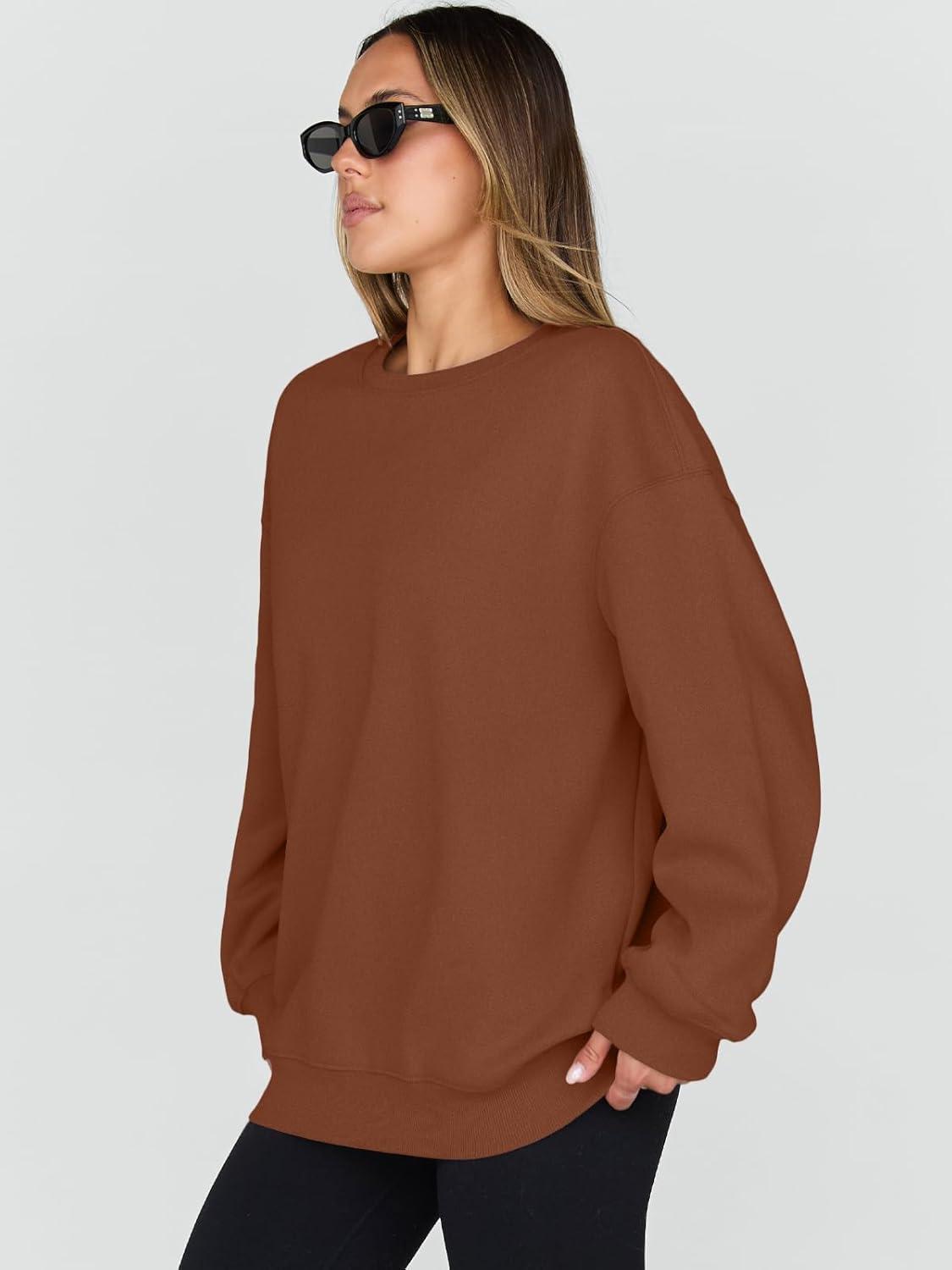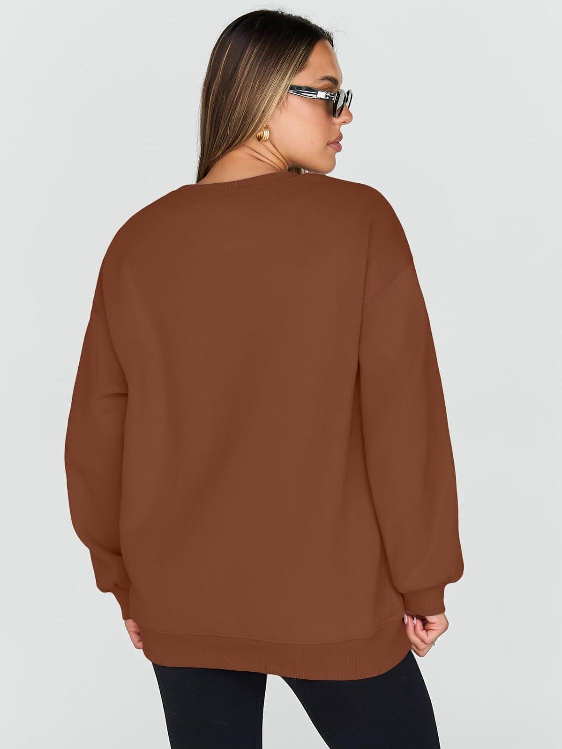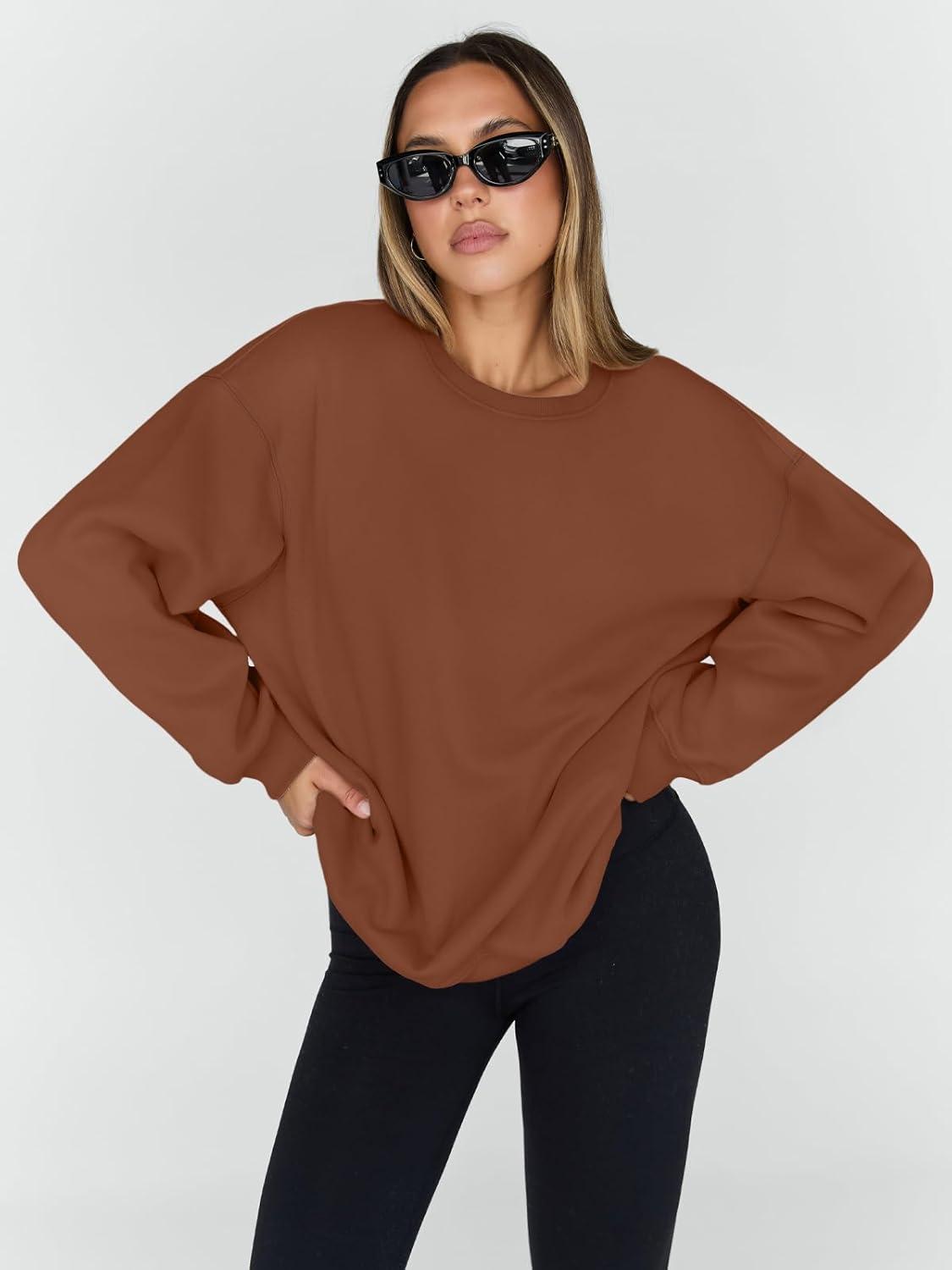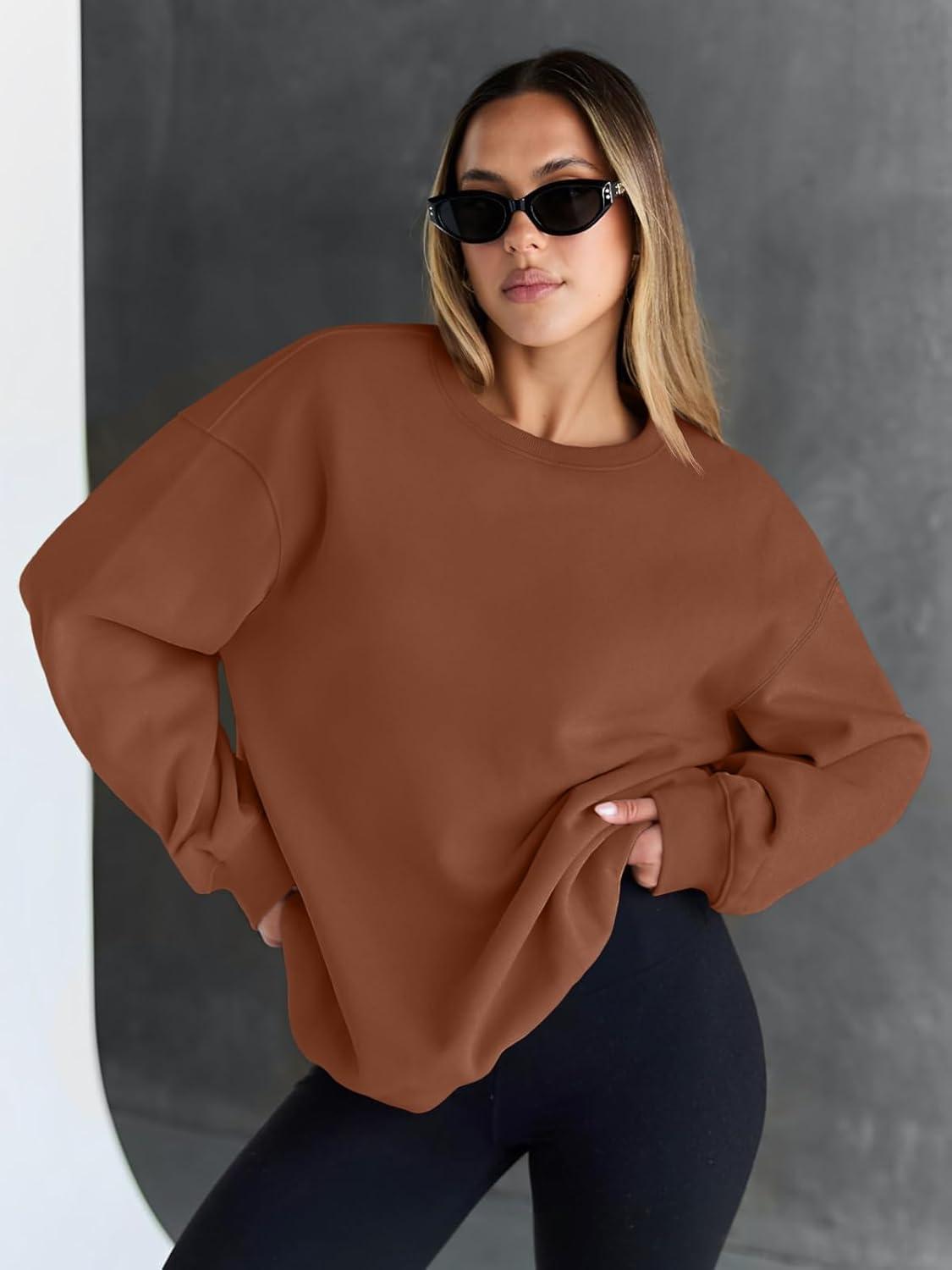 Trendy Queen Sweatshirts for Women Hoodies Oversized Crewneck Tops Sweaters Comfy Fall Winter Outfits Clothes 2025 Fashion(Caramel)