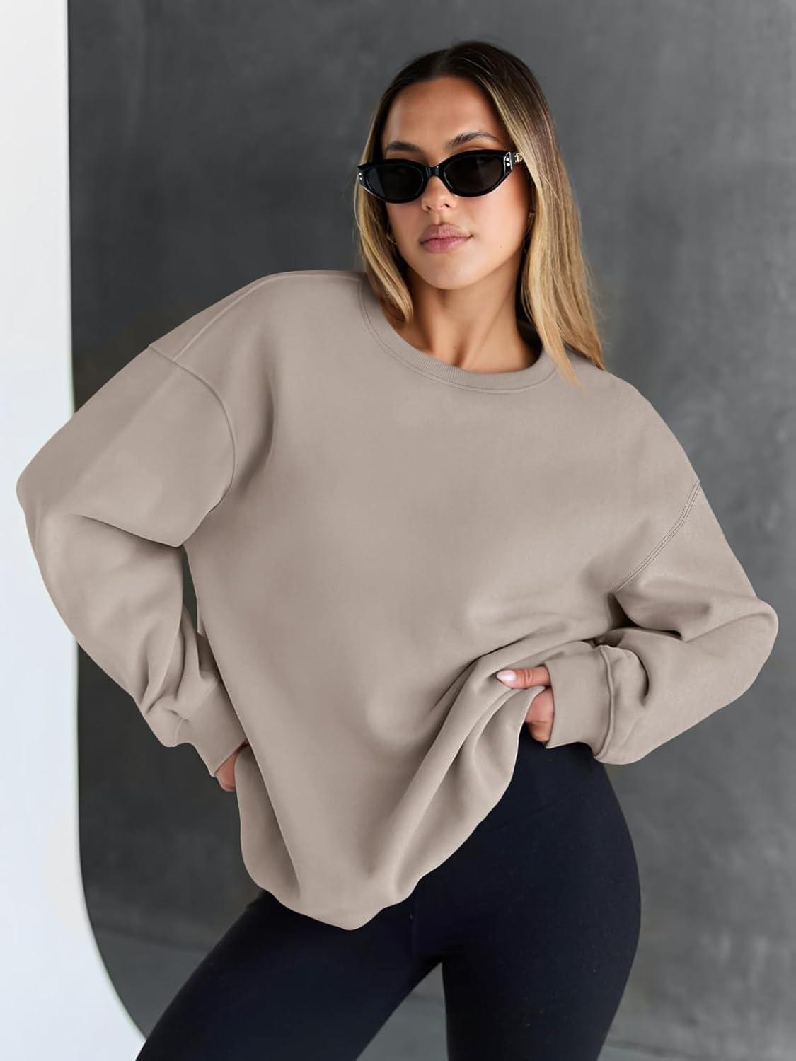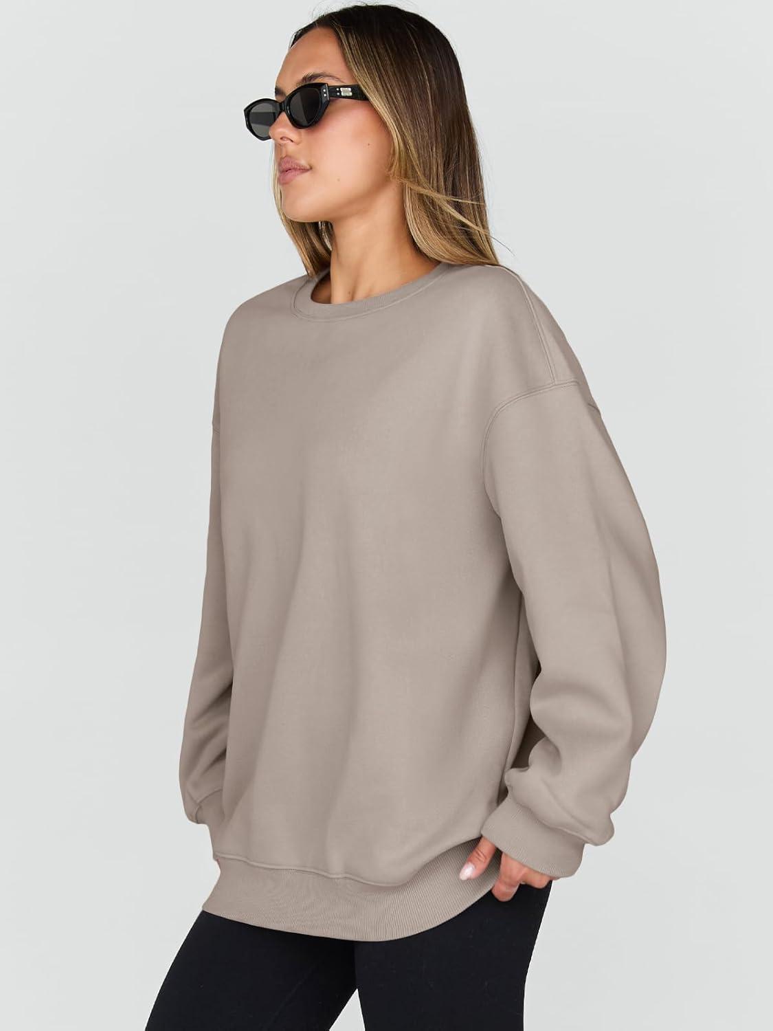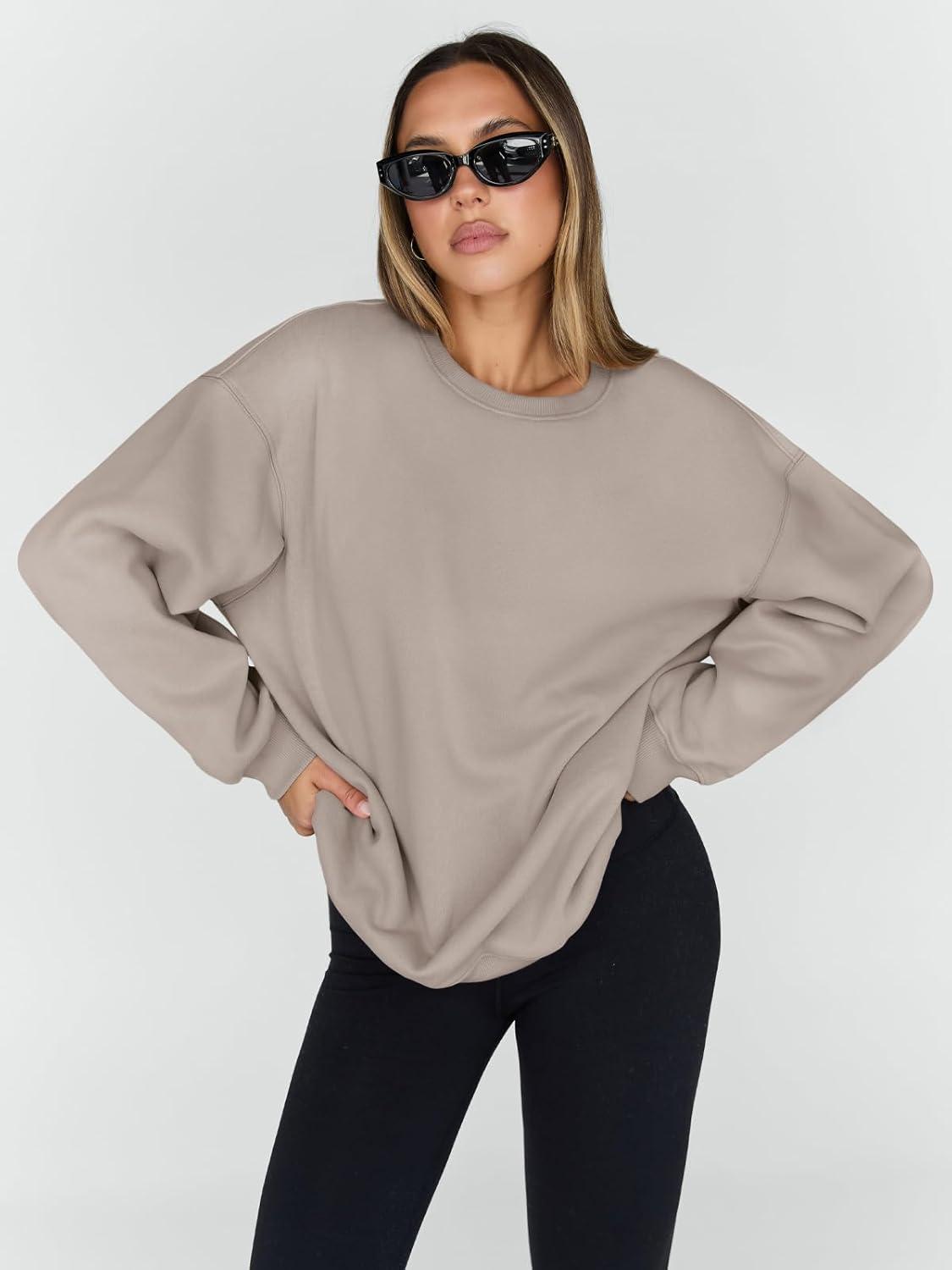 Trendy Queen Sweatshirts for Women Hoodies Oversized Crewneck Tops Sweaters Comfy Fall Winter Outfits Clothes 2025 Fashion(Coffeegrey)