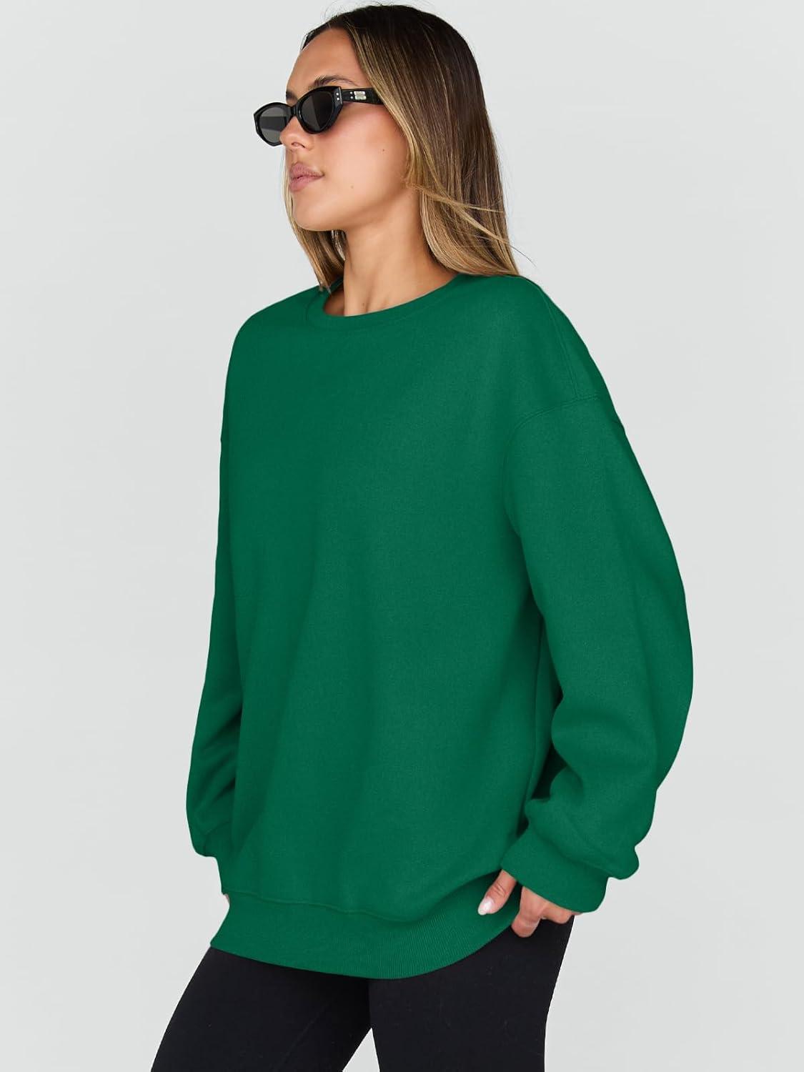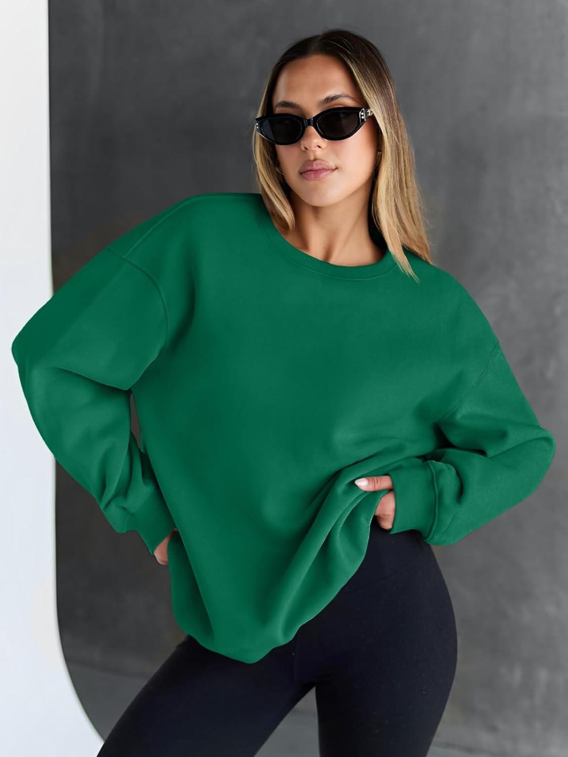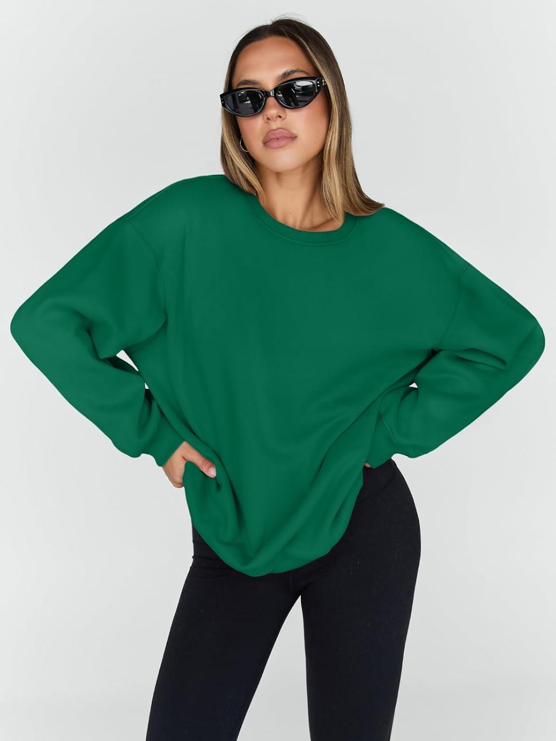 Trendy Queen Sweatshirts for Women Hoodies Oversized Crewneck Tops Sweaters Comfy Fall Winter Outfits Clothes 2025 Fashion(Grassgreen)