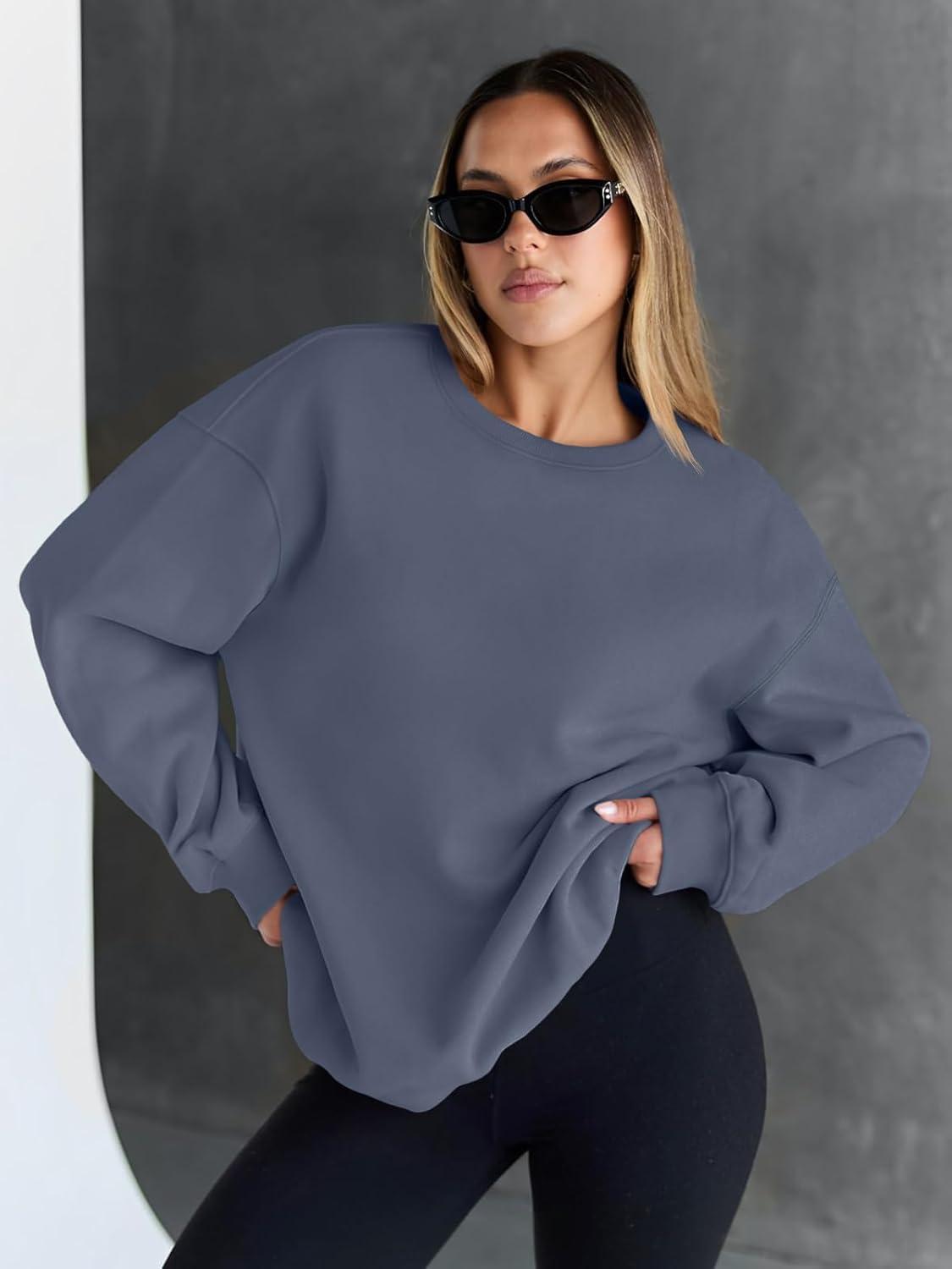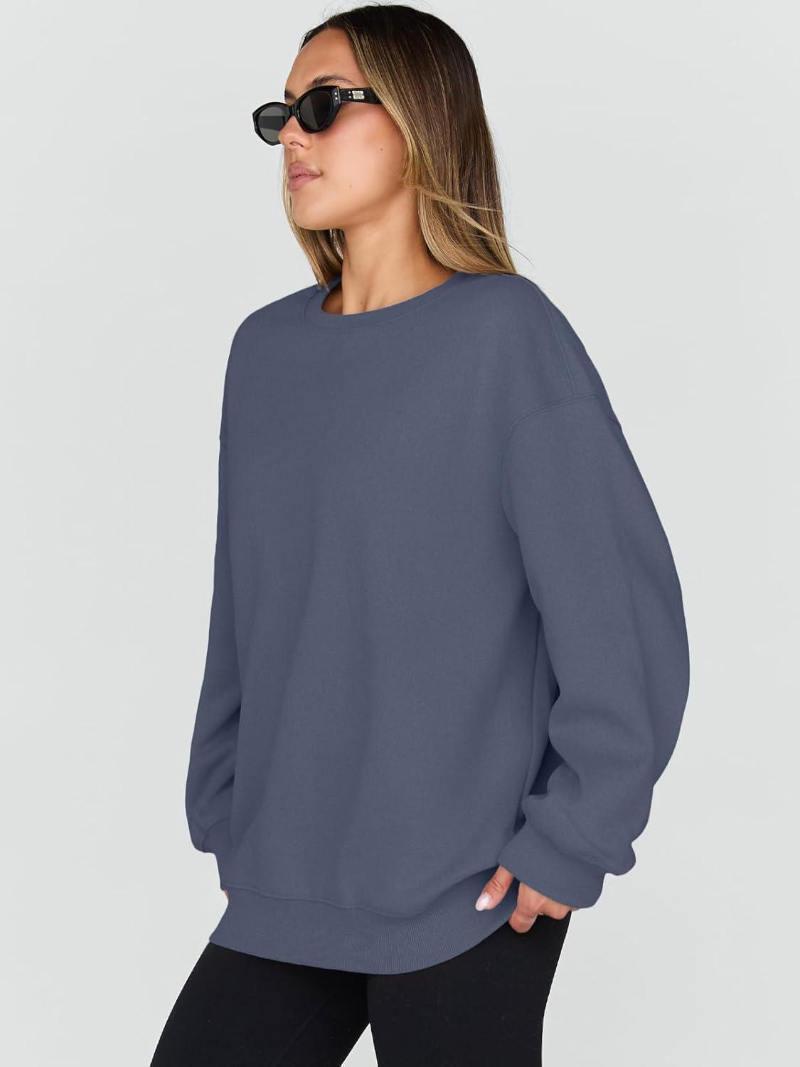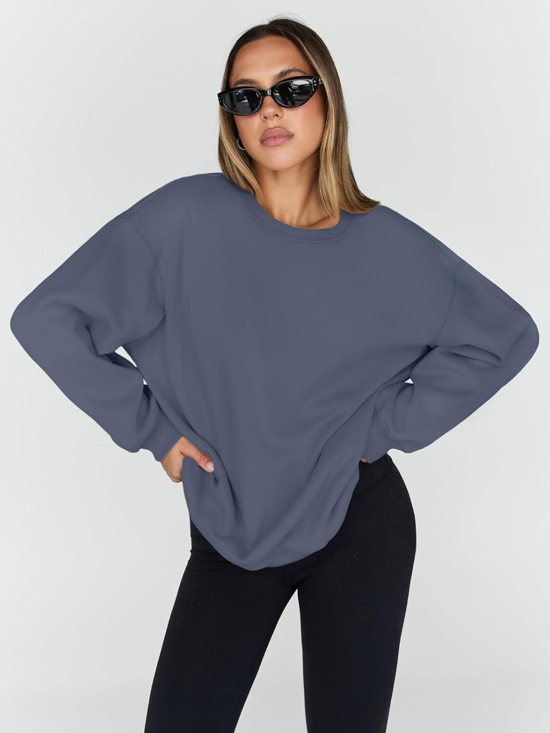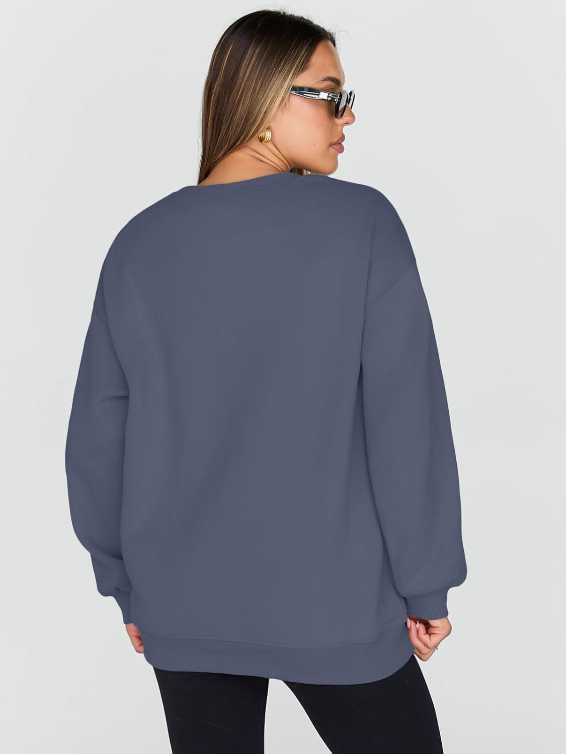 Trendy Queen Sweatshirts for Women Hoodies Oversized Crewneck Tops Sweaters Comfy Fall Winter Outfits Clothes 2025 Fashion(Greyblue)