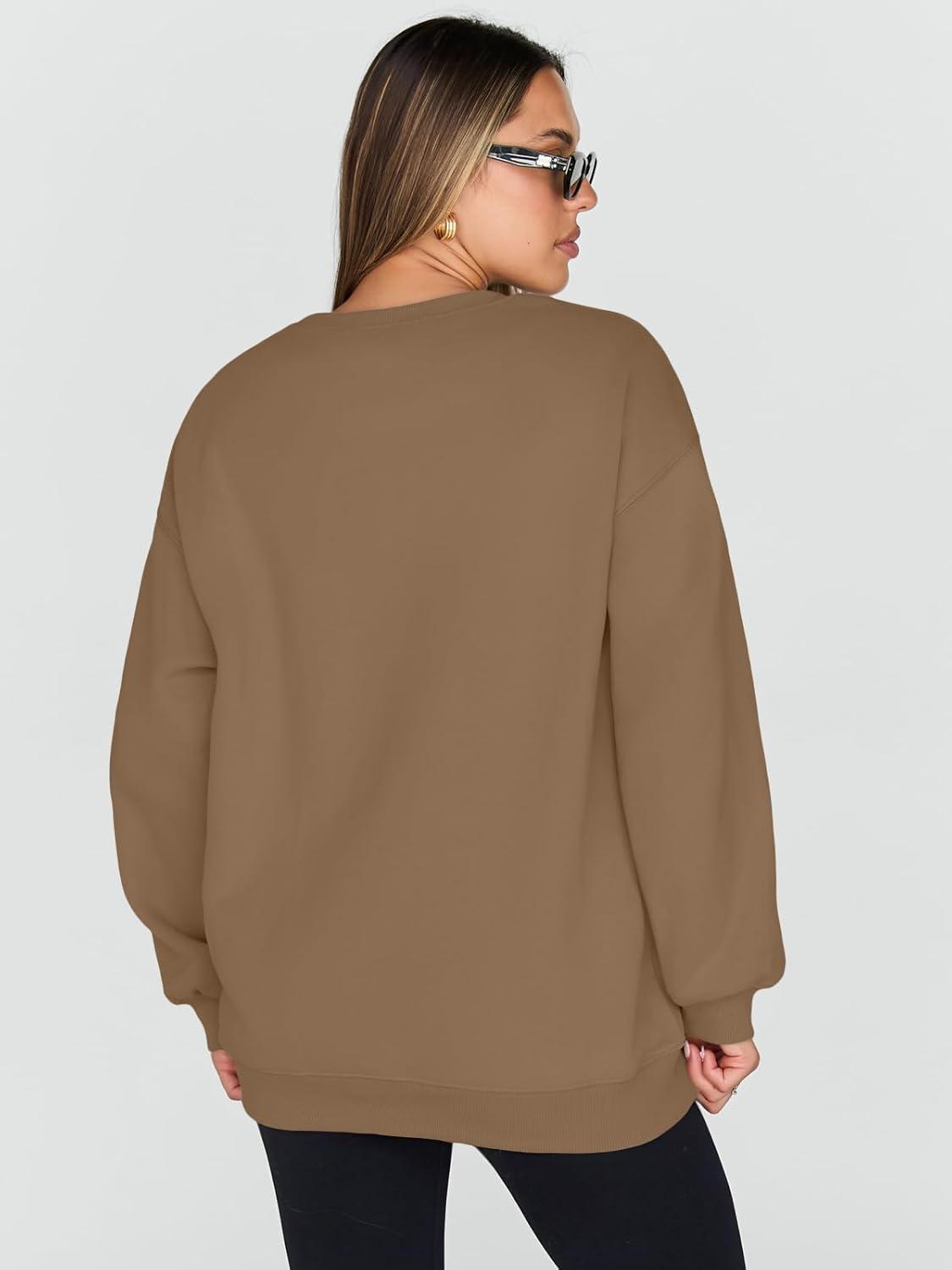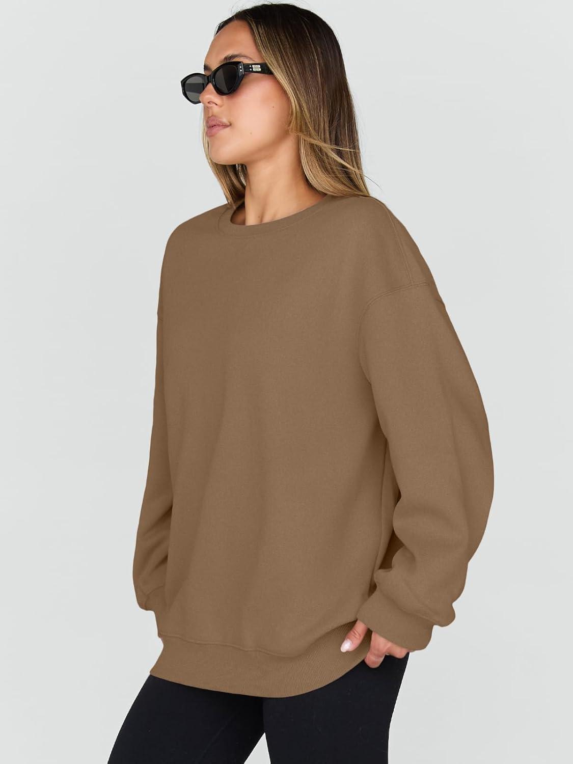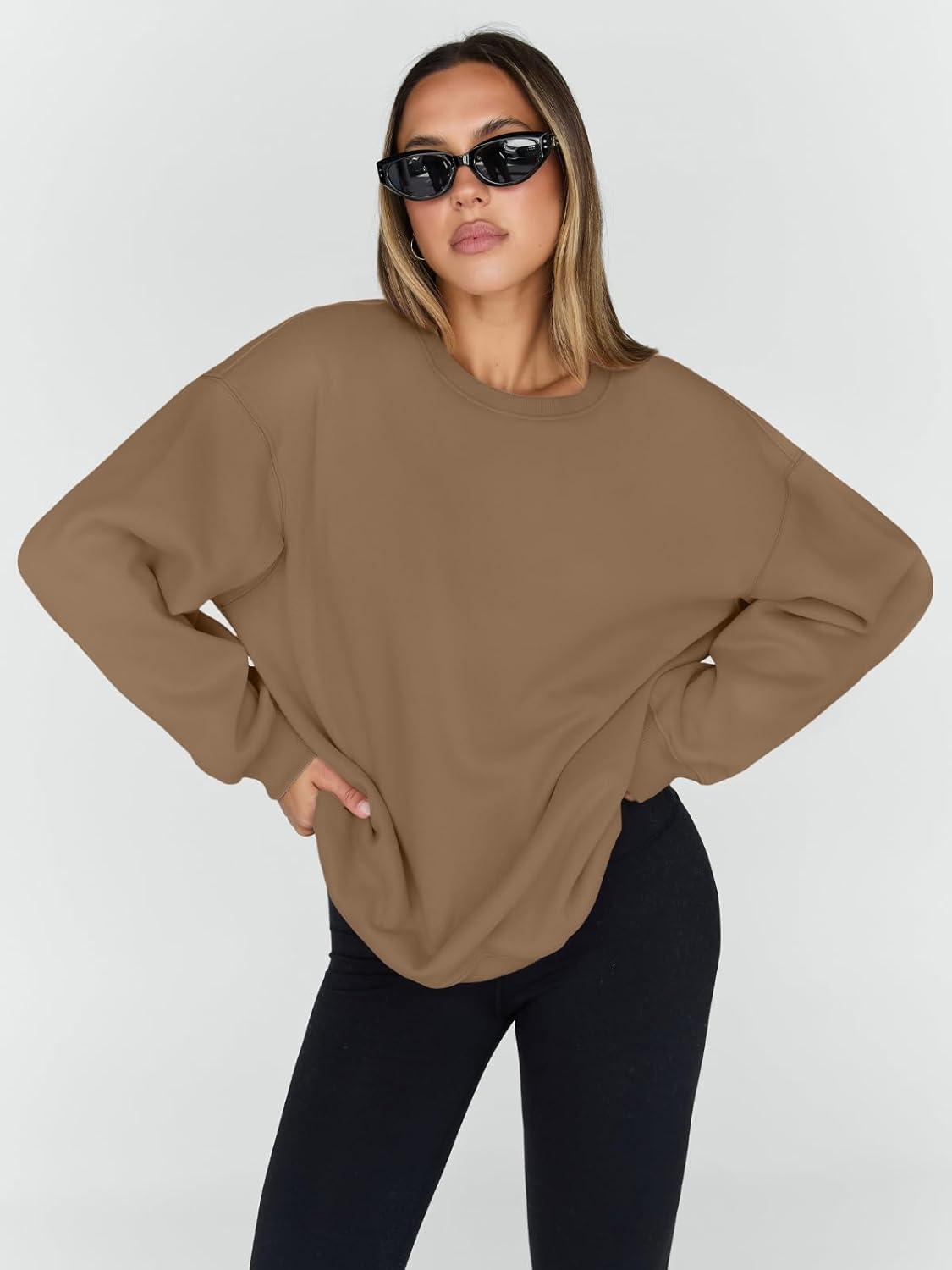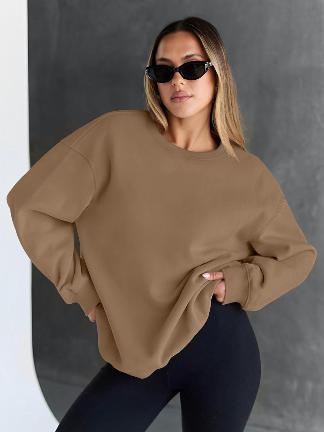 Trendy Queen Sweatshirts for Women Hoodies Oversized Crewneck Tops Sweaters Comfy Fall Winter Outfits Clothes 2025 Fashion(Khaki)