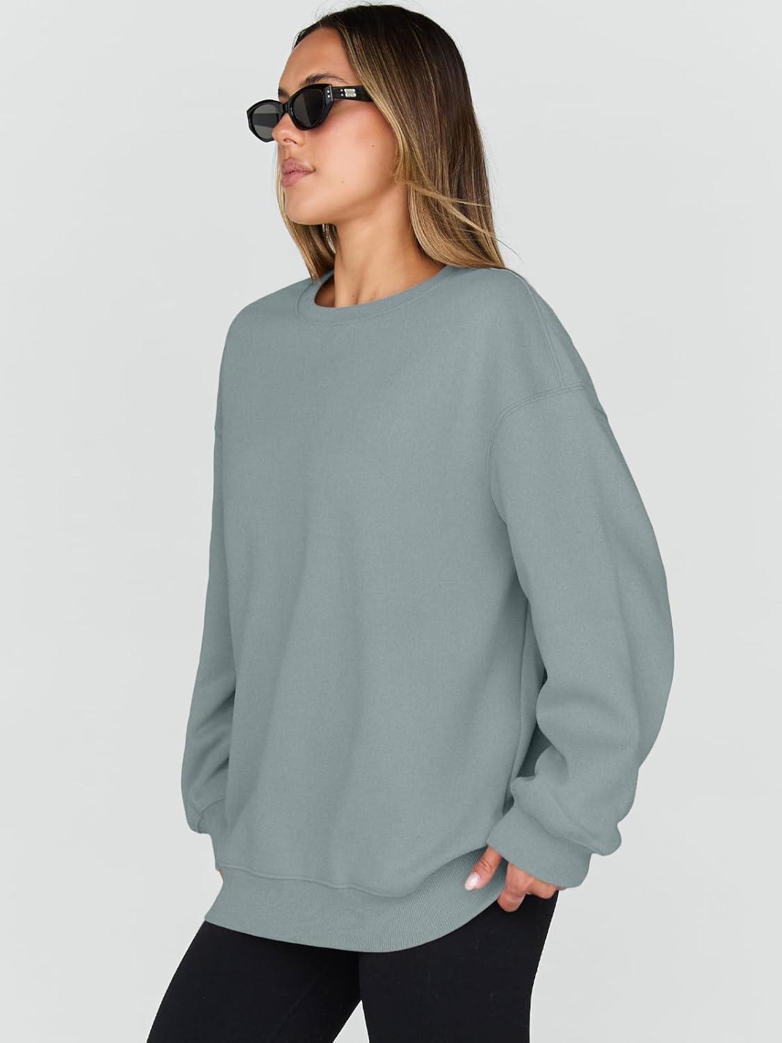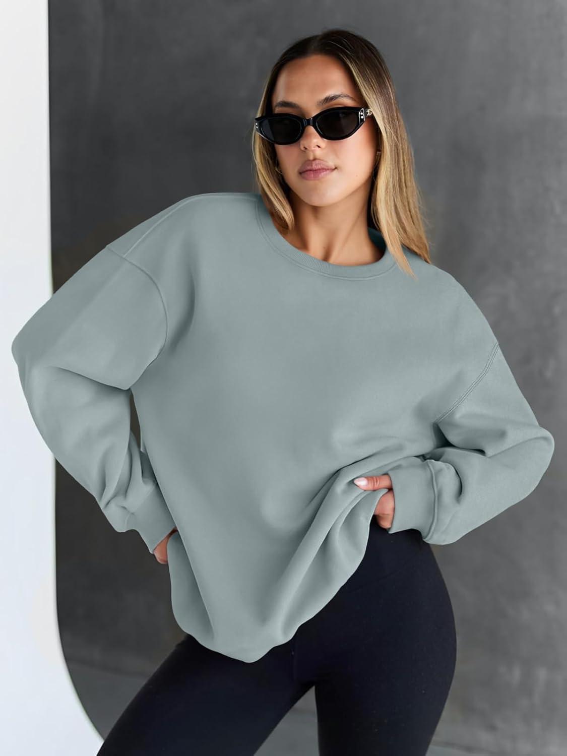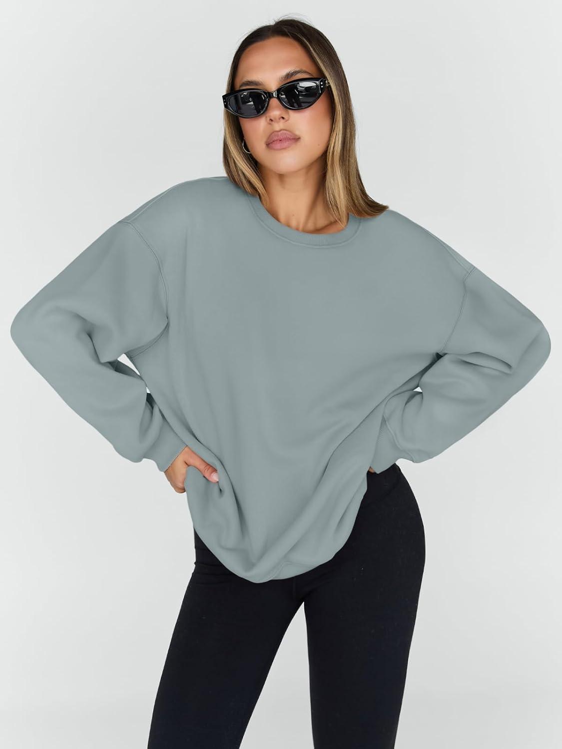 Trendy Queen Sweatshirts for Women Hoodies Oversized Crewneck Tops Sweaters Comfy Fall Winter Outfits Clothes 2025 Fashion(Lightgreen)