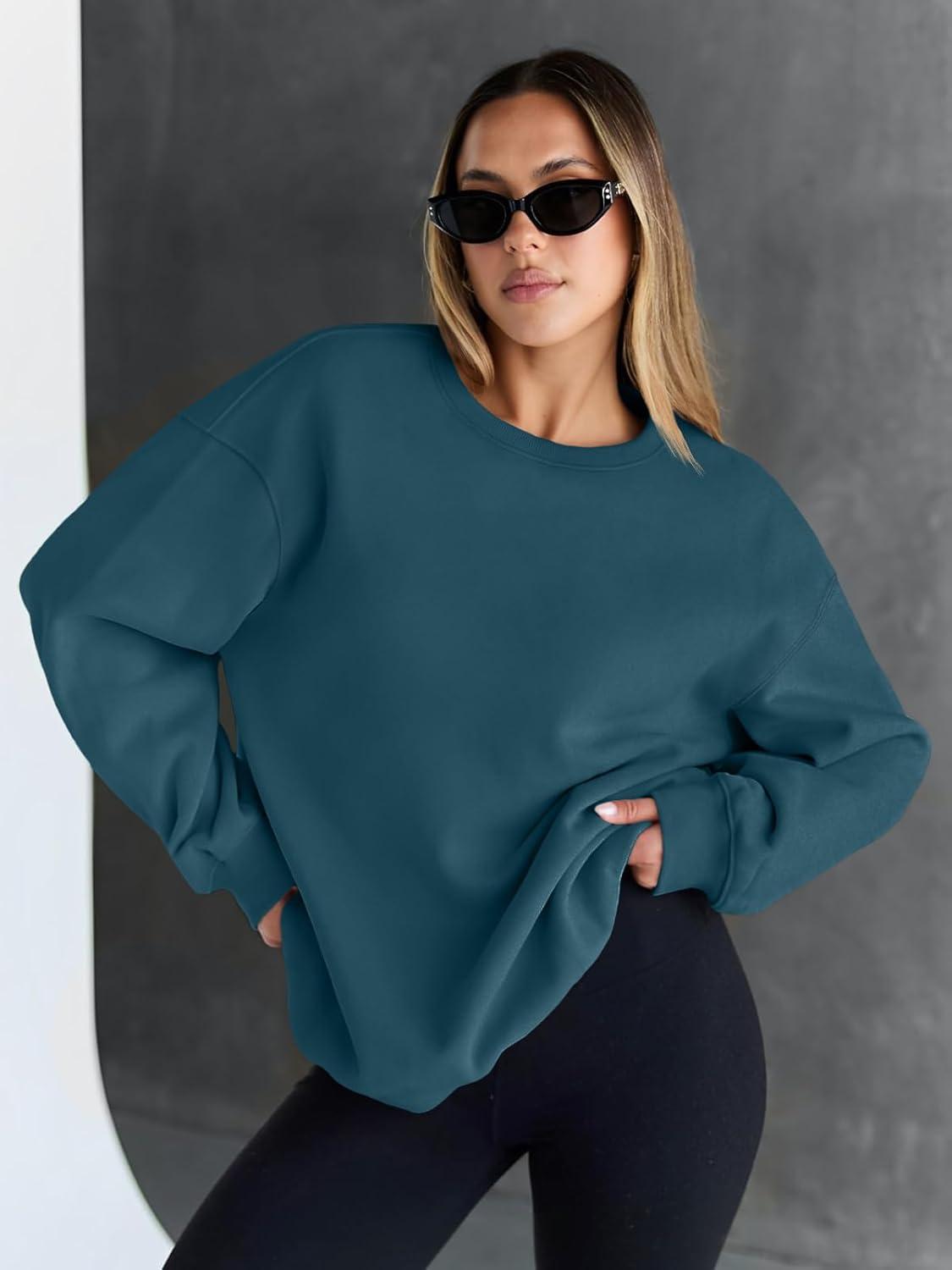 Trendy Queen Sweatshirts for Women Hoodies Oversized Crewneck Tops Sweaters Comfy Fall Winter Outfits Clothes 2025 Fashion(Navy)