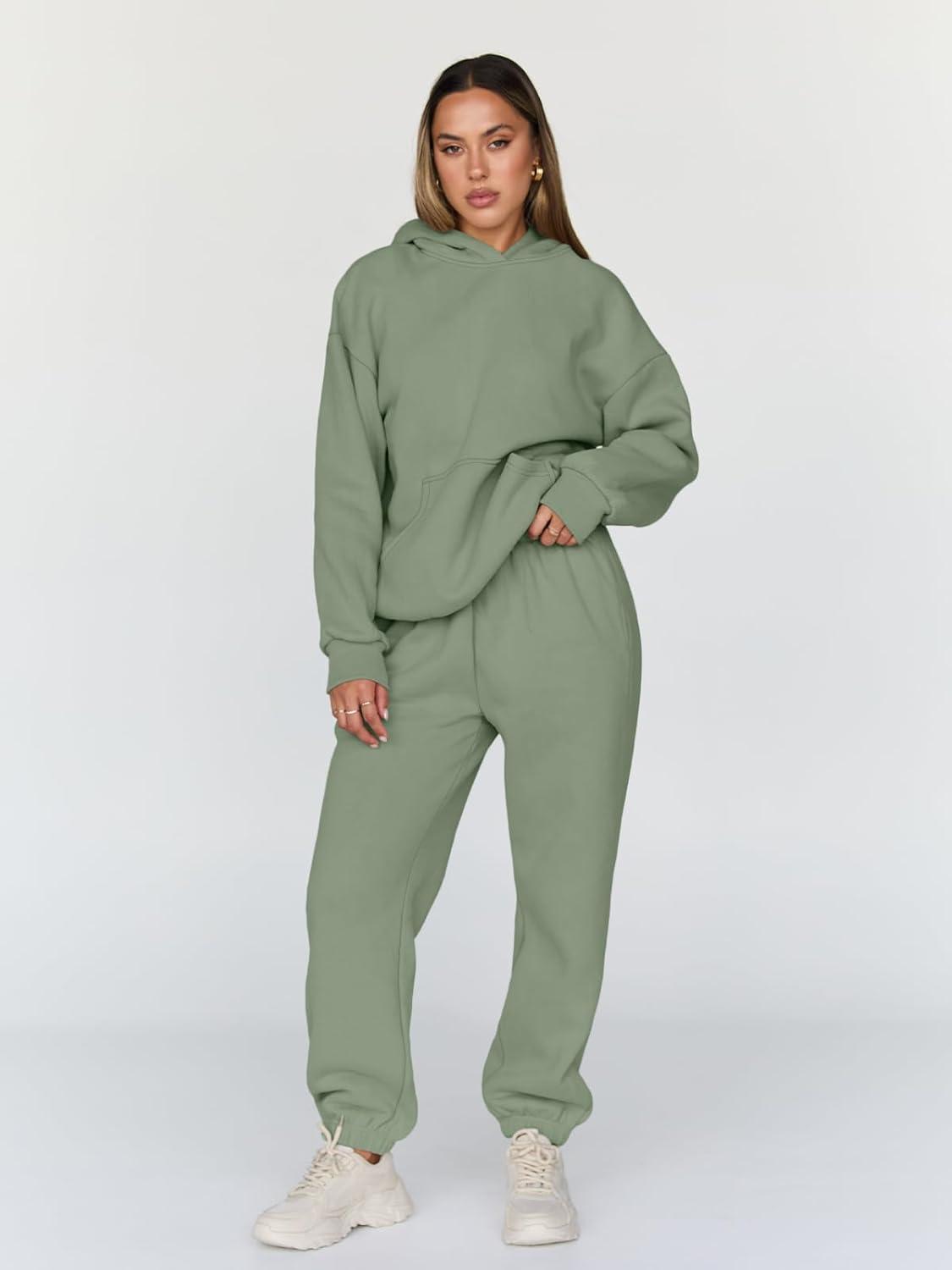 Trendy Queen Sweatsuits Women 2 Piece Outfit Two Piece Lounge Sets Hoodies and Sweatpants Fall Fashion Clothes 2025 Tracksuit(Green)