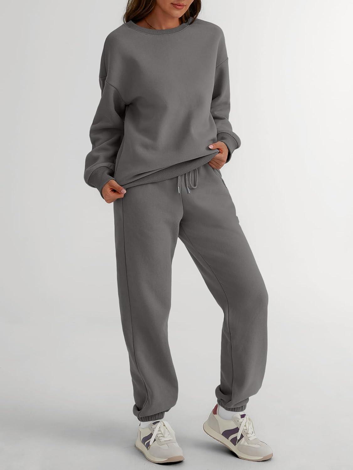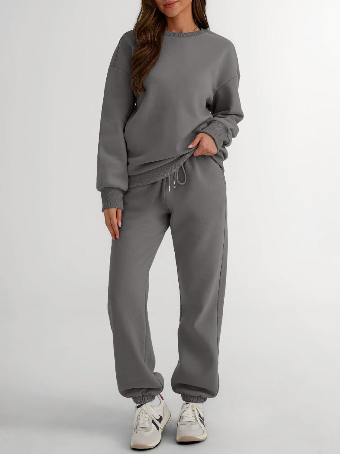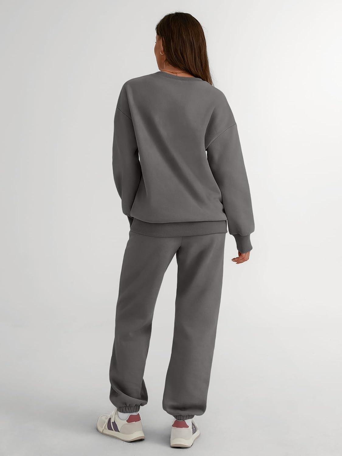 Trendy Queen Sweatsuits Women 2 Piece Outfits Two Piece Crewneck Sweatshirts Sets Lounge Fall Sweatpants 2025 Tracksuits(Blackgrey)