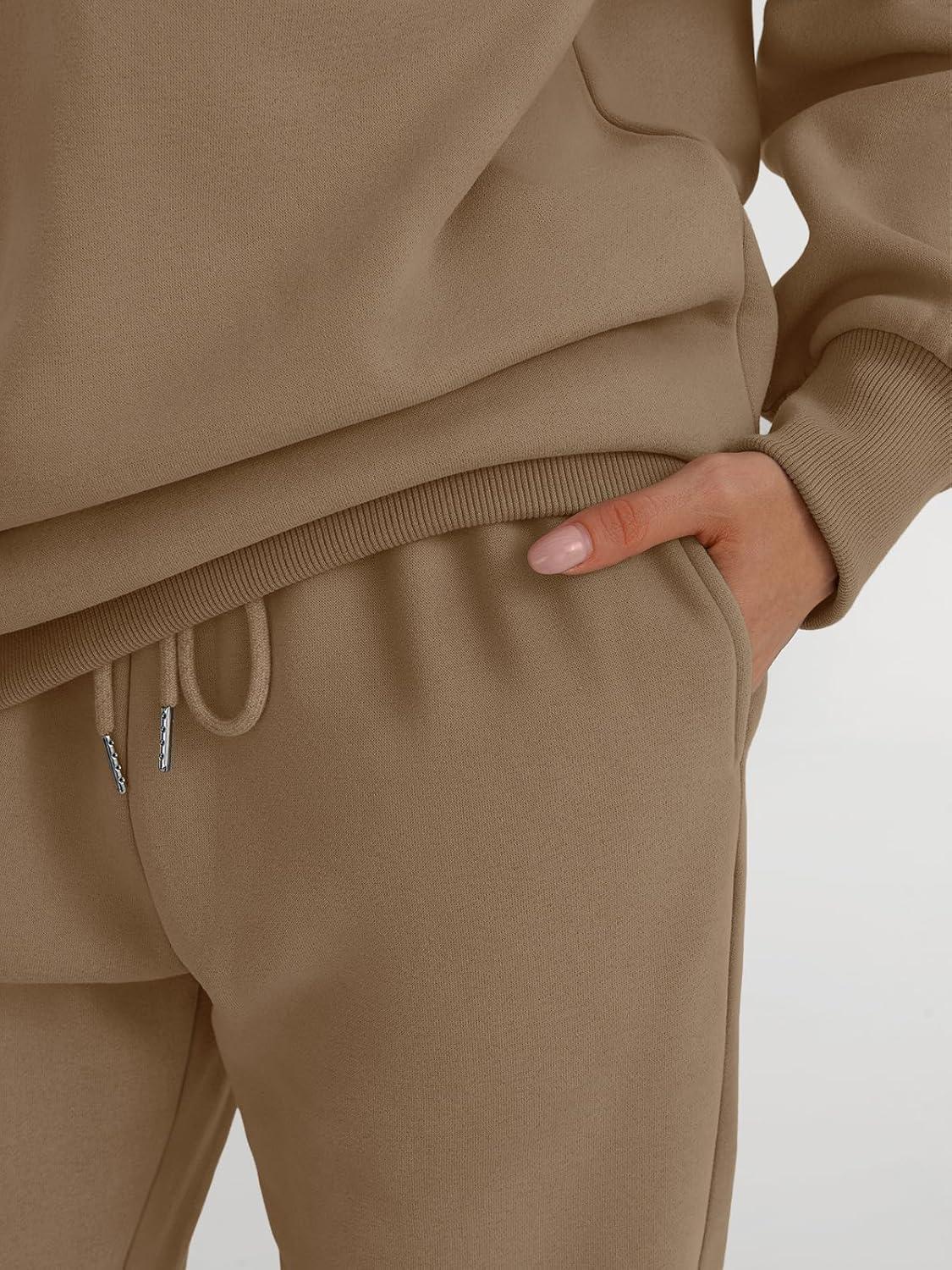 Trendy Queen Sweatsuits Women 2 Piece Outfits Two Piece Crewneck Sweatshirts Sets Lounge Fall Sweatpants 2025 Tracksuits(Coffee)
