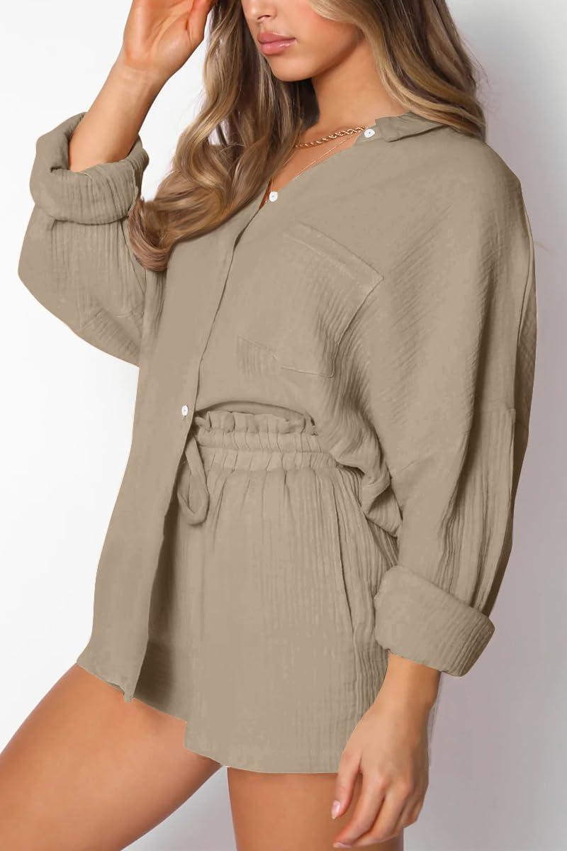 Trendy Queen Two Piece Sets For Women Summer Short Sets Beach Vcation Lounge Pajama 2 Piece Spring Outfits Fashion 2025(Coffeegrey)