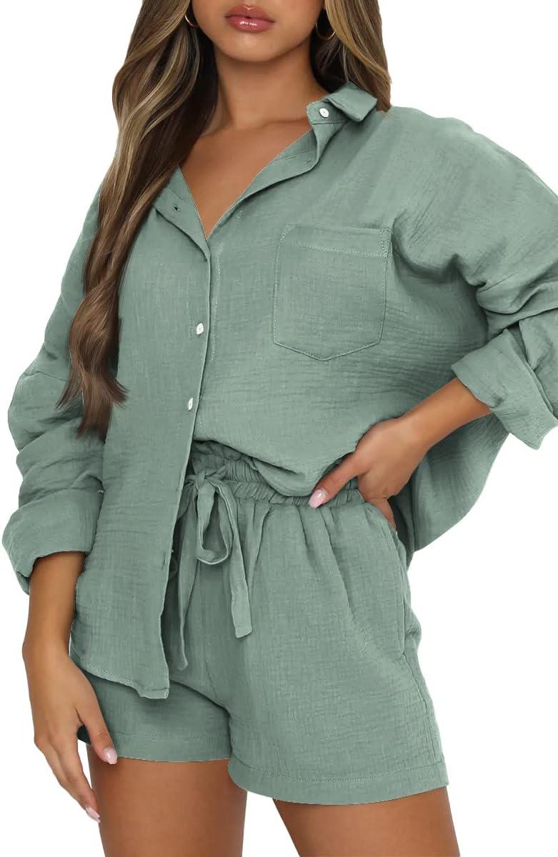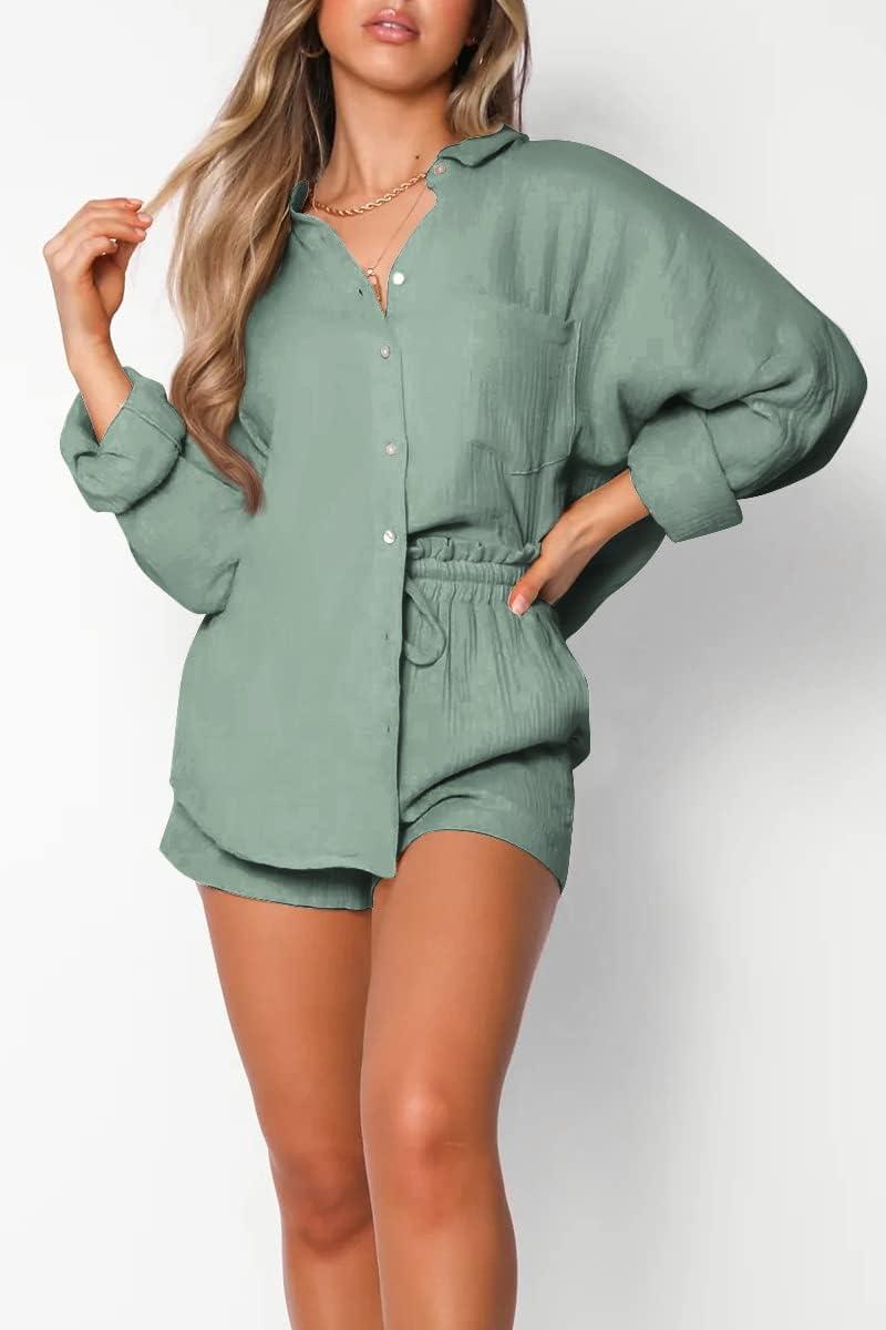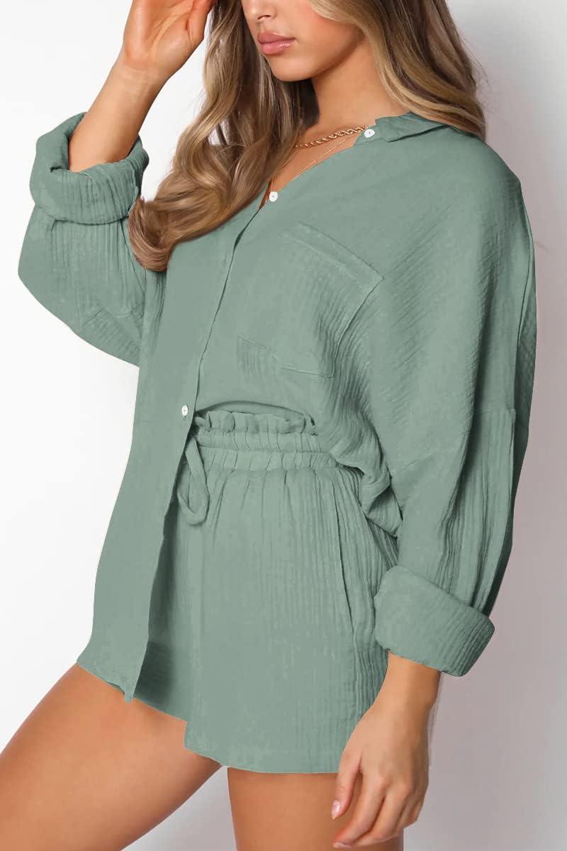 Trendy Queen Two Piece Sets For Women Summer Short Sets Beach Vcation Lounge Pajama 2 Piece Spring Outfits Fashion 2025(Green)