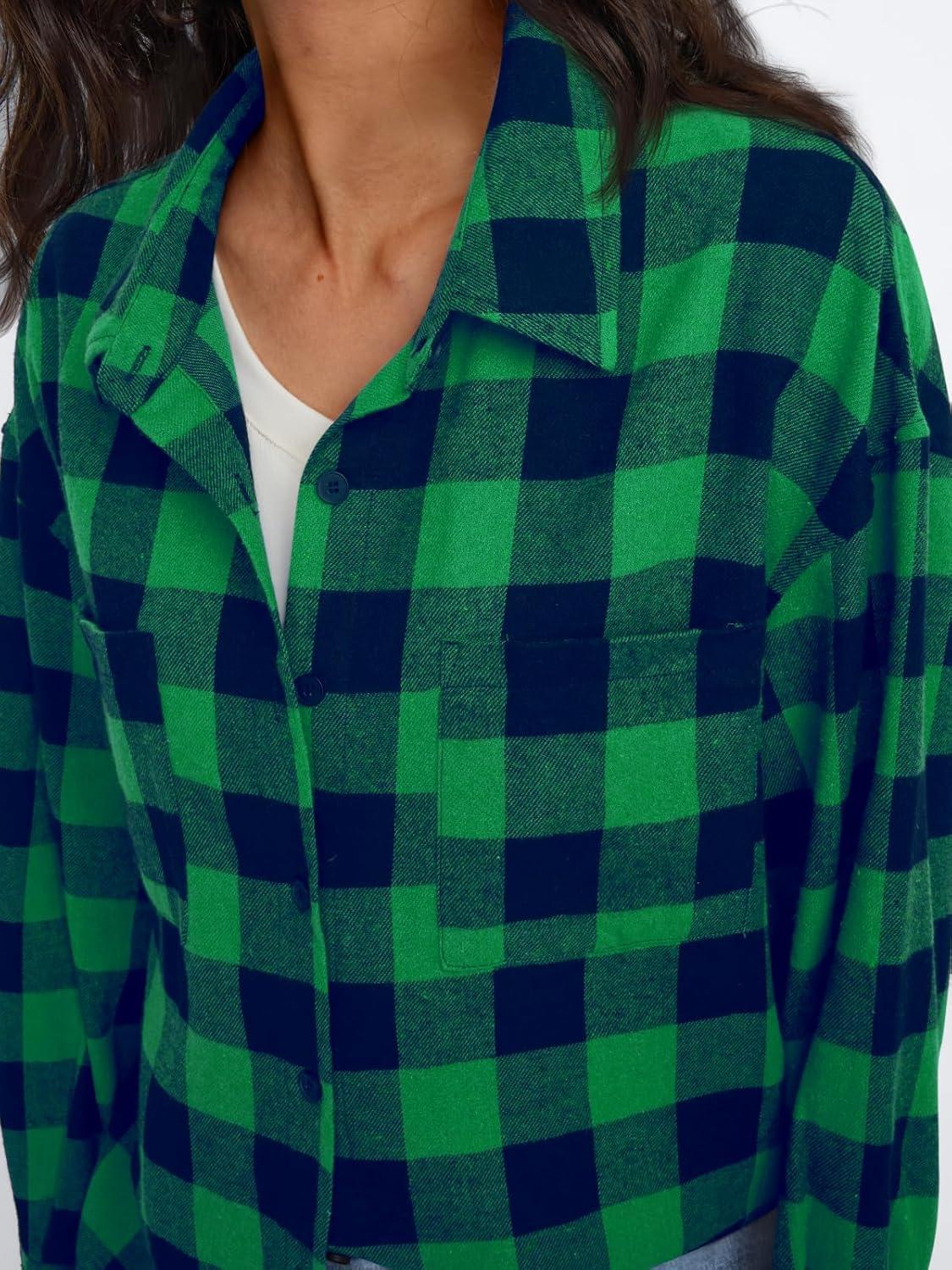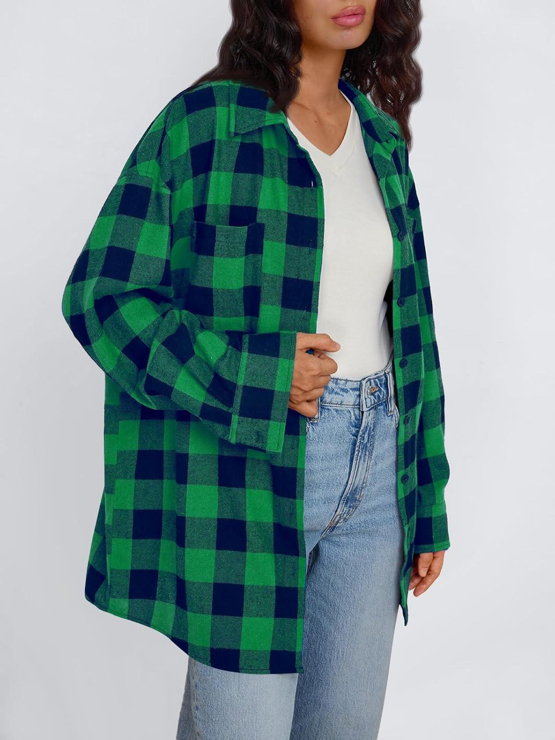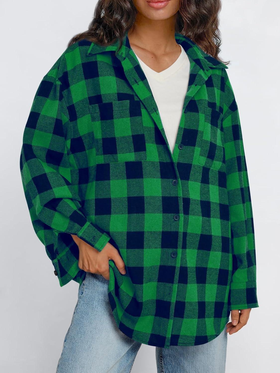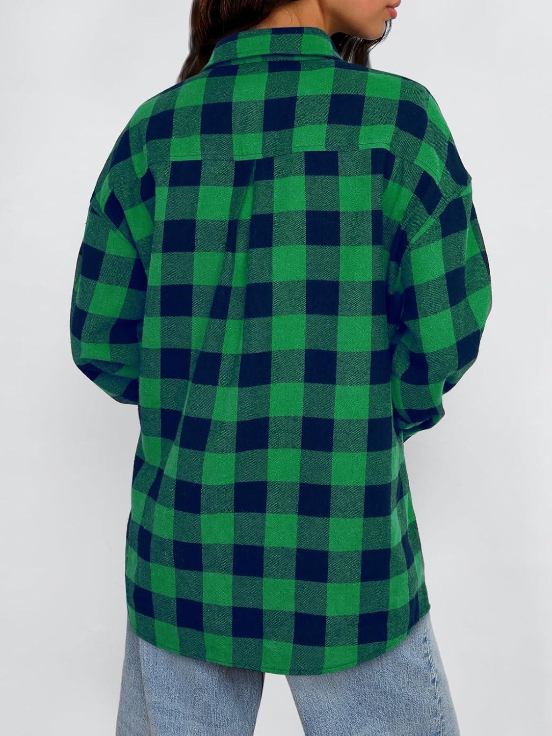 Trendy Queen Women Flannel Shirts Plaid Tops Fall Fashion Shackets Long Sleeve Blouse Button Down Outfits Winter Jackets 2025(Green)