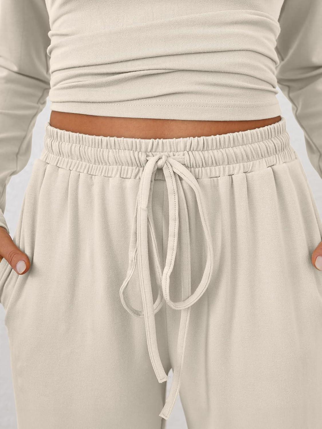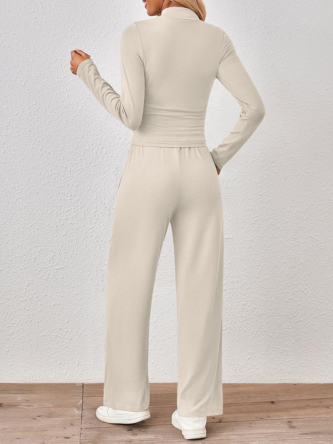 Trendy Queen Womens 2 Piece Matching Lounge Set Mock Turtleneck Top Wide Leg Pants Casual Sweatsuit with Pockets(Apricot)