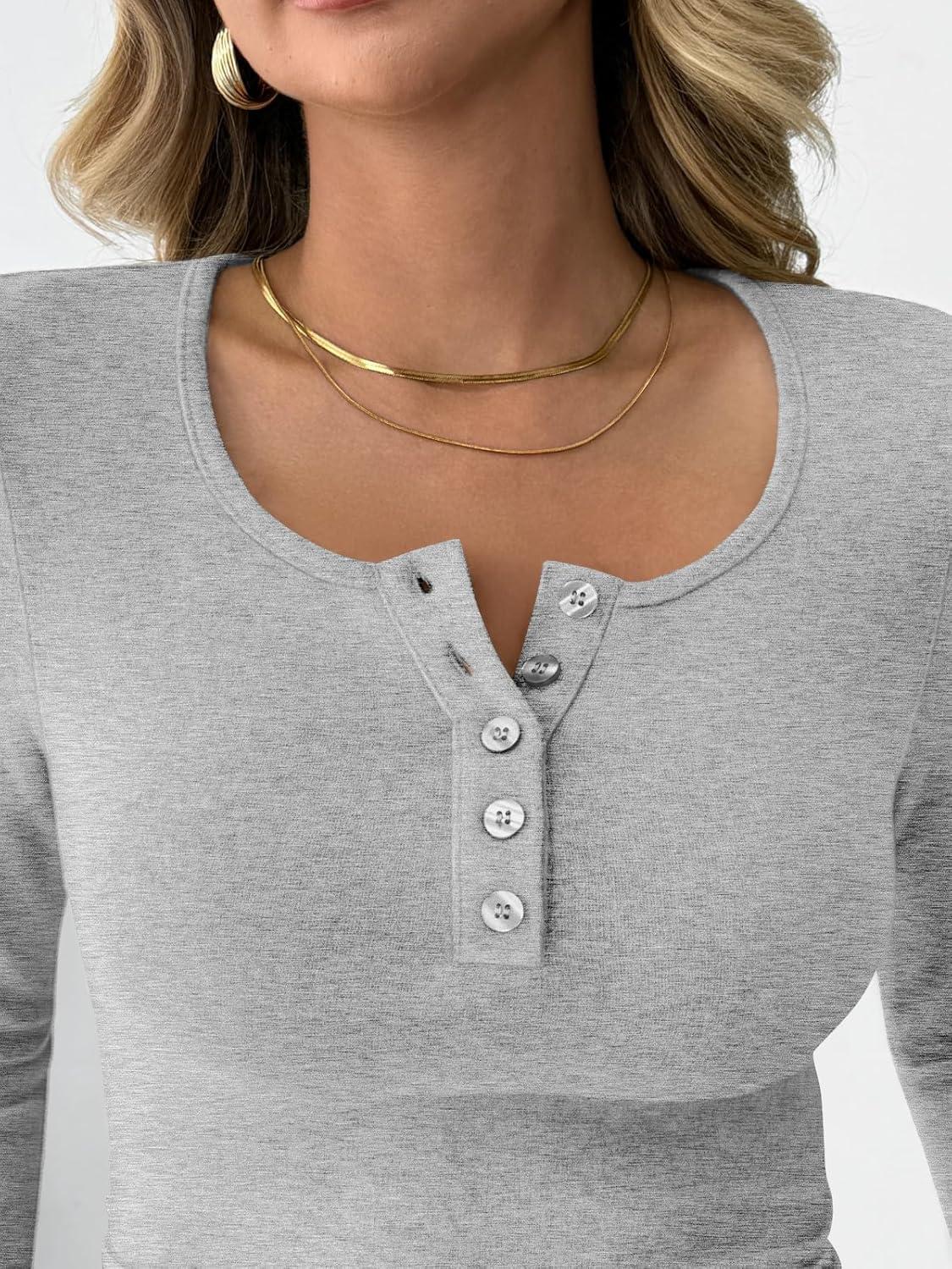 Trendy Queen Women’s 2 Piece Matching Lounge Sets Fall Fashion Outfits Henley Neck Sweater Top Wide Leg Pants Sweat Suits(Oatmeal Grey)