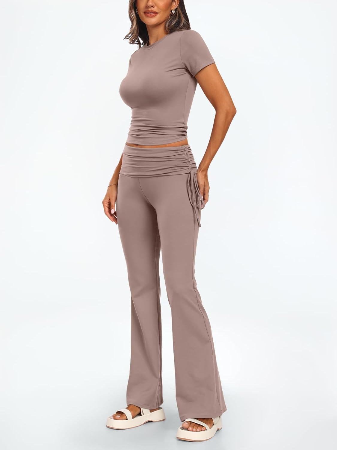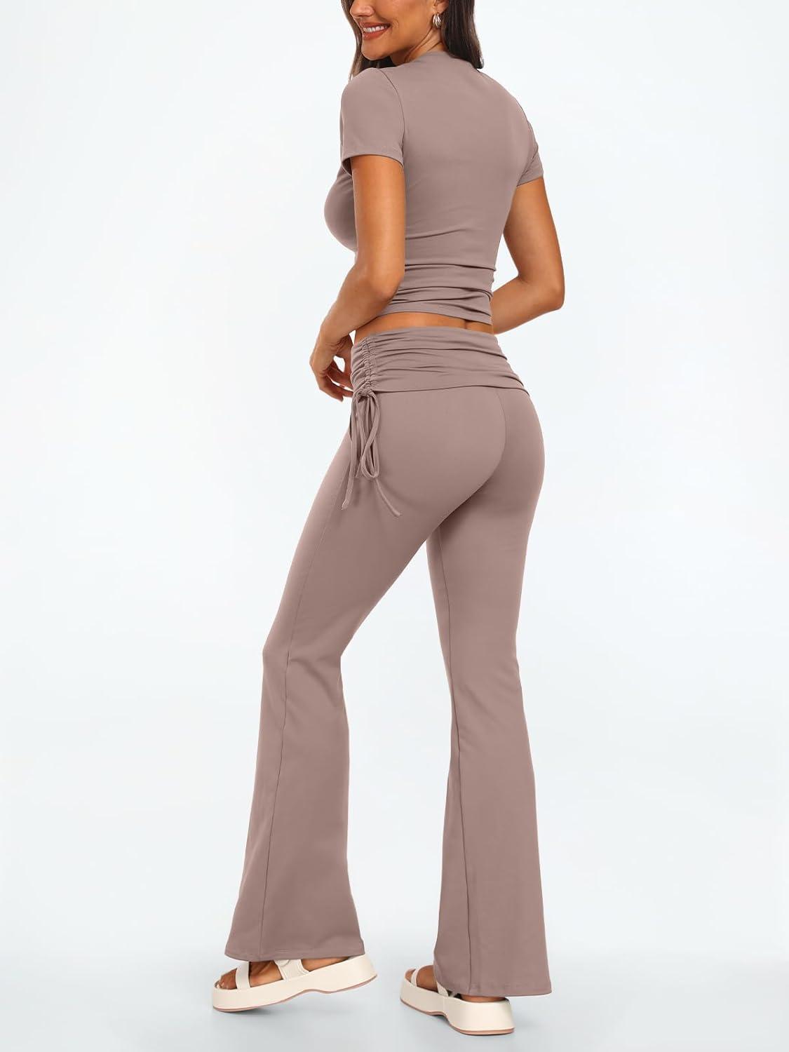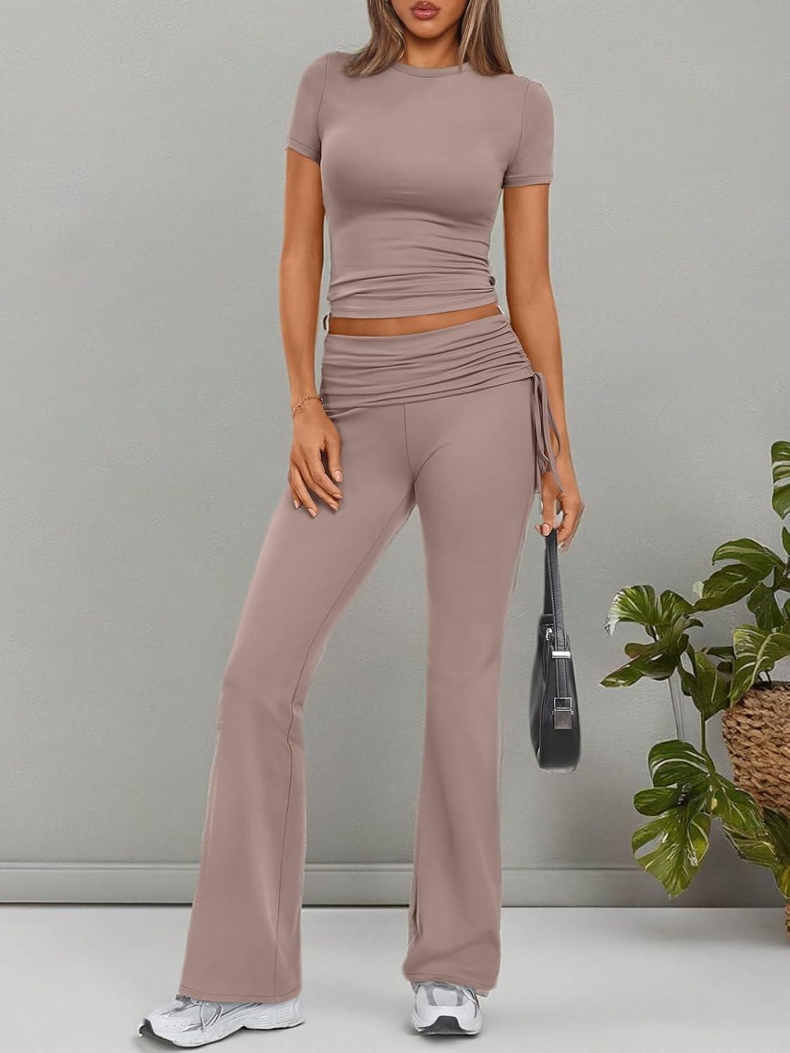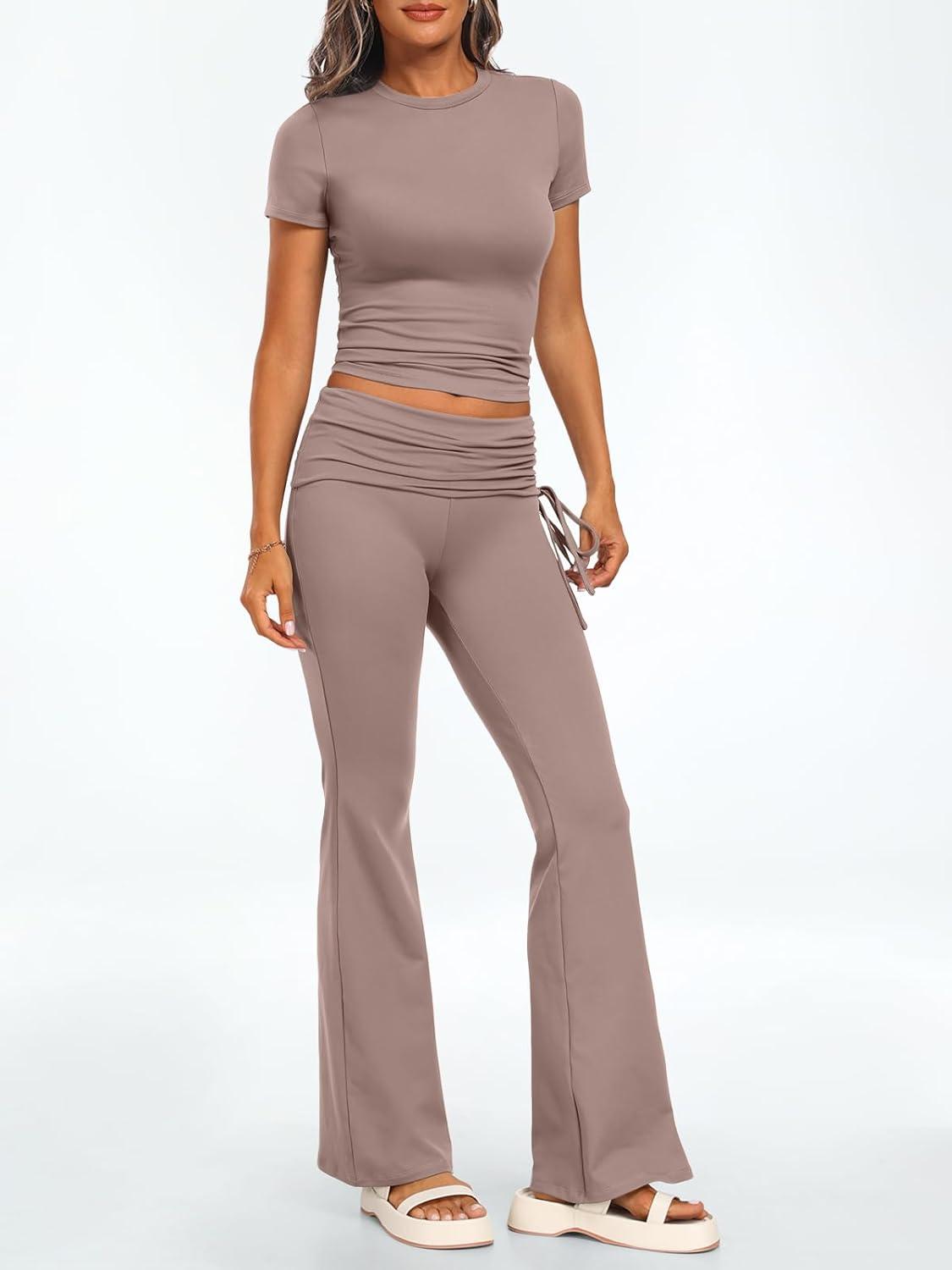 Trendy Queen Womens 2 Piece Outfits Lounge Sets Summer Short Sleeve Cropped Tops and Drawstring Flare Pants Tracksuits