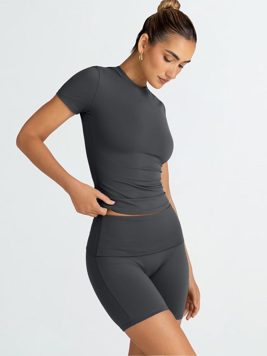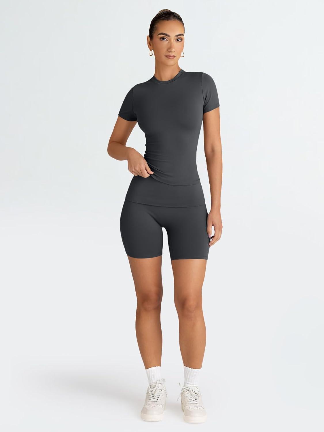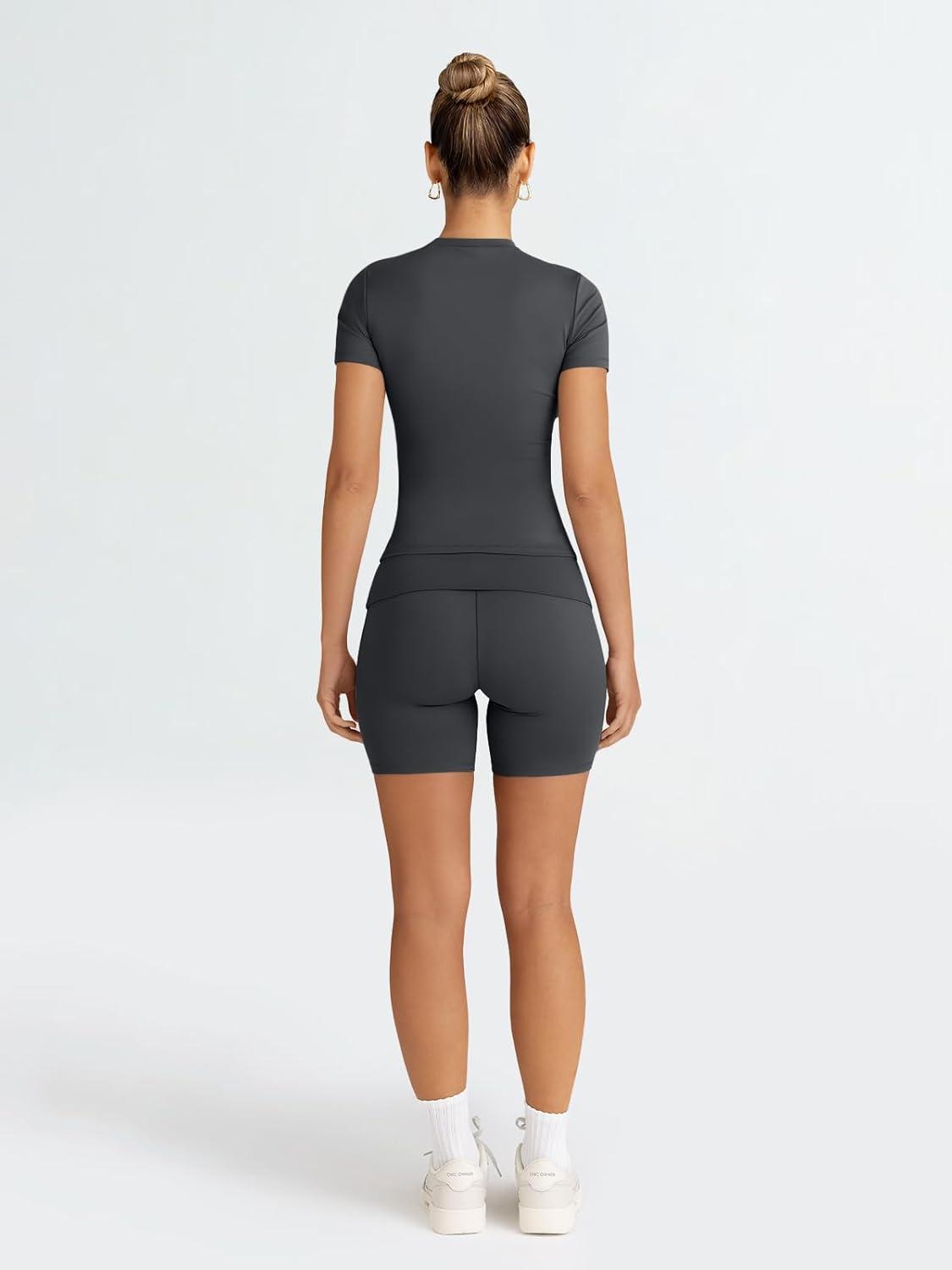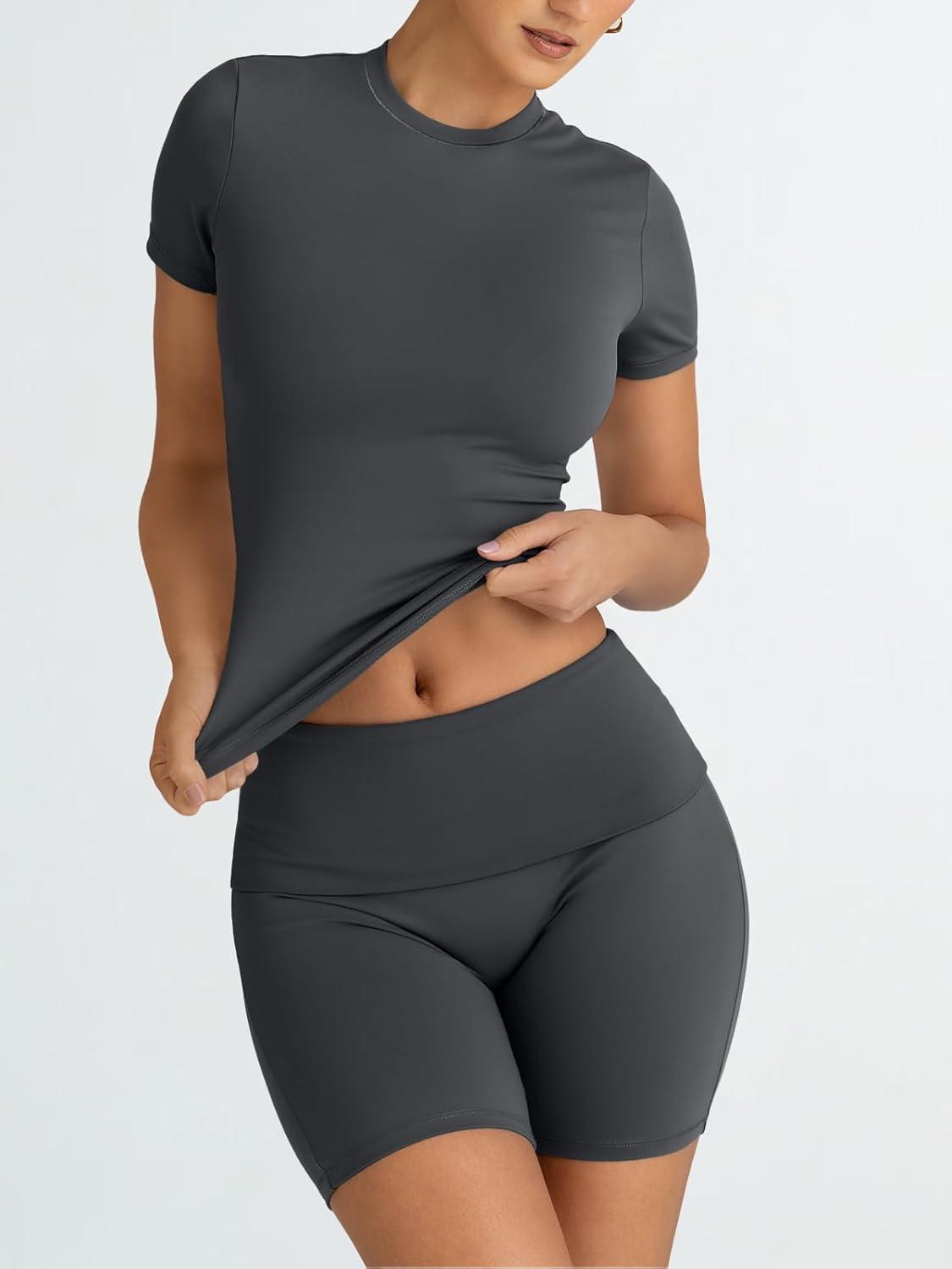 Trendy Queen Womens 2 Piece Workout Sets Short Matching Lounge Sets Summer Clothes Going Out Gym Outfits(Blackgrey)