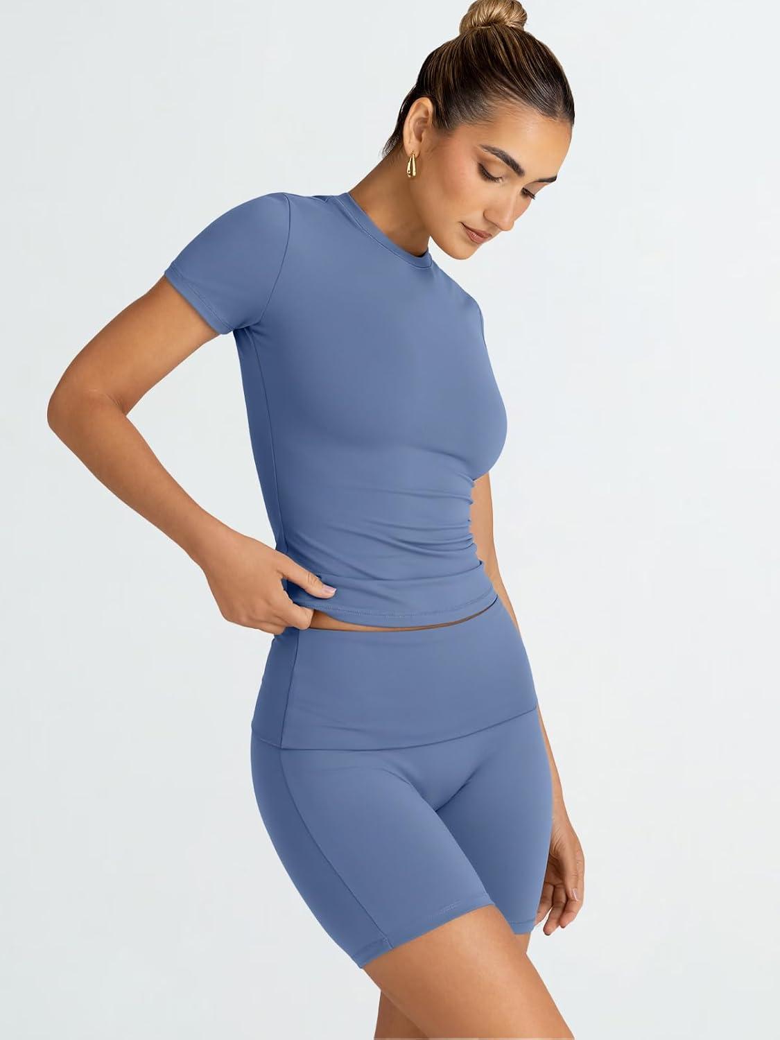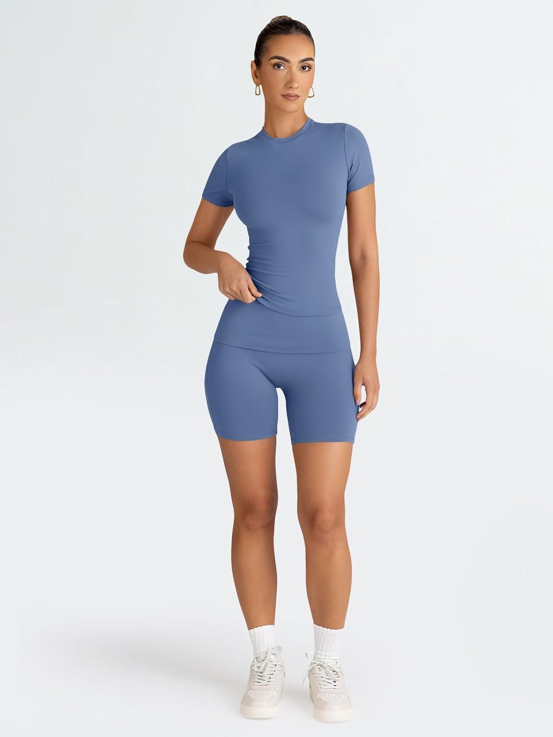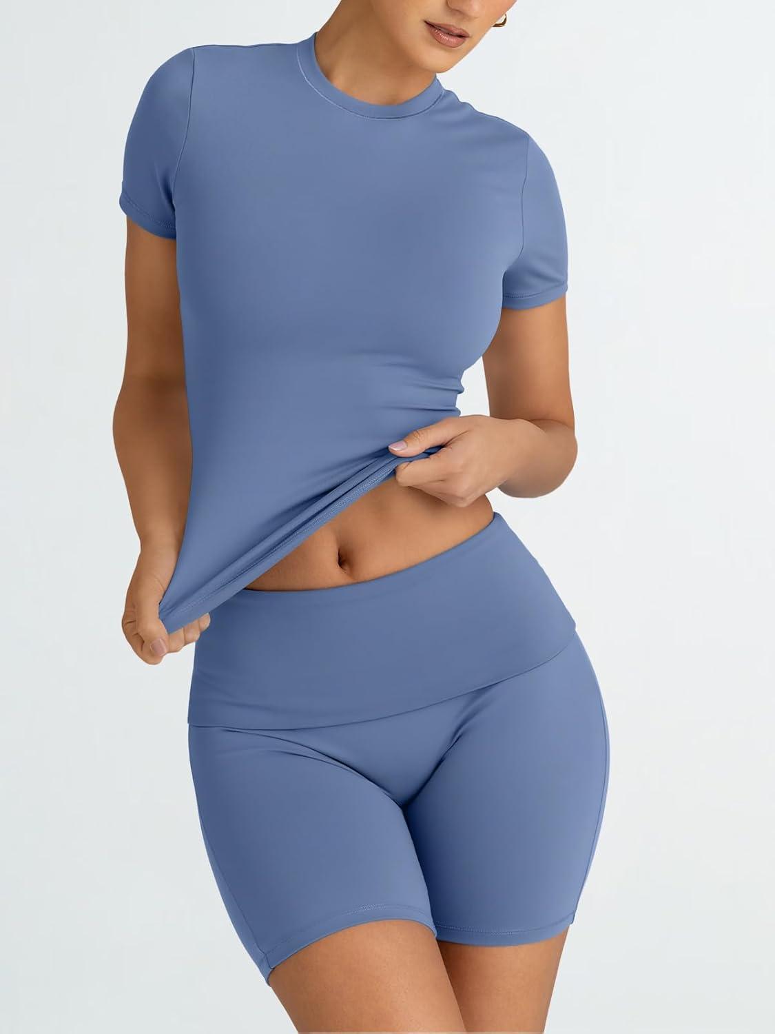 Trendy Queen Womens 2 Piece Workout Sets Short Matching Lounge Sets Summer Clothes Going Out Gym Outfits(Blue)