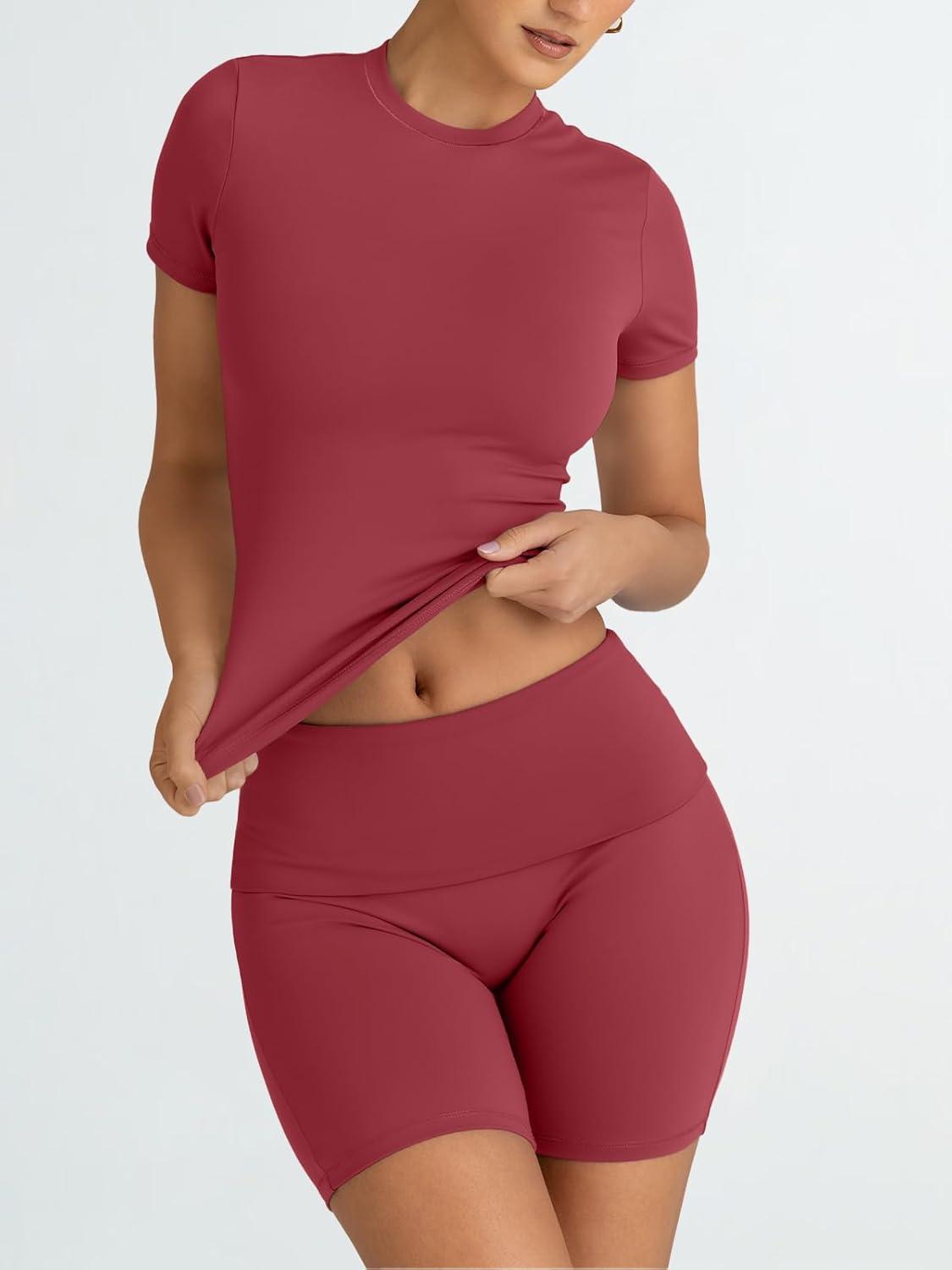 Trendy Queen Womens 2 Piece Workout Sets Short Matching Lounge Sets Summer Clothes Going Out Gym Outfits(Red)
