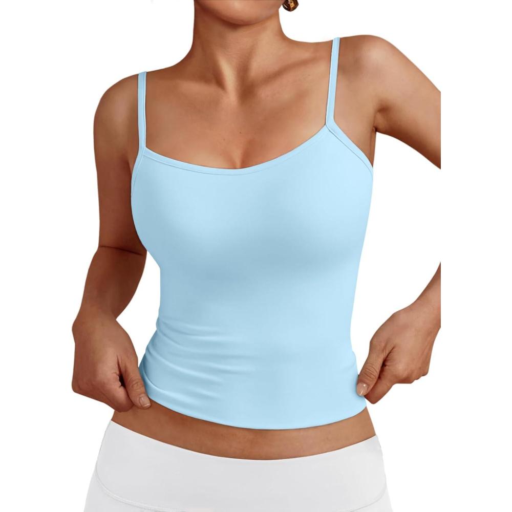 Trendy Queen Womens Adjustable Camisole Sleeveless Square Neck Spaghetti Strap Tank Tops Basic Shirt(Baby Blue)