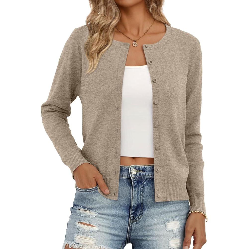 Trendy Queen Womens Cardigan Sweaters Lightweight Crew Neck Outfits Fall Fashion 2025 Clothing(Brown)