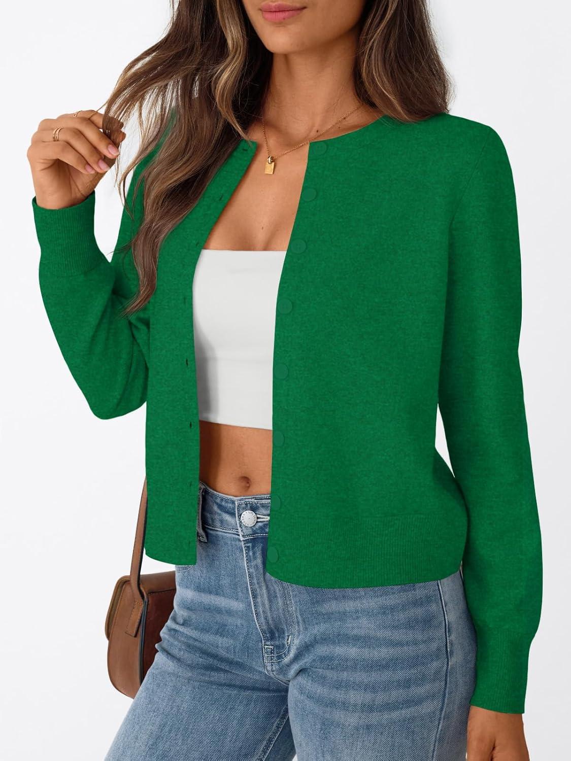 Trendy Queen Womens Cardigan Sweaters Lightweight Crew Neck Outfits Fall Fashion 2025 Clothing(Green)