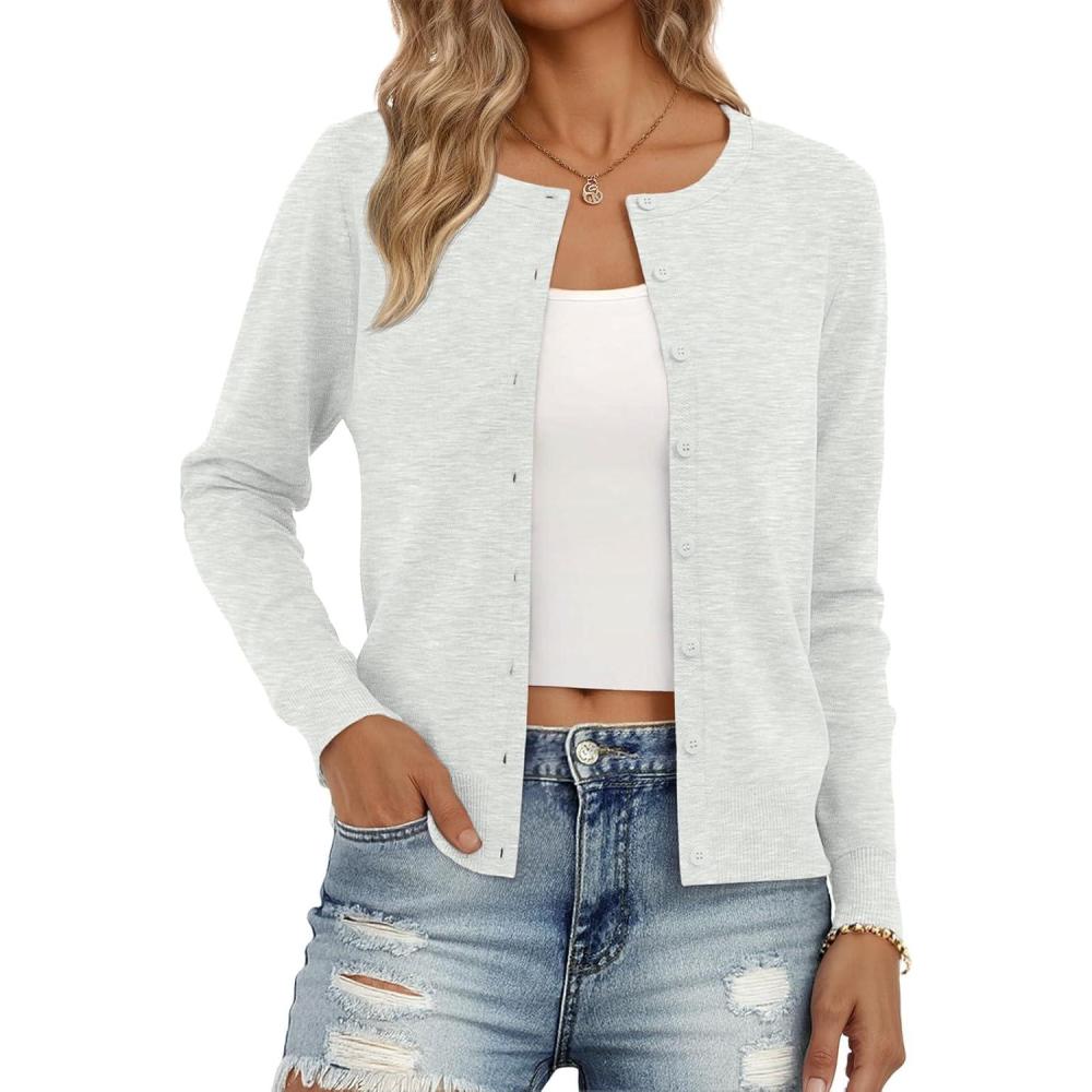 Trendy Queen Womens Cardigan Sweaters Lightweight Crew Neck Outfits Fall Fashion 2025 Clothing(Grey)