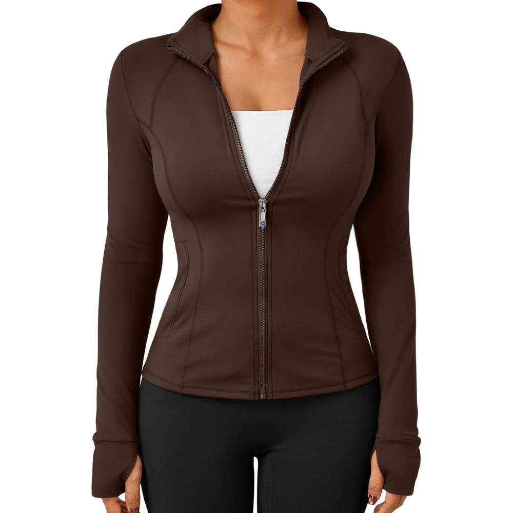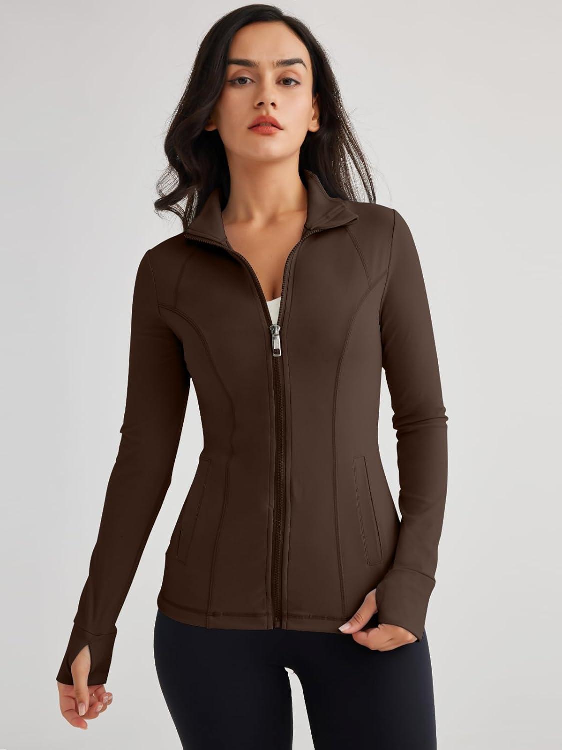 Trendy Queen Womens Lightweight Zip Up Jackets 2025 Athletic Hoodies Fall Gym Shirts Running Workout Clothes with Pocket(Brown)