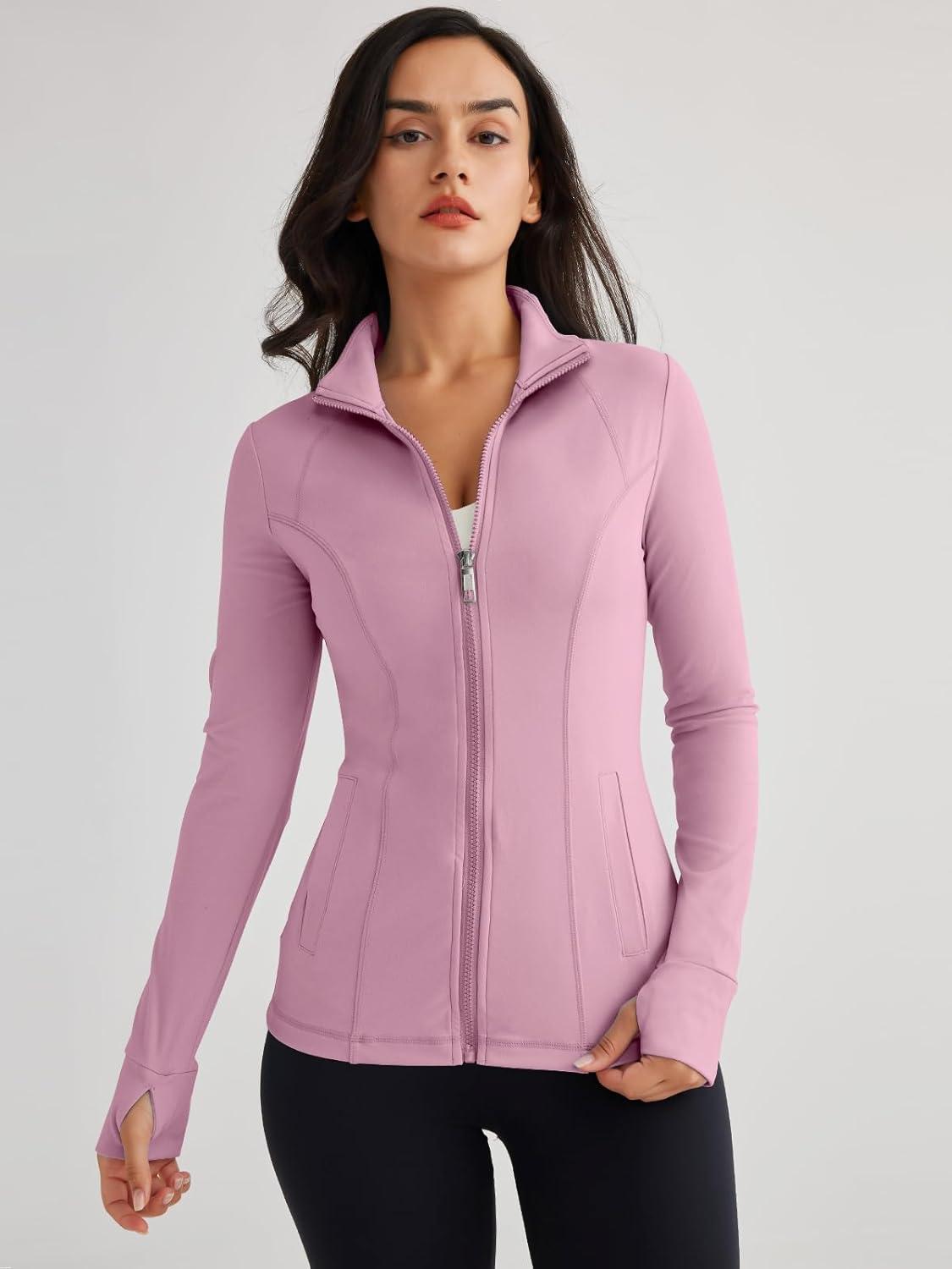 Trendy Queen Womens Lightweight Zip Up Jackets 2025 Athletic Hoodies Fall Gym Shirts Running Workout Clothes with Pocket(Lightpink)