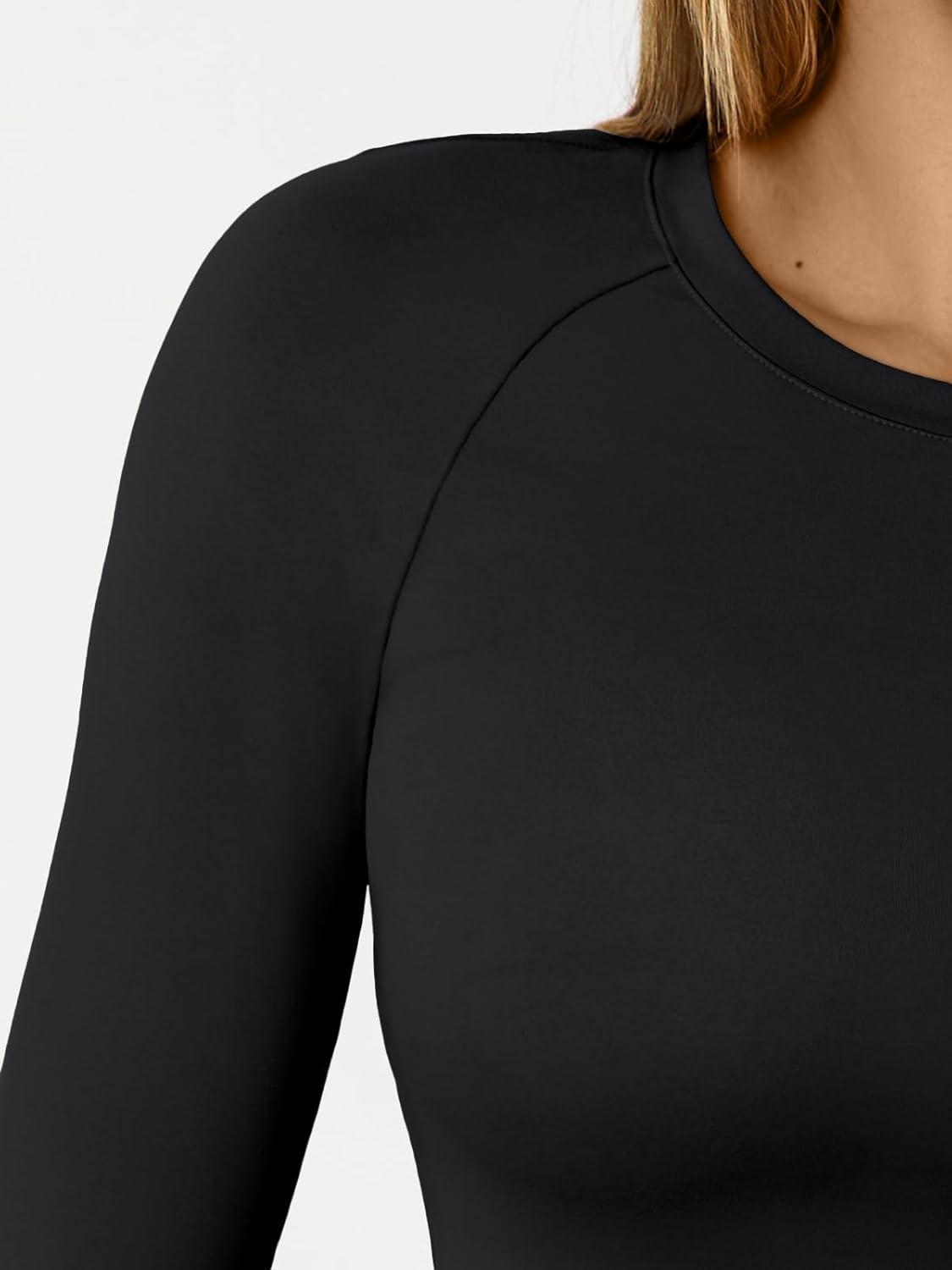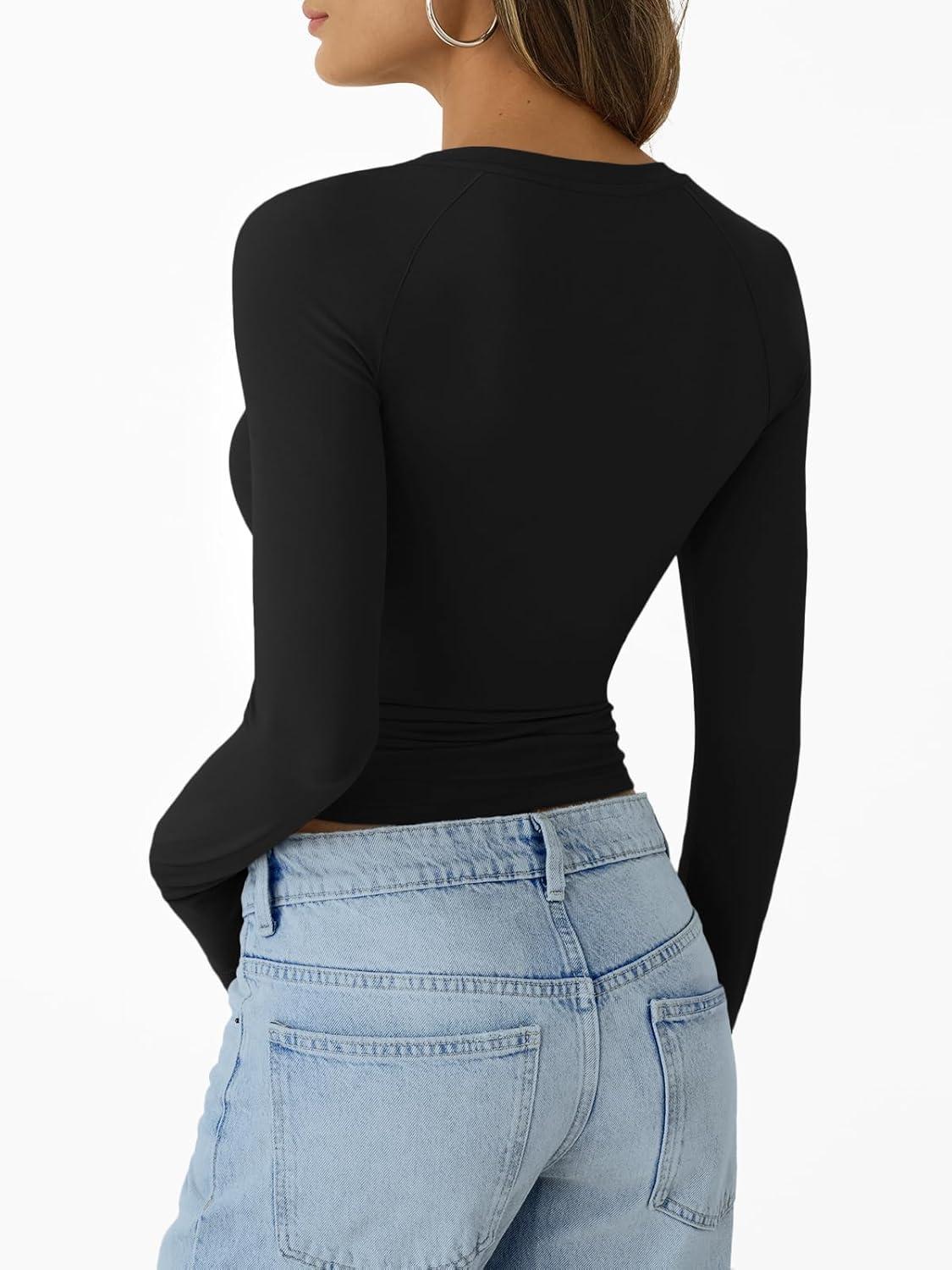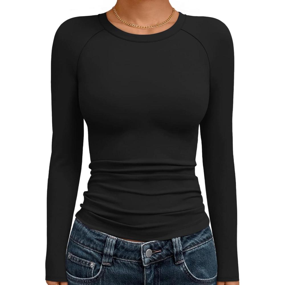 Trendy Queen Womens Long Sleeve Shirts Crop Tops Basic Workout Tees Going Out for Teen Girls(Black)