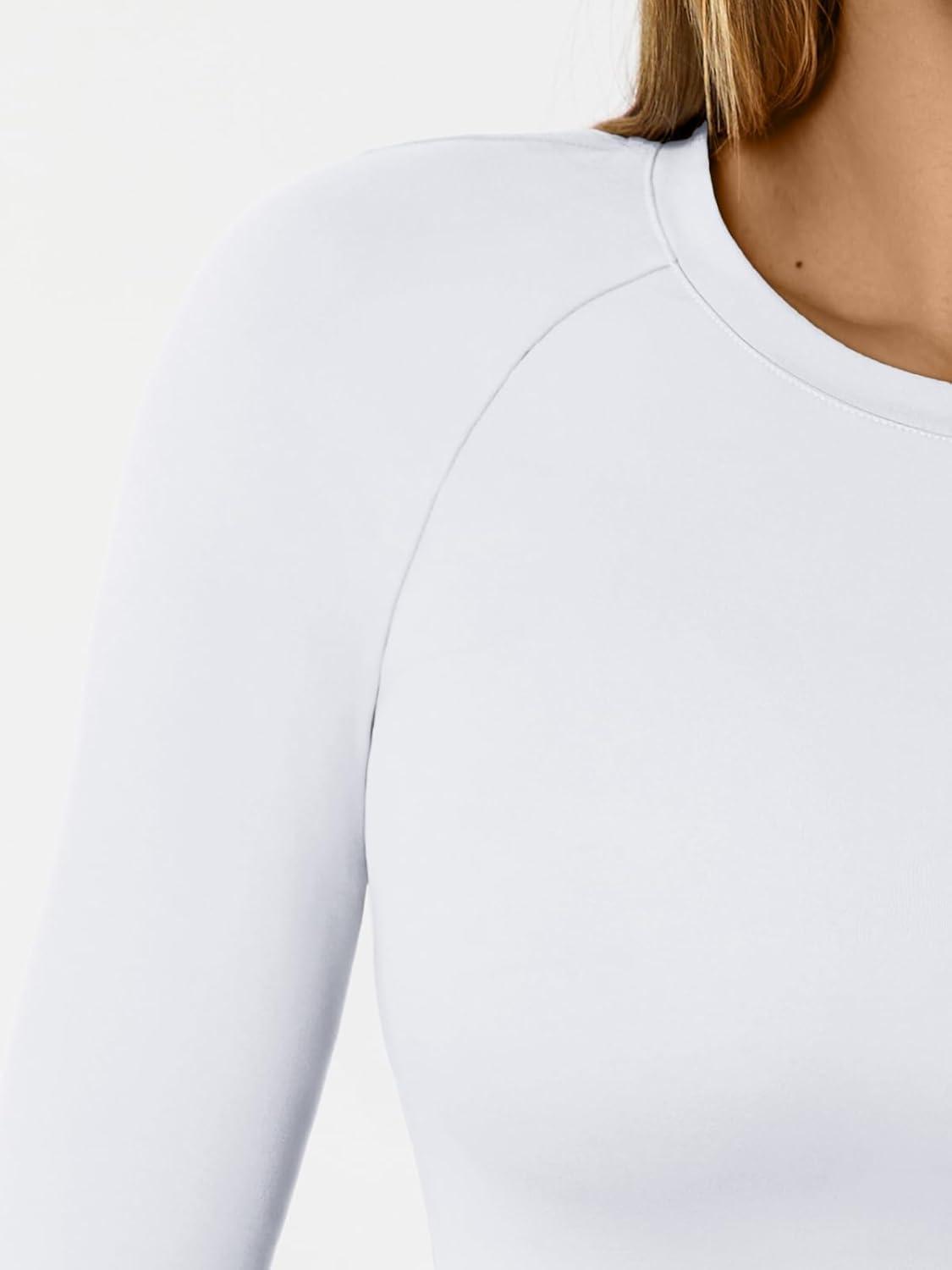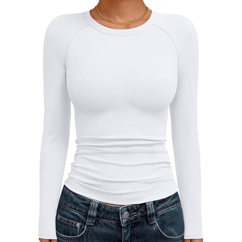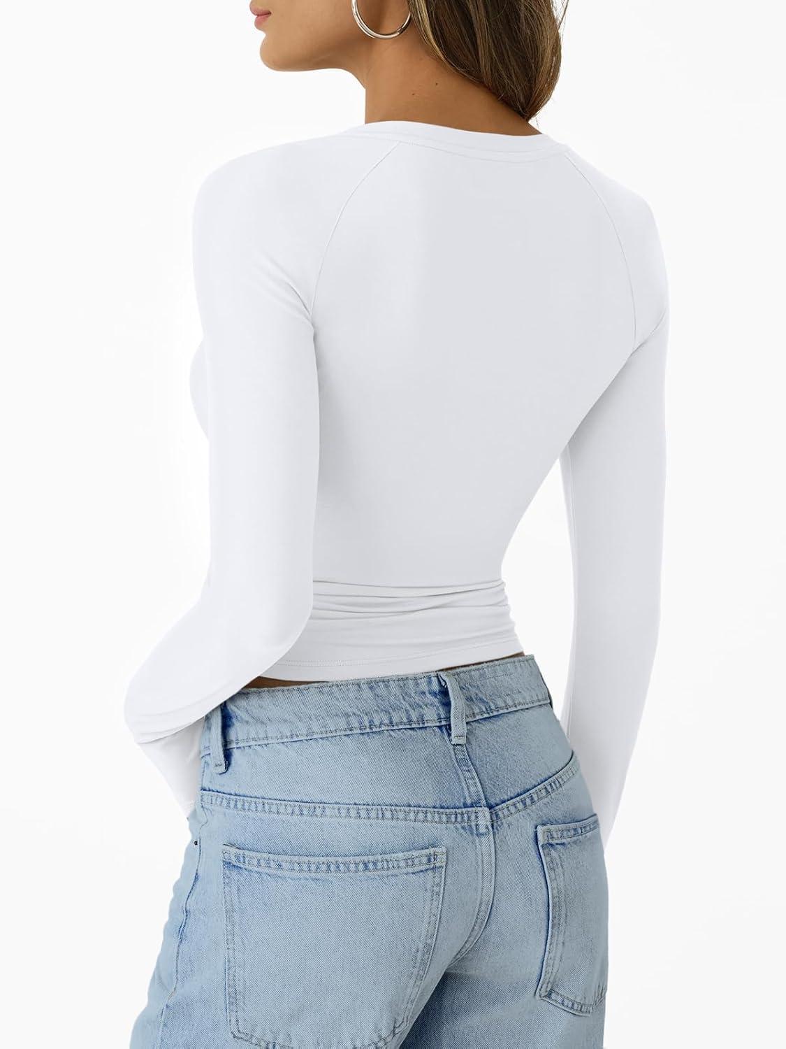 Trendy Queen Womens Long Sleeve Shirts Crop Tops Basic Workout Tees Going Out for Teen Girls(White)