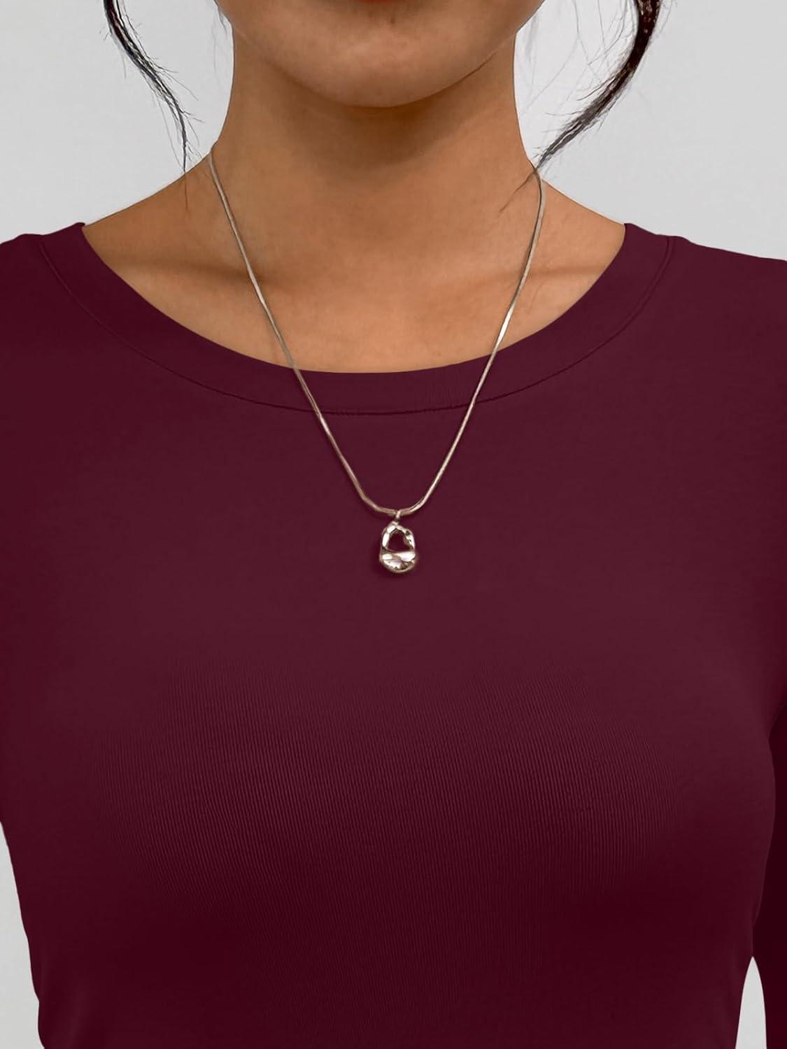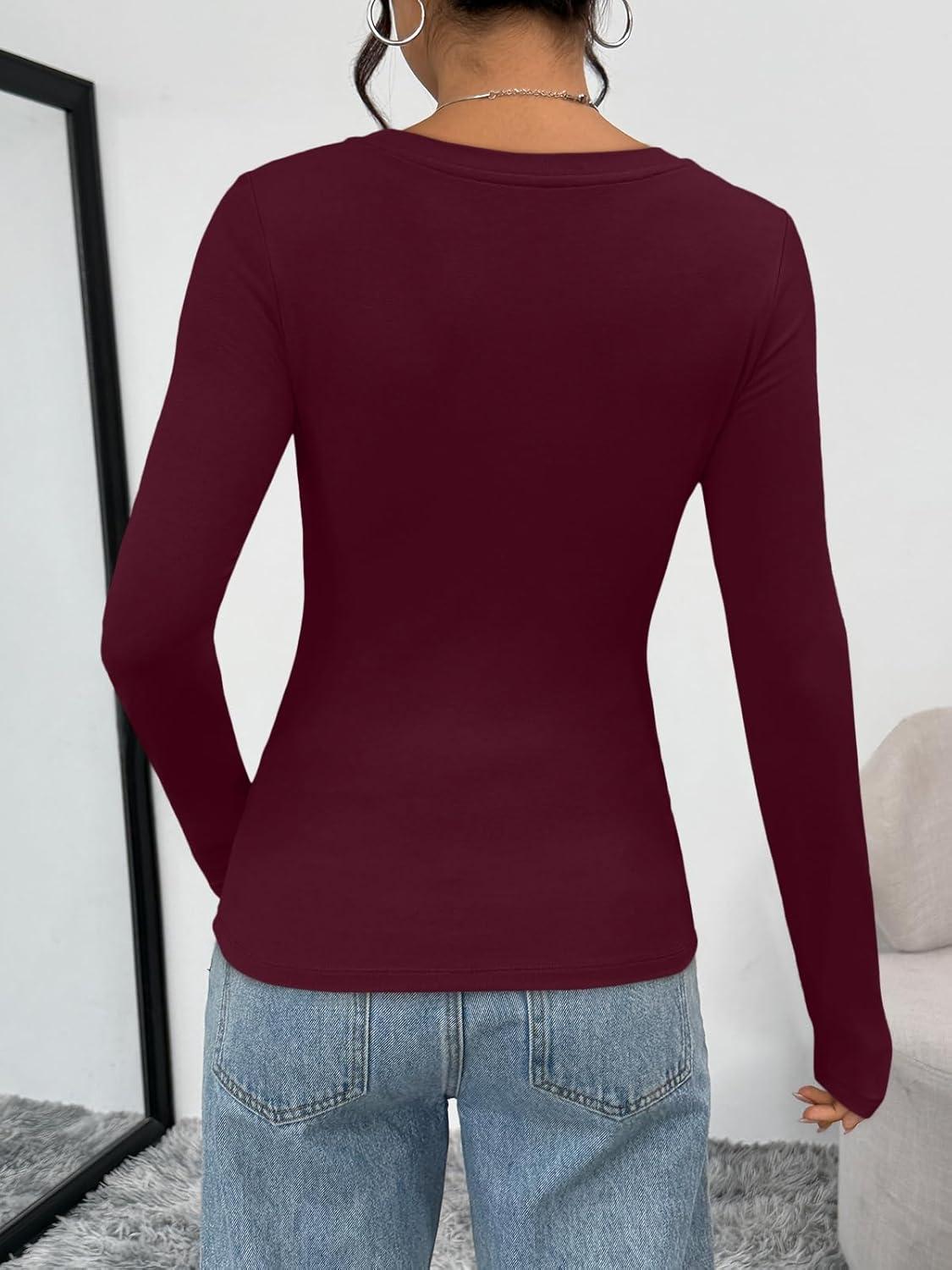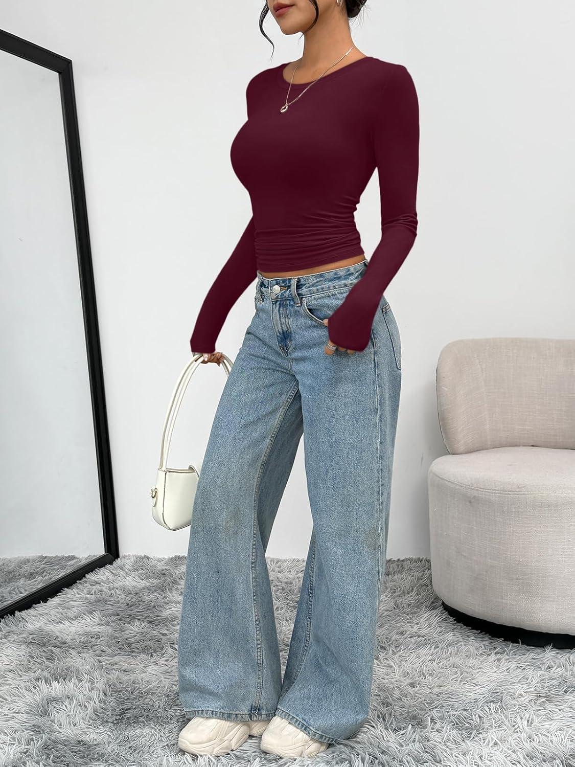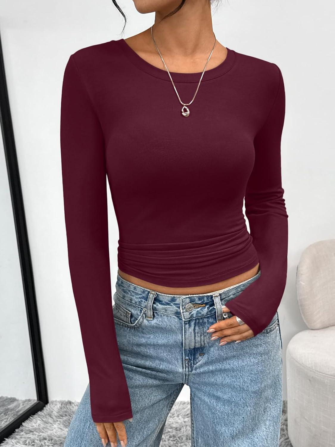 Trendy Queen Womens Long Sleeve T-Shirts Basic Crop Tops 2025 Fall Fashion Outfits Going Out Winter Clothes(Wine)