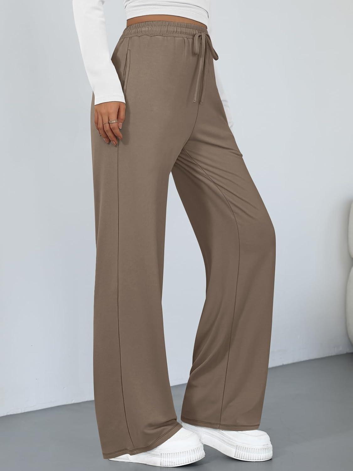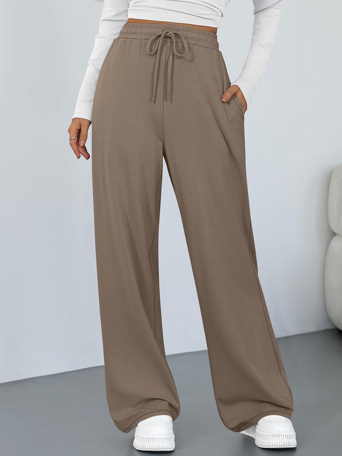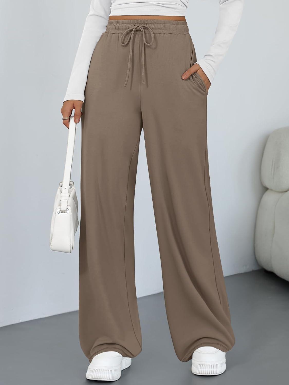 Trendy Queen Womens Lounge Pants Wide Leg Sweatpants Comfy Barrel Pajamas Pants Baggy Flowy 2025 Fashion Outfits with Pockets(Coffee)