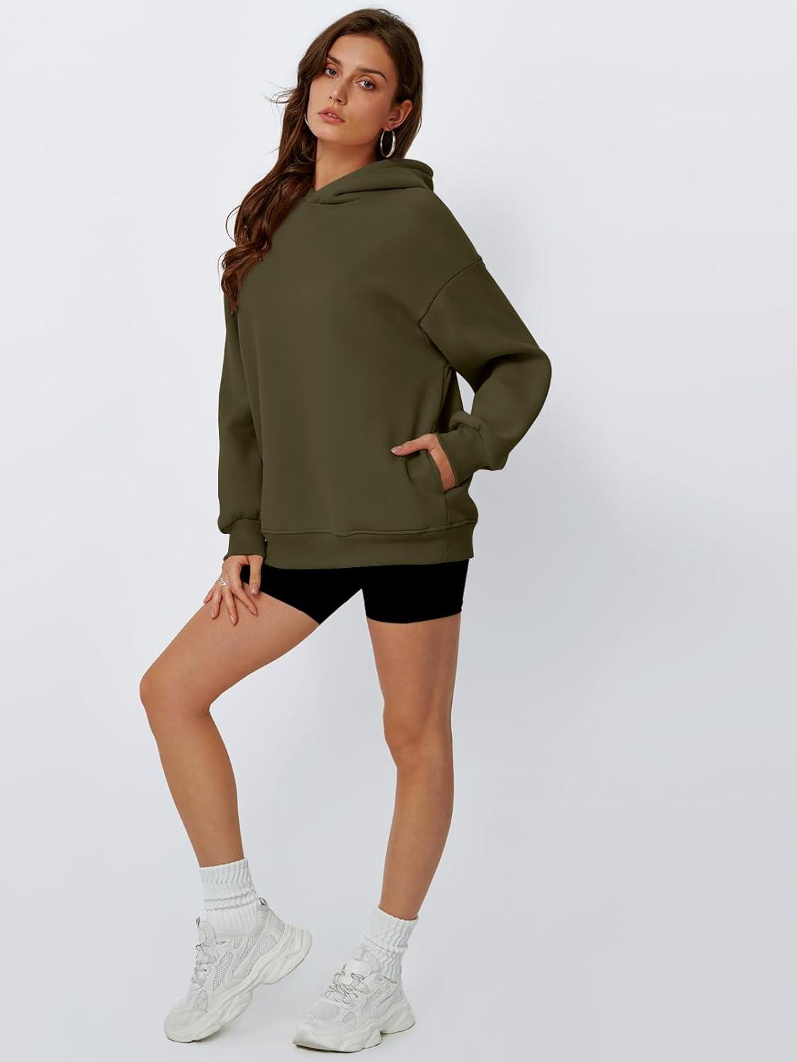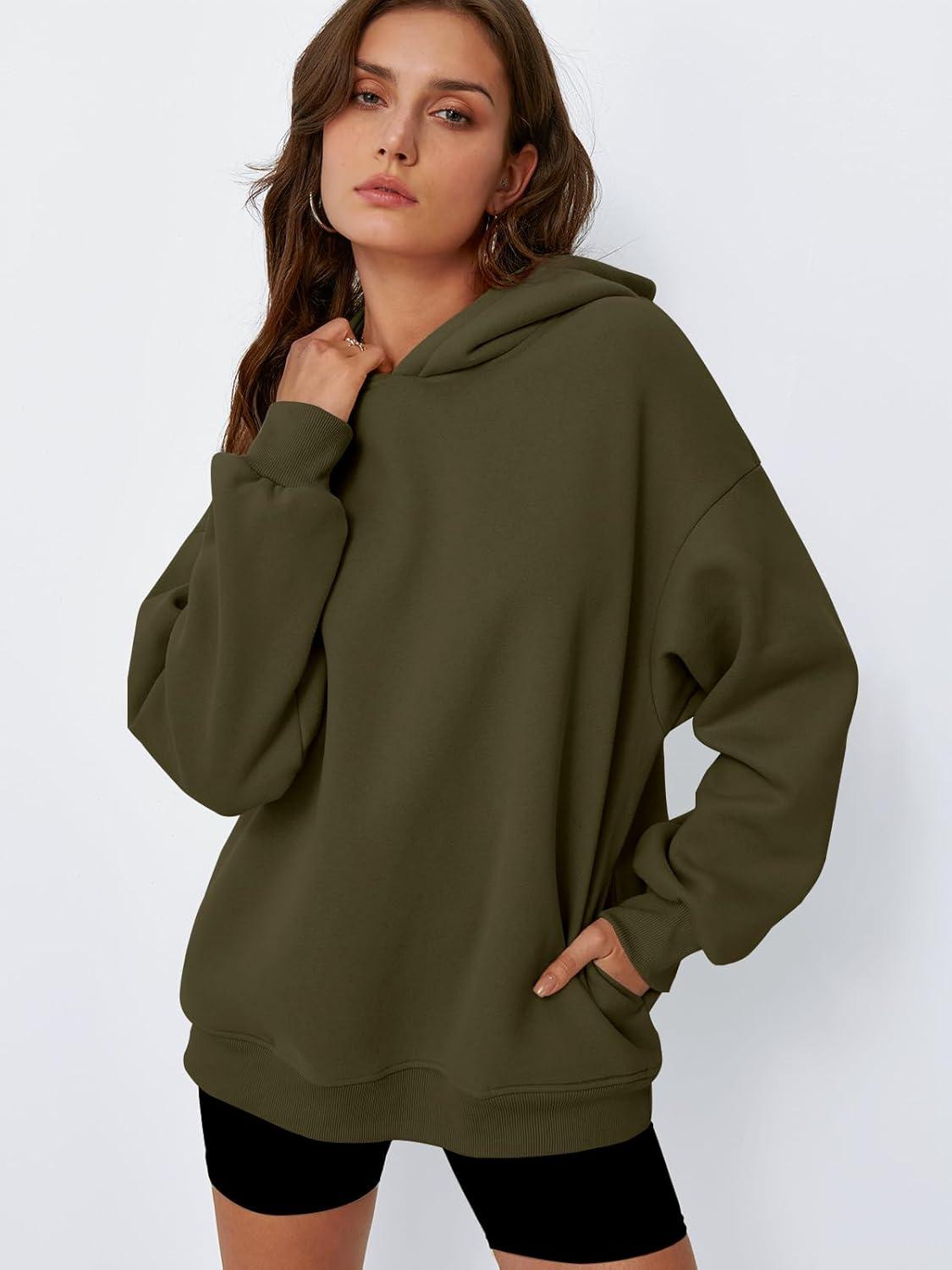 Trendy Queen Womens Oversized Hoodies Comfy Sweatshirts Fall Fashion 2025 Outfits Casual Tops Fleece Clothes with Pockets(Armygreen)