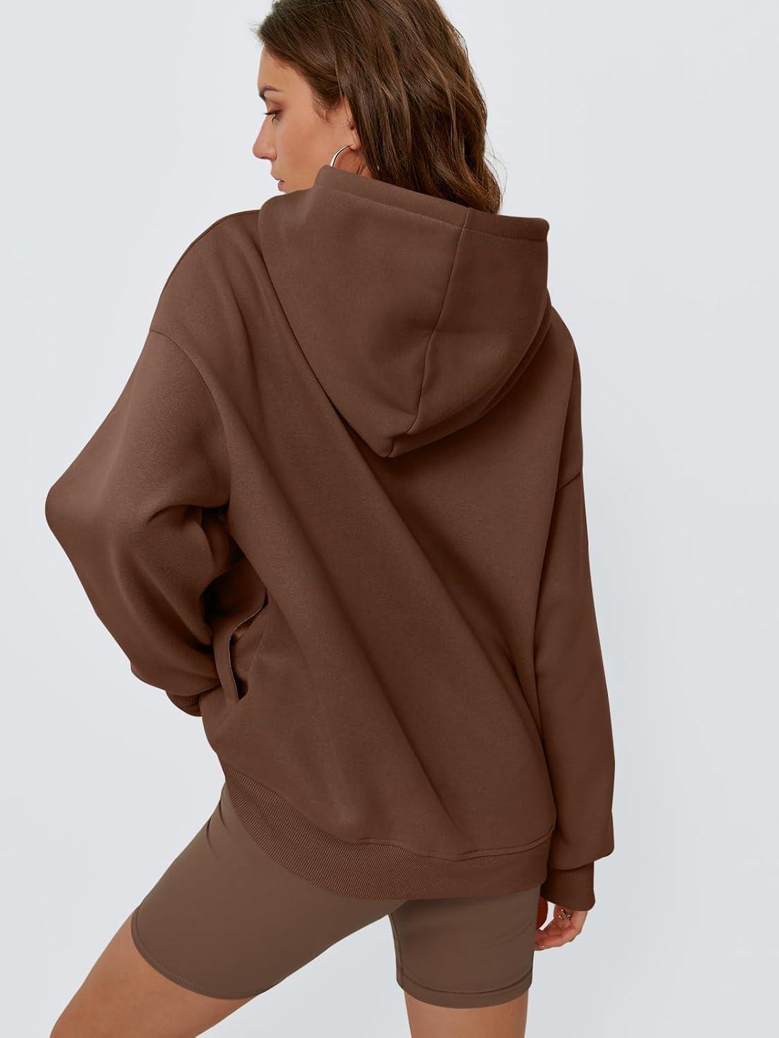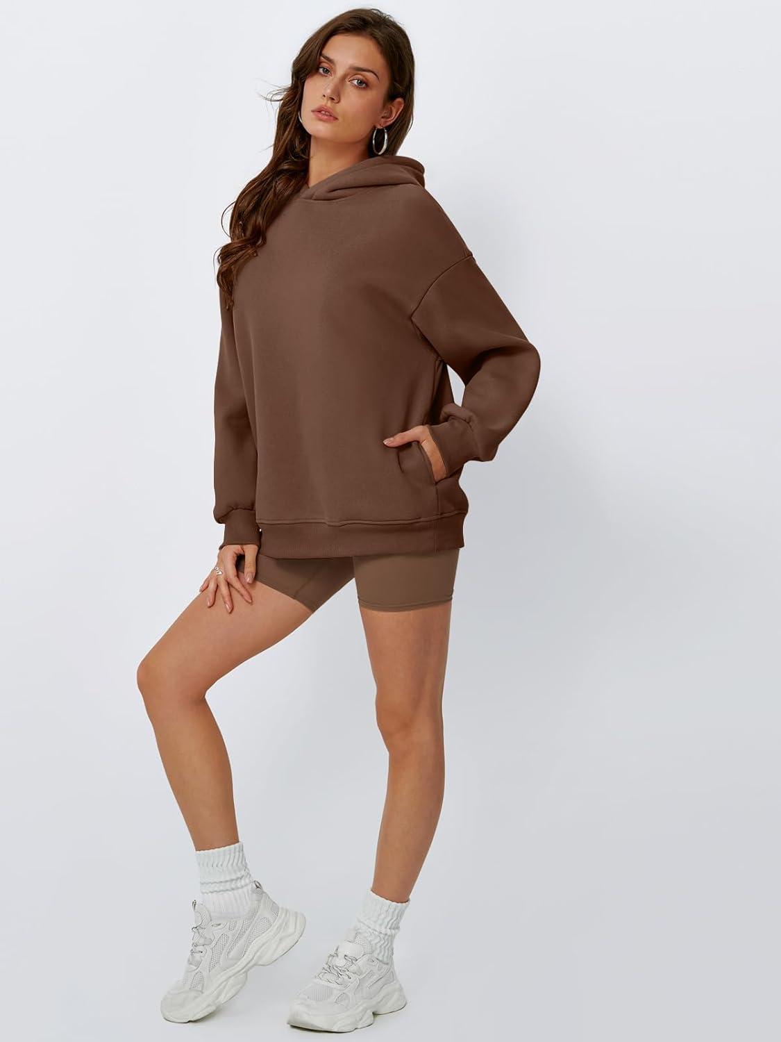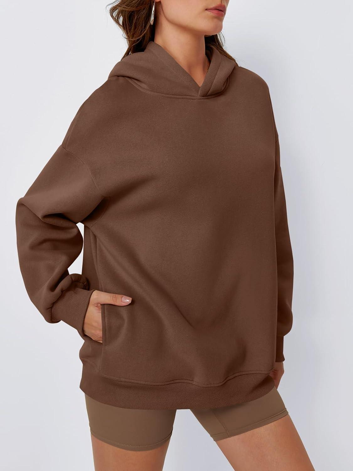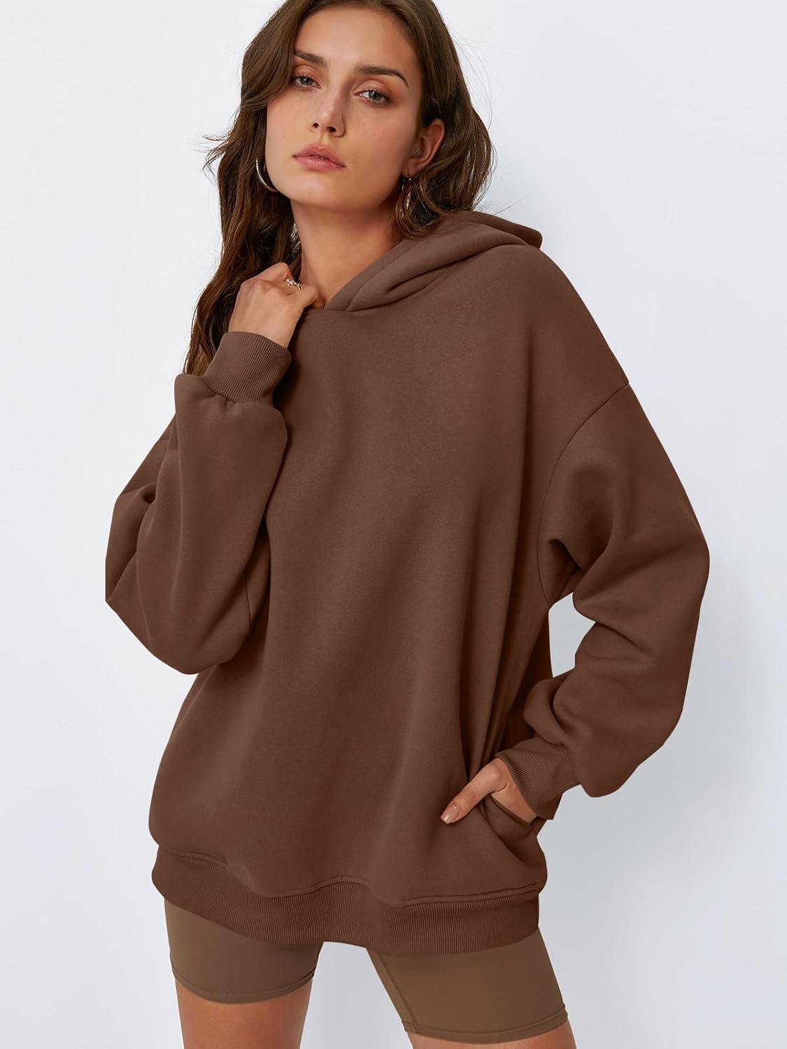 Trendy Queen Womens Oversized Hoodies Comfy Sweatshirts Fall Fashion 2025 Outfits Casual Tops Fleece Clothes with Pockets(Brown)