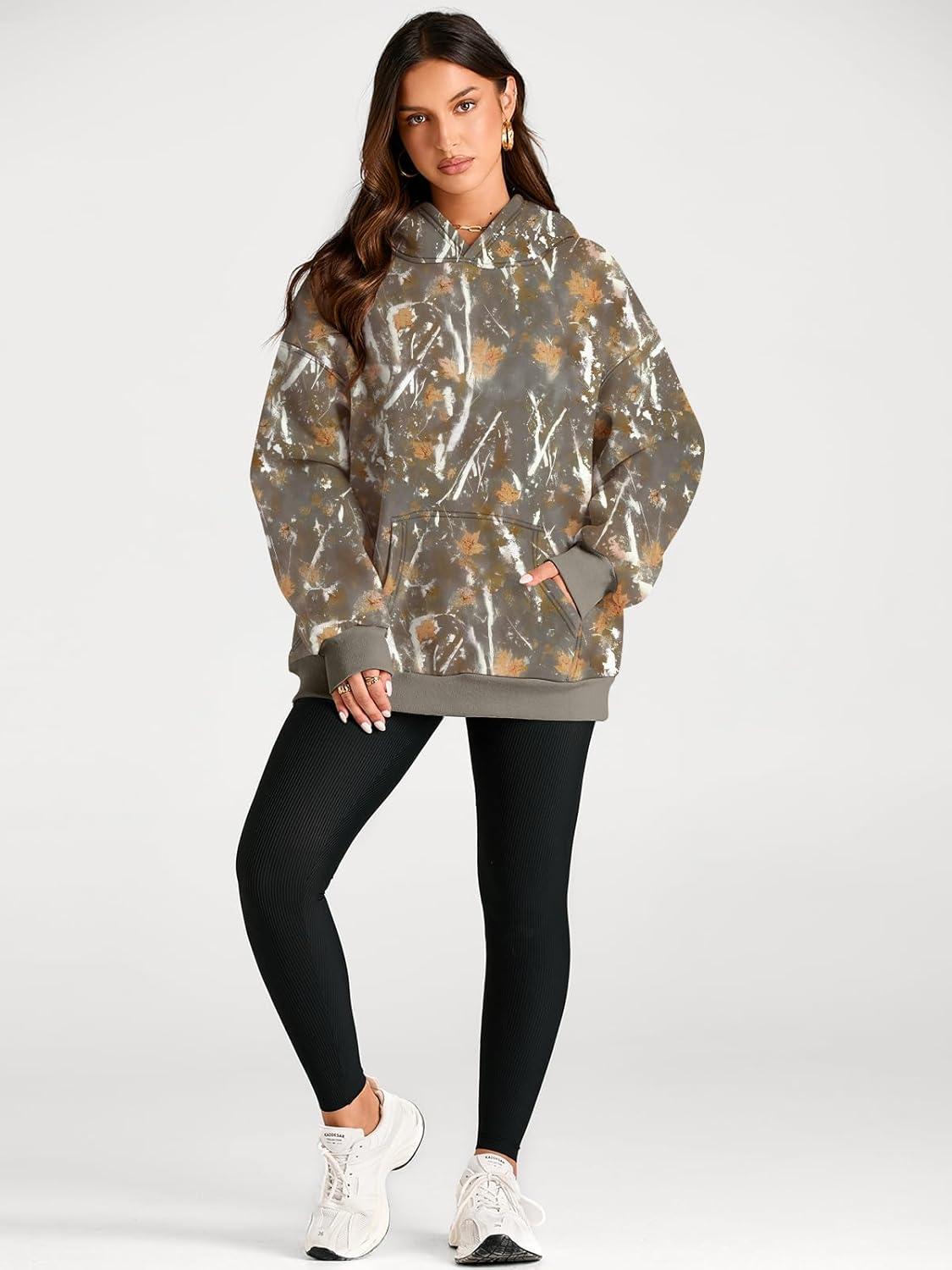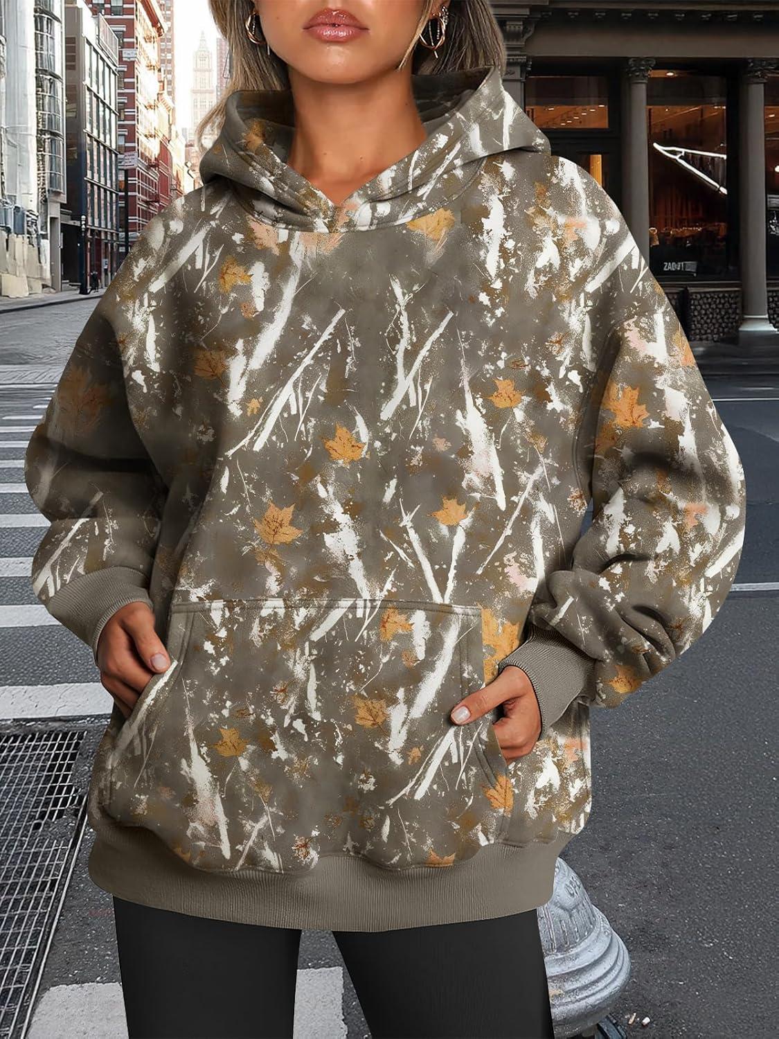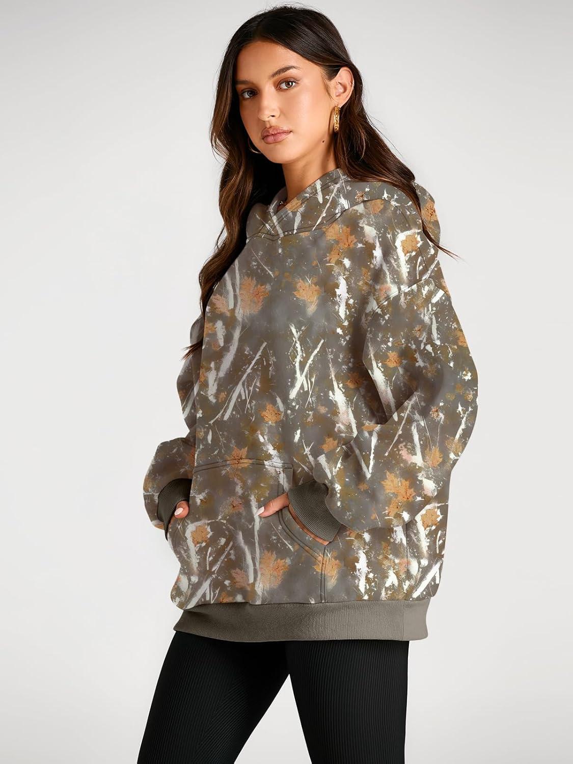 Trendy Queen Womens Oversized Hoodies Fleece Sweatshirts Fall Fashion Pullover Sweaters Winter Clothes(Camo Maple)