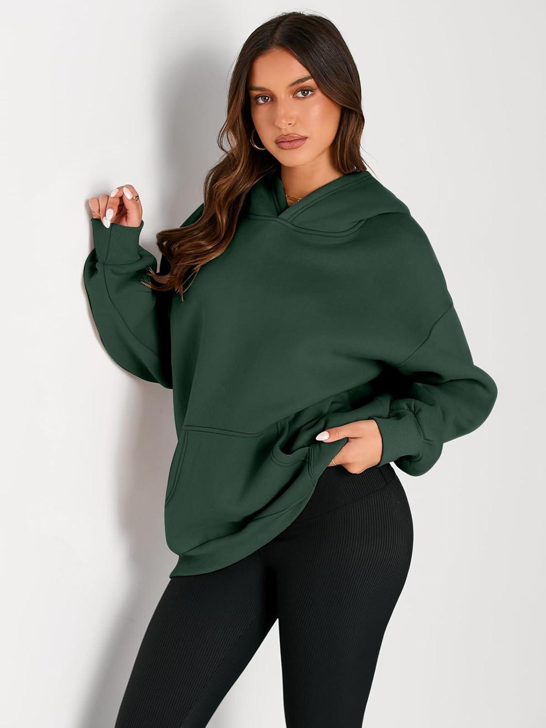 Trendy Queen Womens Oversized Hoodies Fleece Sweatshirts Fall Fashion Pullover Sweaters Winter Clothes(Forest Green)
