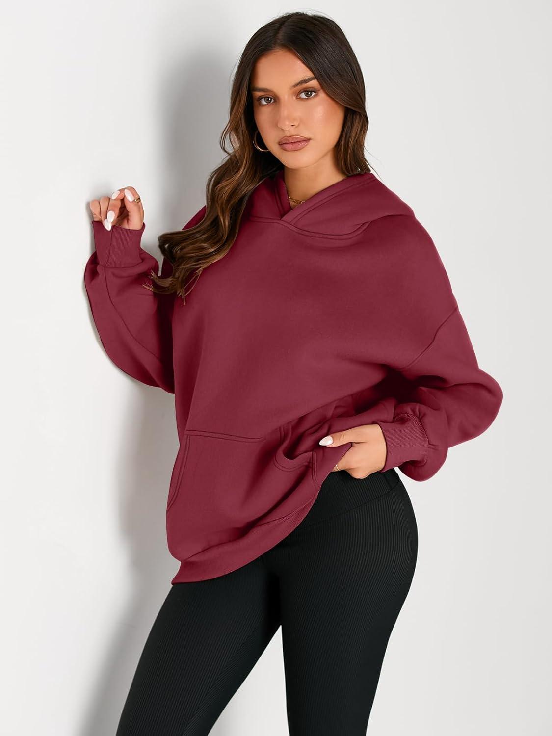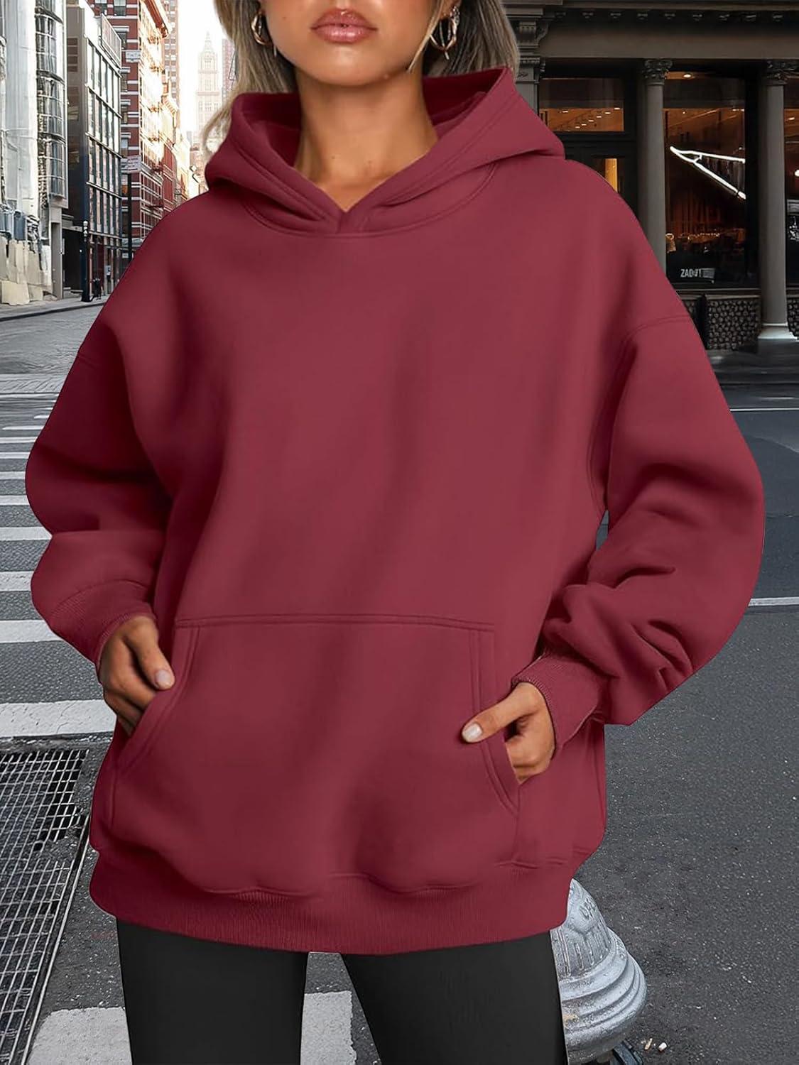 Trendy Queen Womens Oversized Hoodies Fleece Sweatshirts Fall Fashion Pullover Sweaters Winter Clothes(Red)