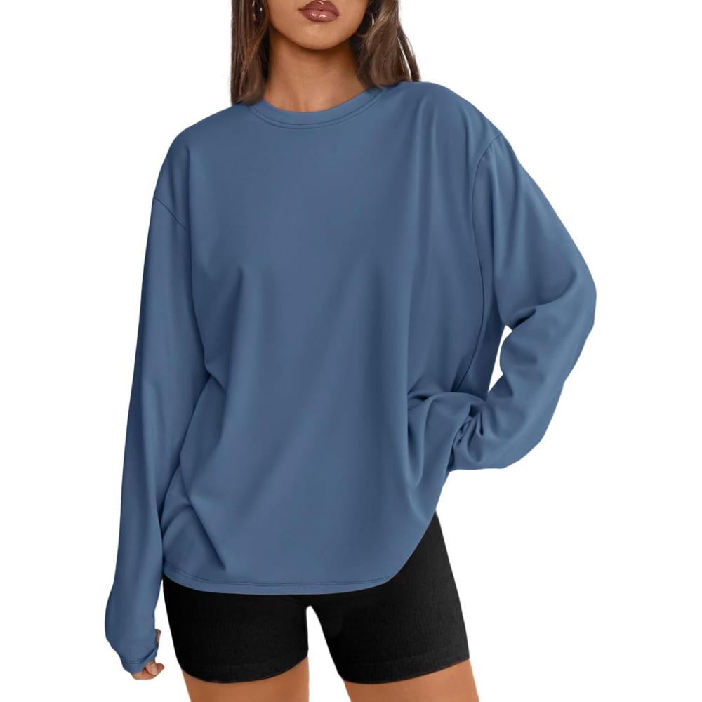 Trendy Queen Womens Oversized Long Sleeve T Shirts 2025 Basic Crewneck Tee Fall Tops Casual Workout Y2K Clothes(Hazeblue)