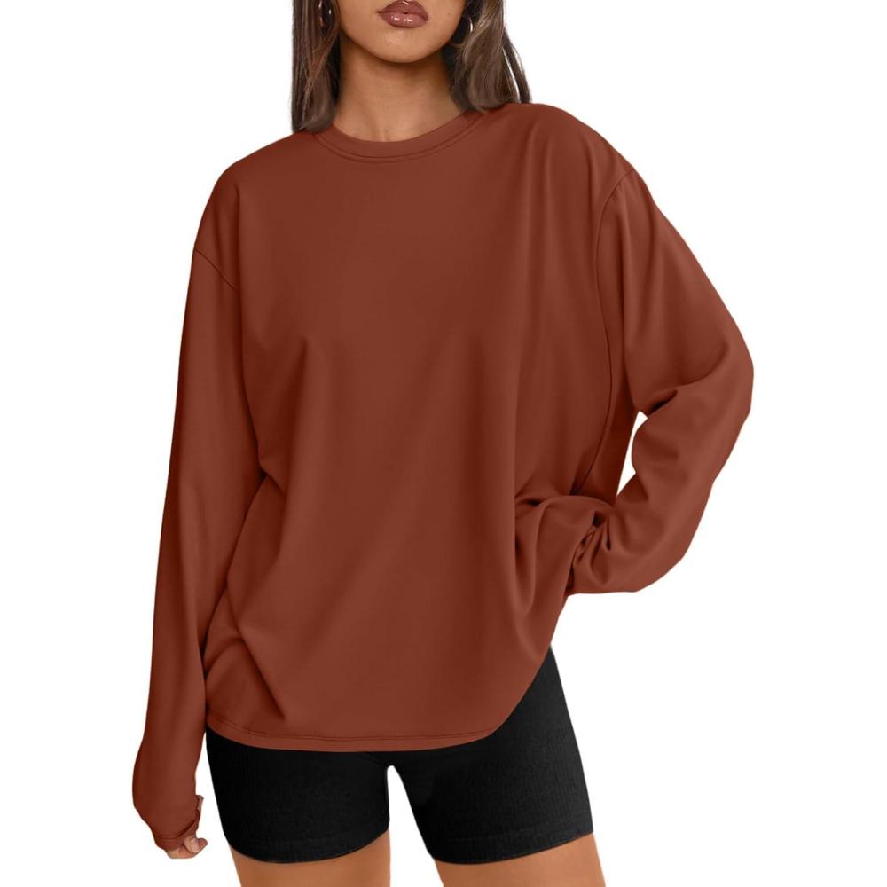 Trendy Queen Womens Oversized Long Sleeve T Shirts 2025 Basic Crewneck Tee Fall Tops Casual Workout Y2K Clothes(Maple)