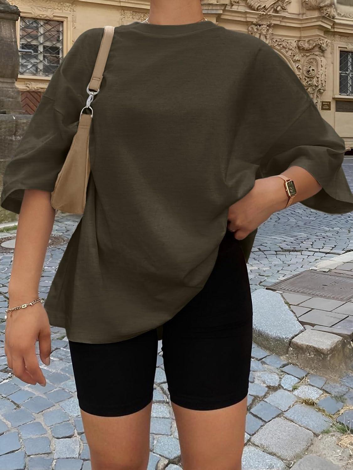 Trendy Queen Womens Oversized Summer T Shirts Plus Size Batwing Cute Casual Tops Short Sleeves Fashion Workout Clothes(Armygreen)