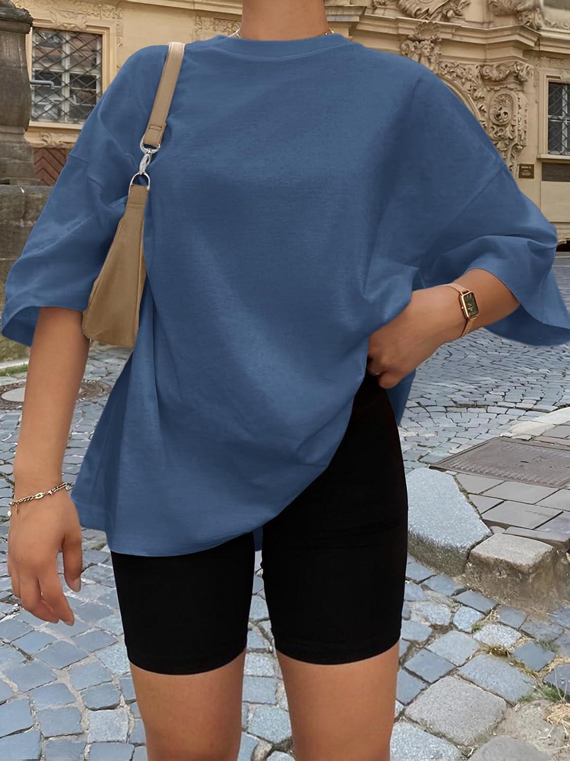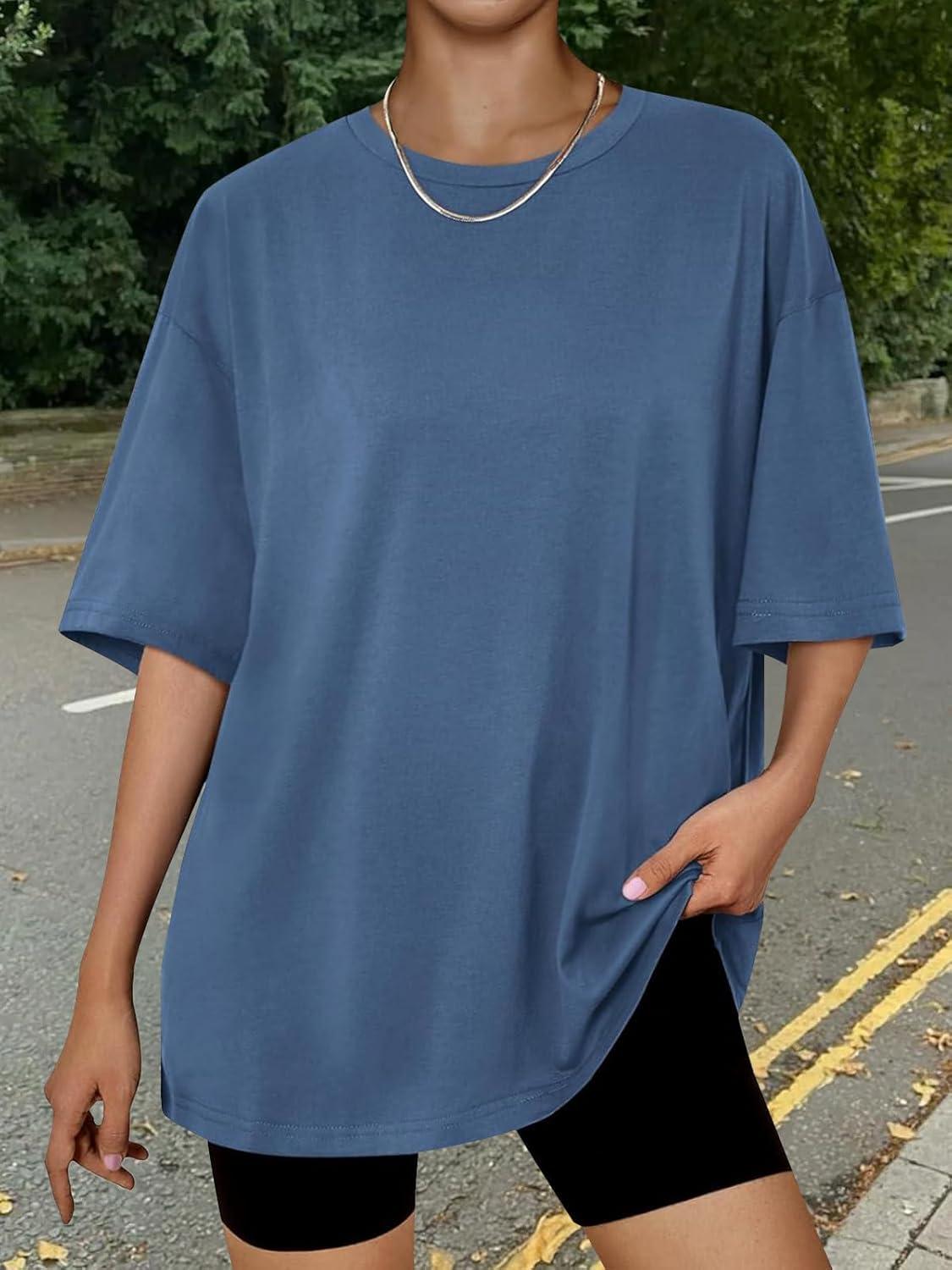 Trendy Queen Womens Oversized Summer T Shirts Plus Size Batwing Cute Casual Tops Short Sleeves Fashion Workout Clothes(Blue)